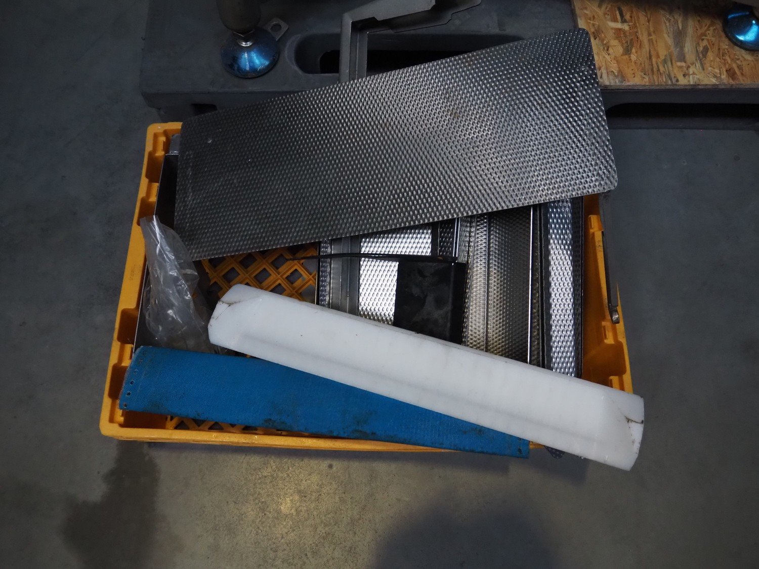 Marel checkweigher, type: 4700 ProcessCheck 4727.205.10, serial number: E016280, year of construction: 2014, 400/480 V, 3 Ph, 50/60 Hz, 16 A, weight: 150 Kg, plastic belt, belt width: 430 mm, total dimensions: 930 mm x 830 mm x 1760 mm. Including crate with parts.