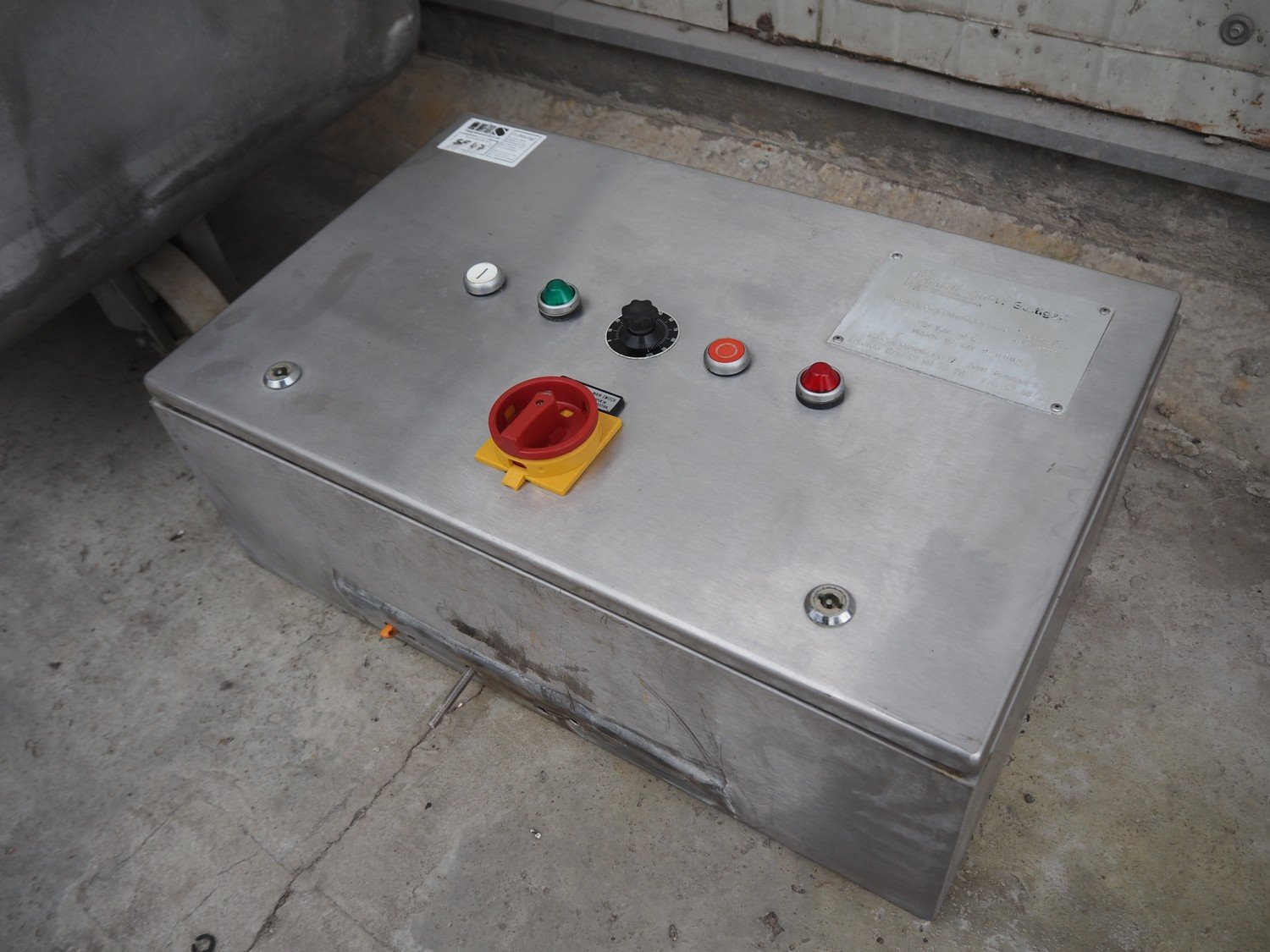 Heinrich GmbH mobile sausage cutter, model: Trenn-Fix, serial number: HM 920502, 220 V, 50 Hz, diameter drum: 750 mm, total dimensions: 2850 mm x 1000 mm x 2220 mm.
