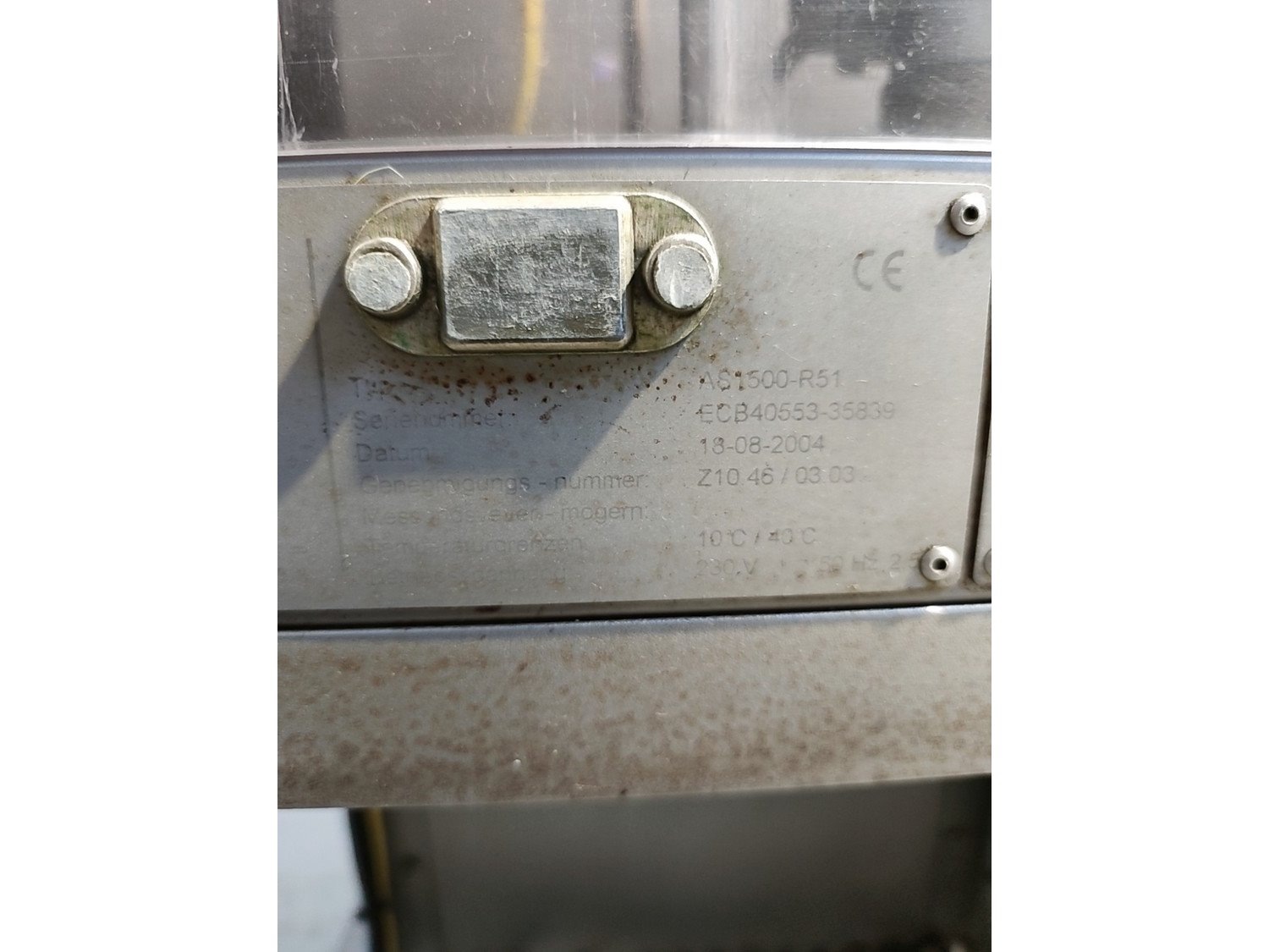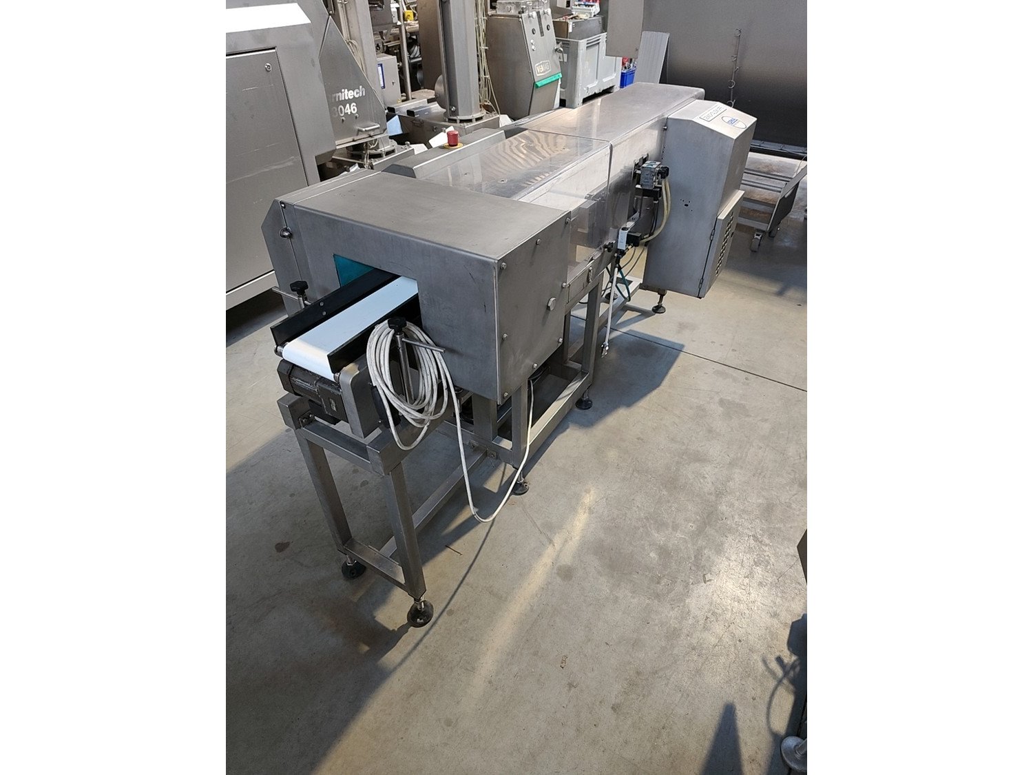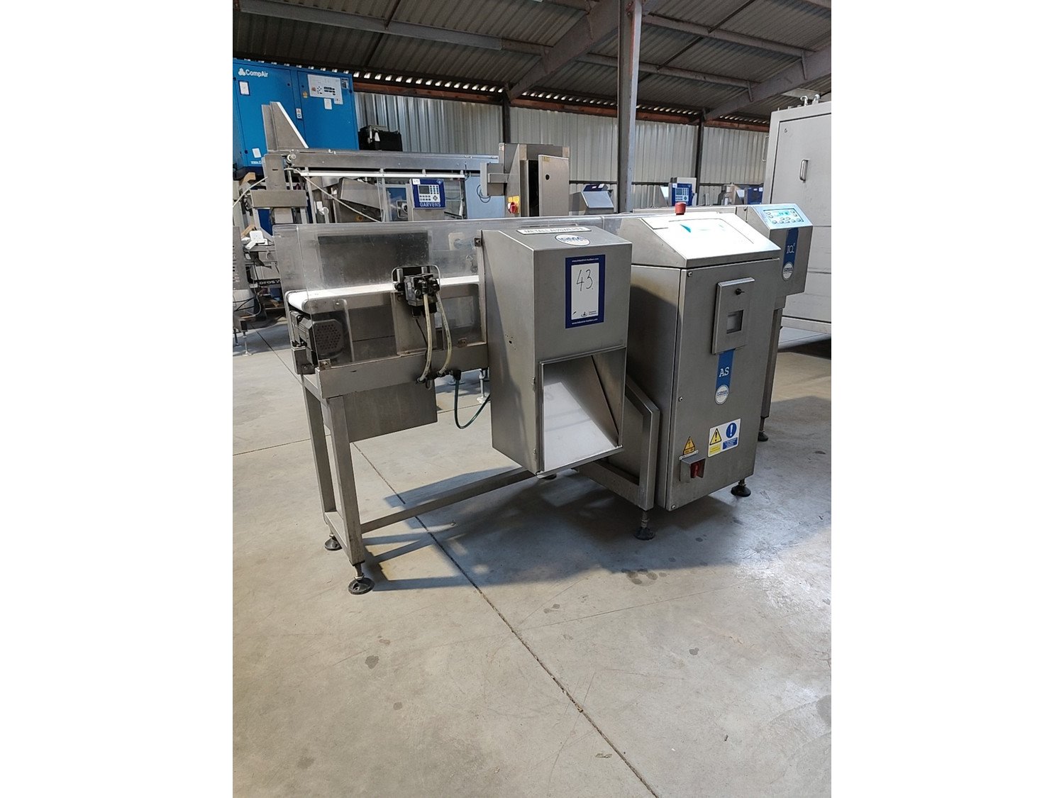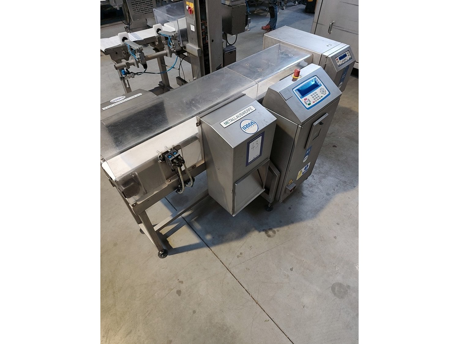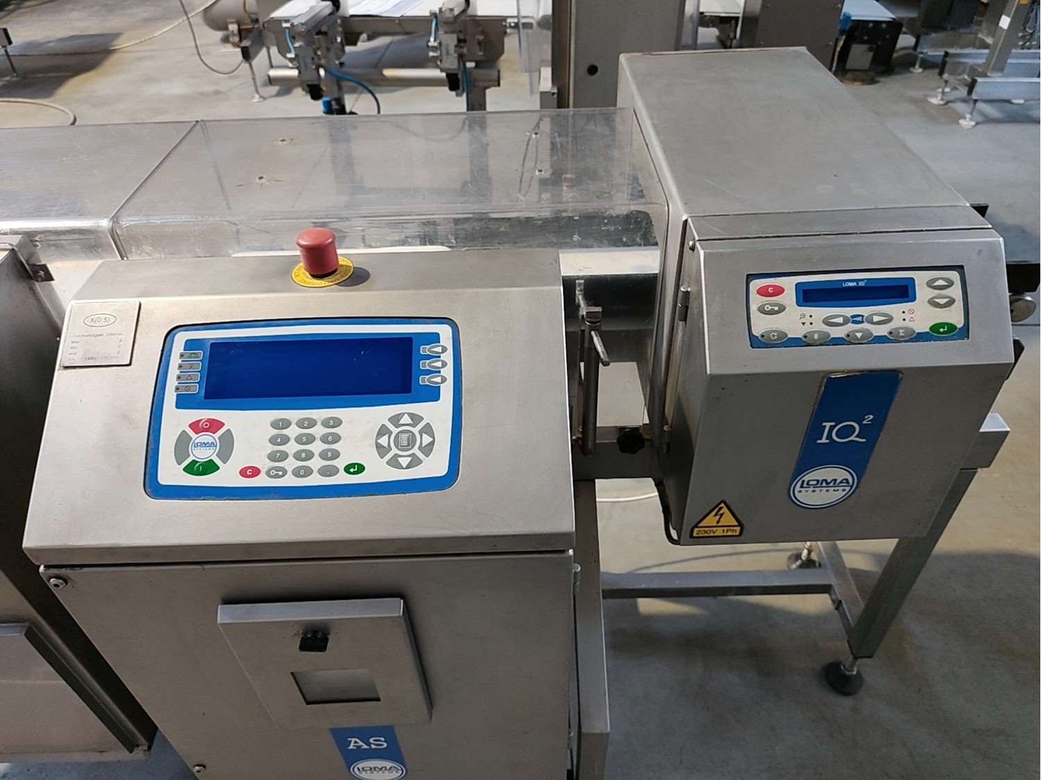 Loma checkweigher with metal detector and rejector, type: AS 1500-R51, serial no: ECB40553-35839, year of construction: 18-08-2004, 230 V, 50 Hz, 2,5 A, dimensions 2200 mm x 900 mm x 1120 mm.