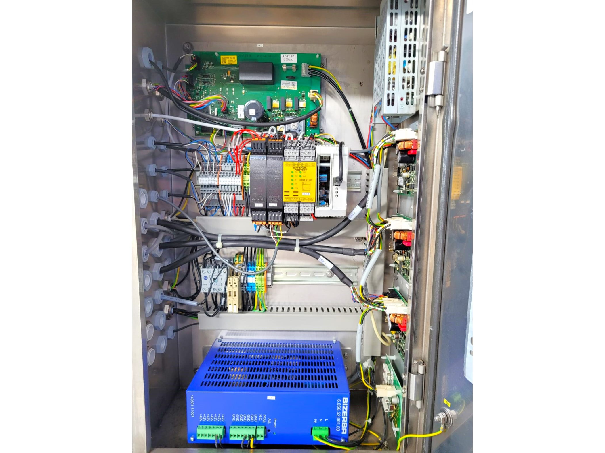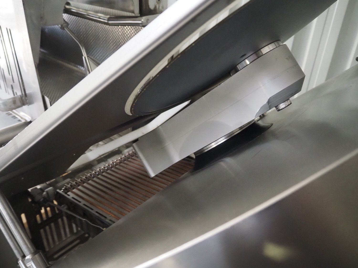 Bizerba GmbH & Co. KG slicer, type: A510, s/s mesh belt, belt width: 300 mm, total dimensions: 2380 mm x 820 mm x 1730 mm. Including box with extra parts.