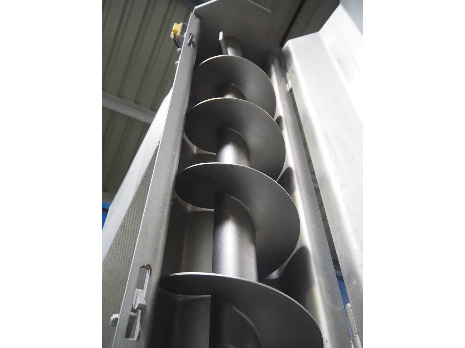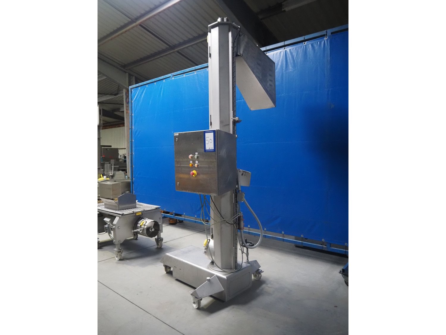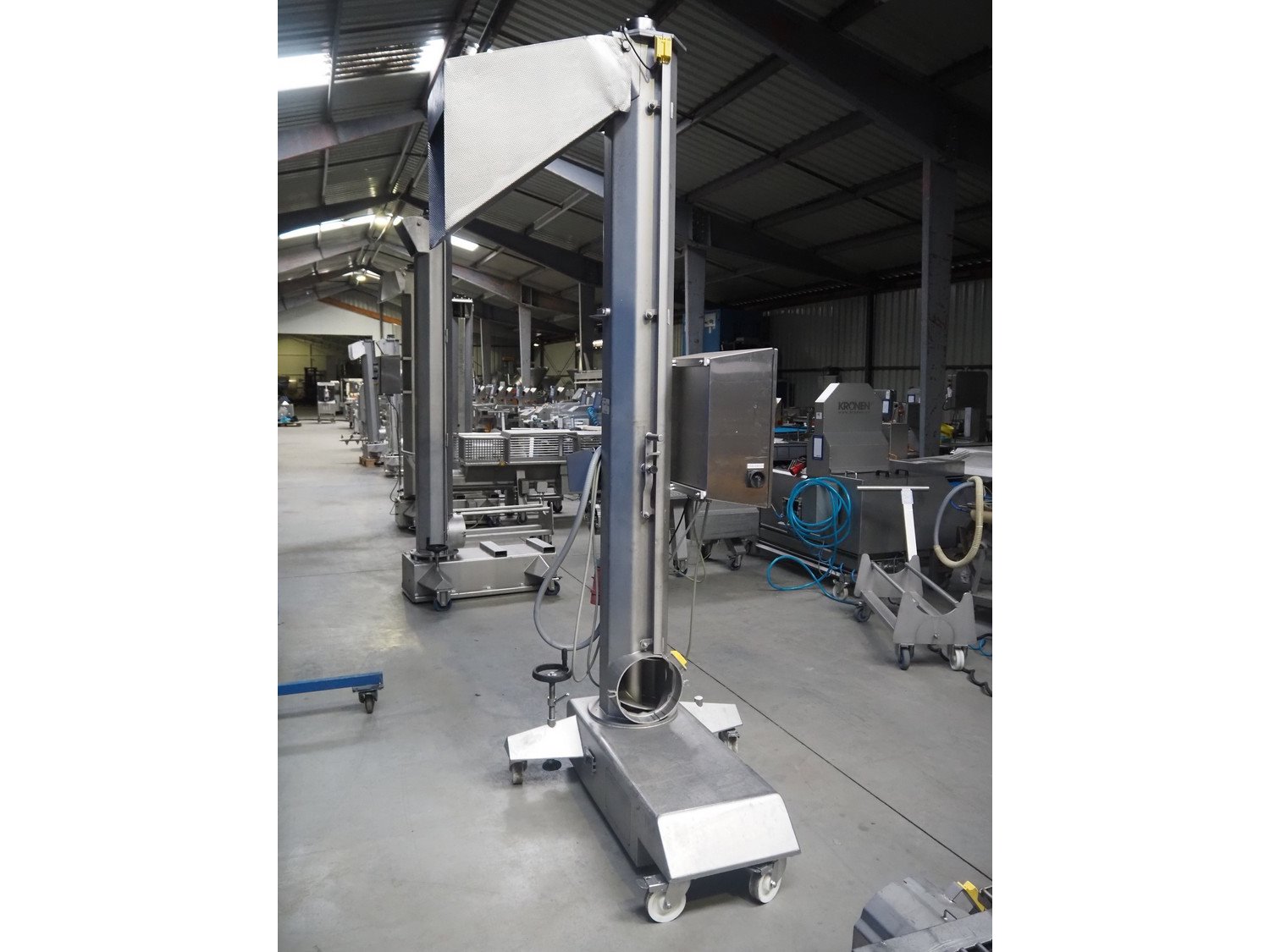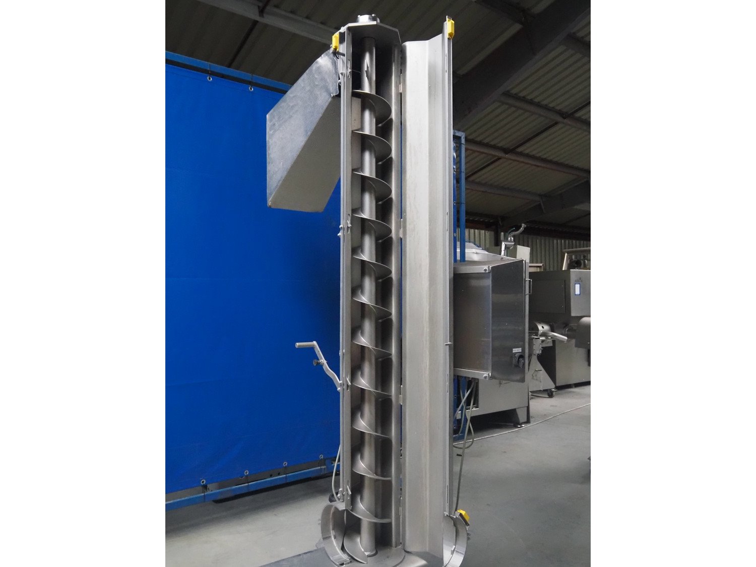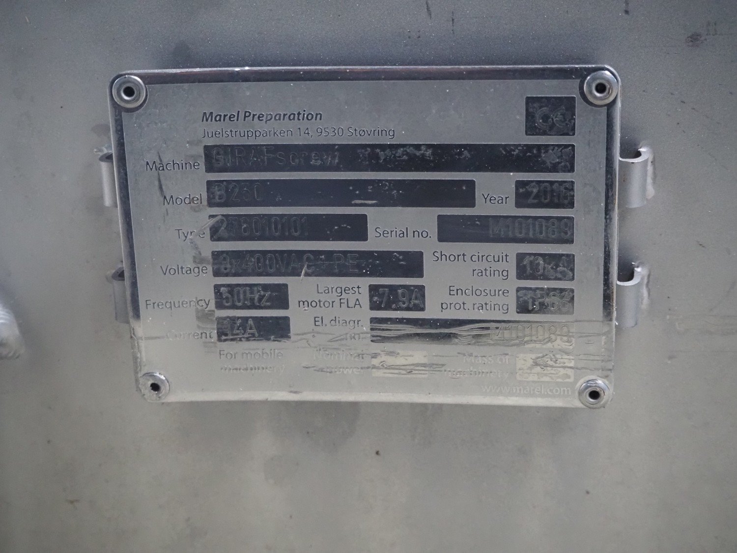 Carnitech s/s ribbon mixer, dimensions: 2300 mm x 1500 mm x 1200 mm, including Marel Carnitech mobile s/s giraf, model: B250, serial number: M10189, year of construction: 2016, 400 V 3 Ph, 50 Hz, 7.9 A, screw dimensions: 240 mm, tier: 180 mm, elevating height: 2500 mm, total dimensions: 2000 mm x 1000 mm x 3000 mm and s/s trolley, dimensions: 1350 mm x 450 mm x 970 mm.