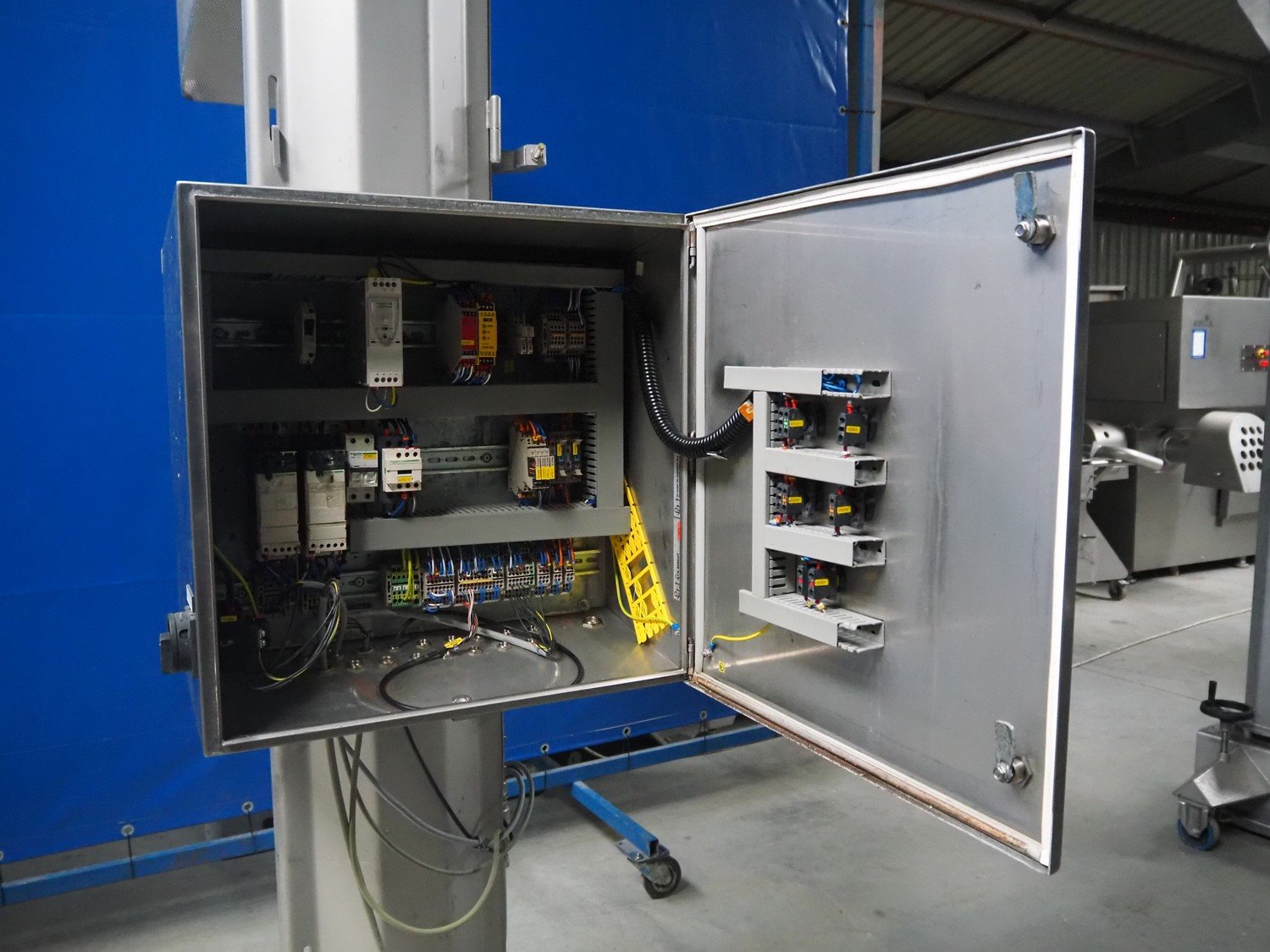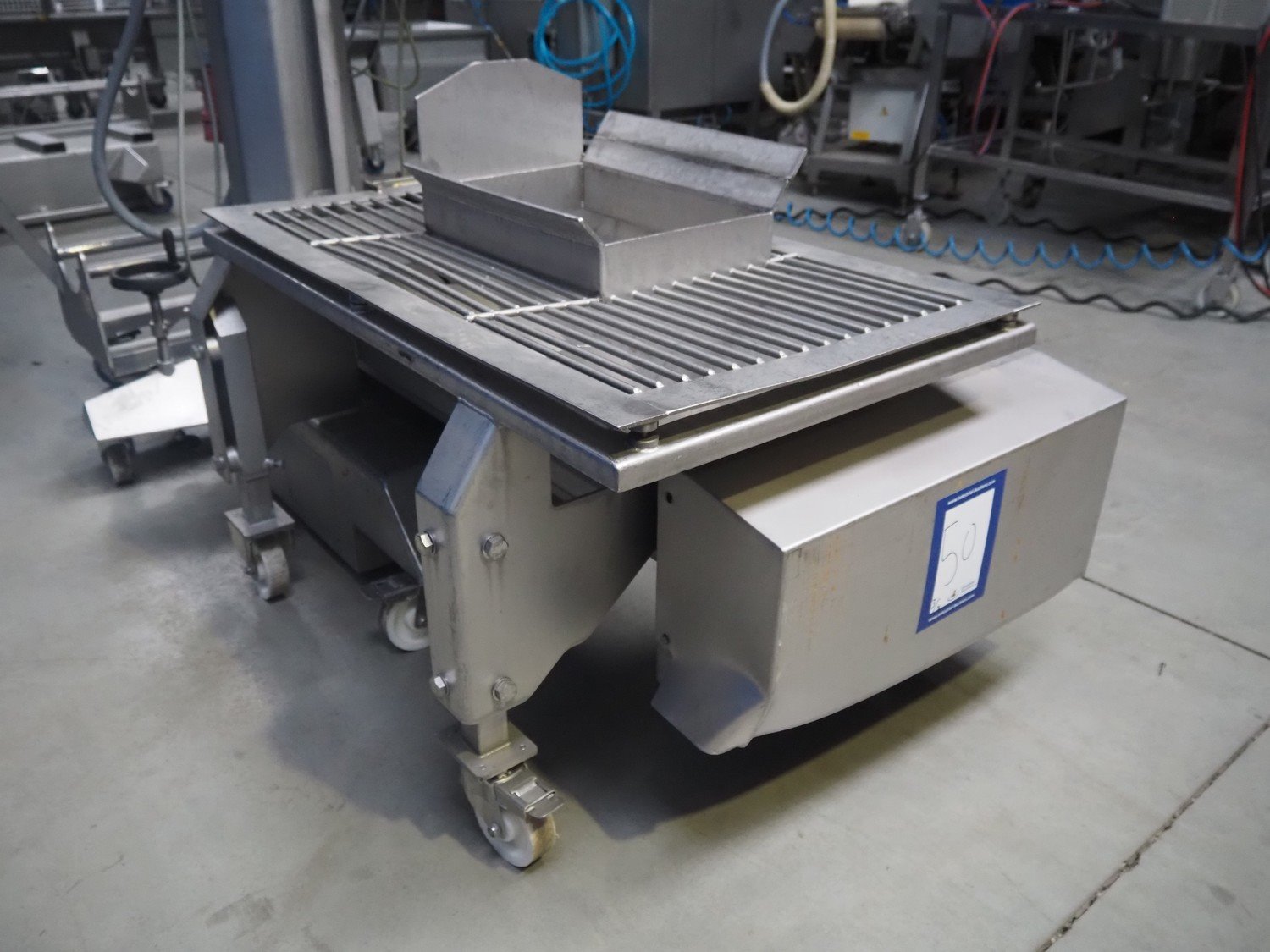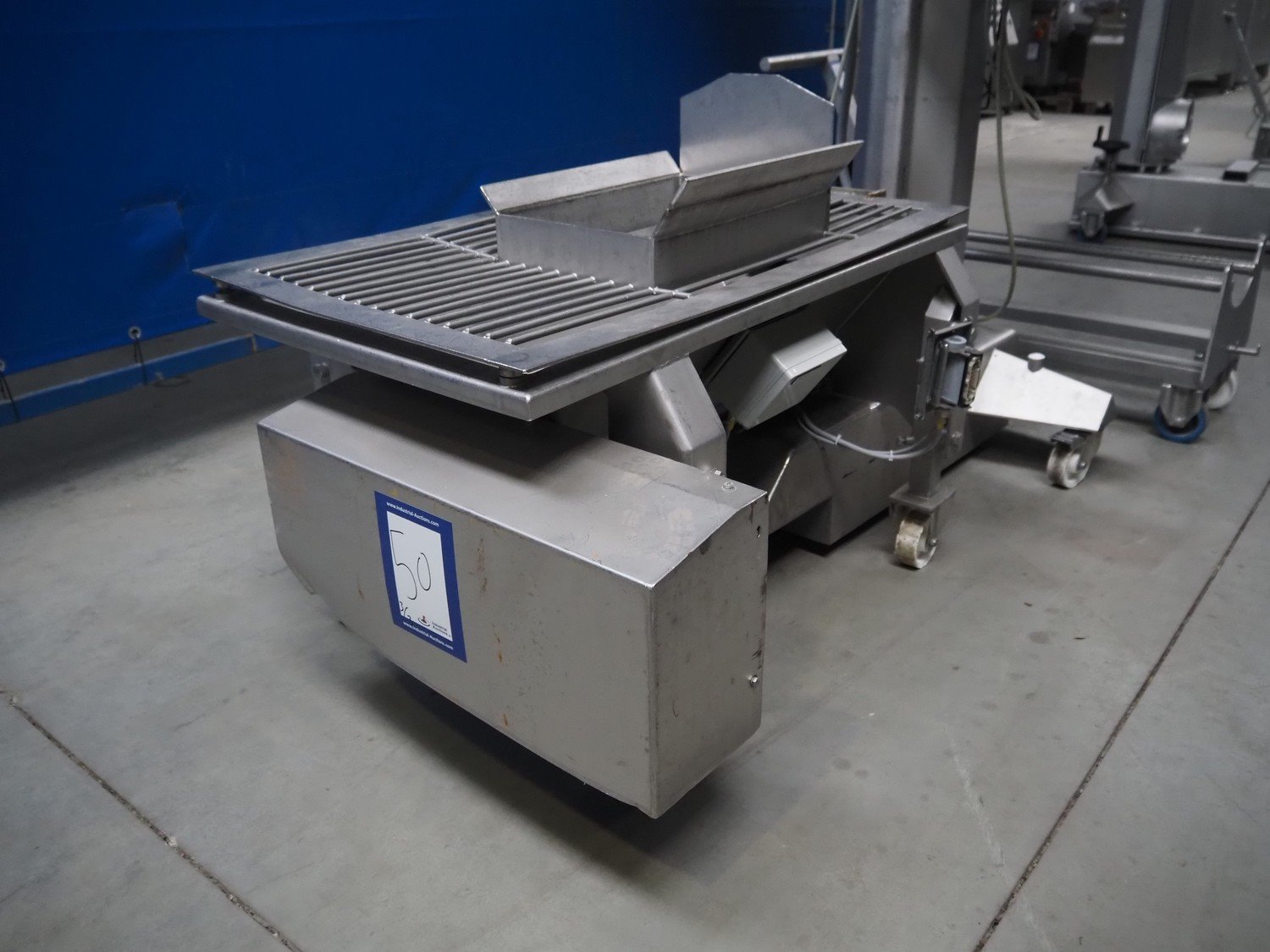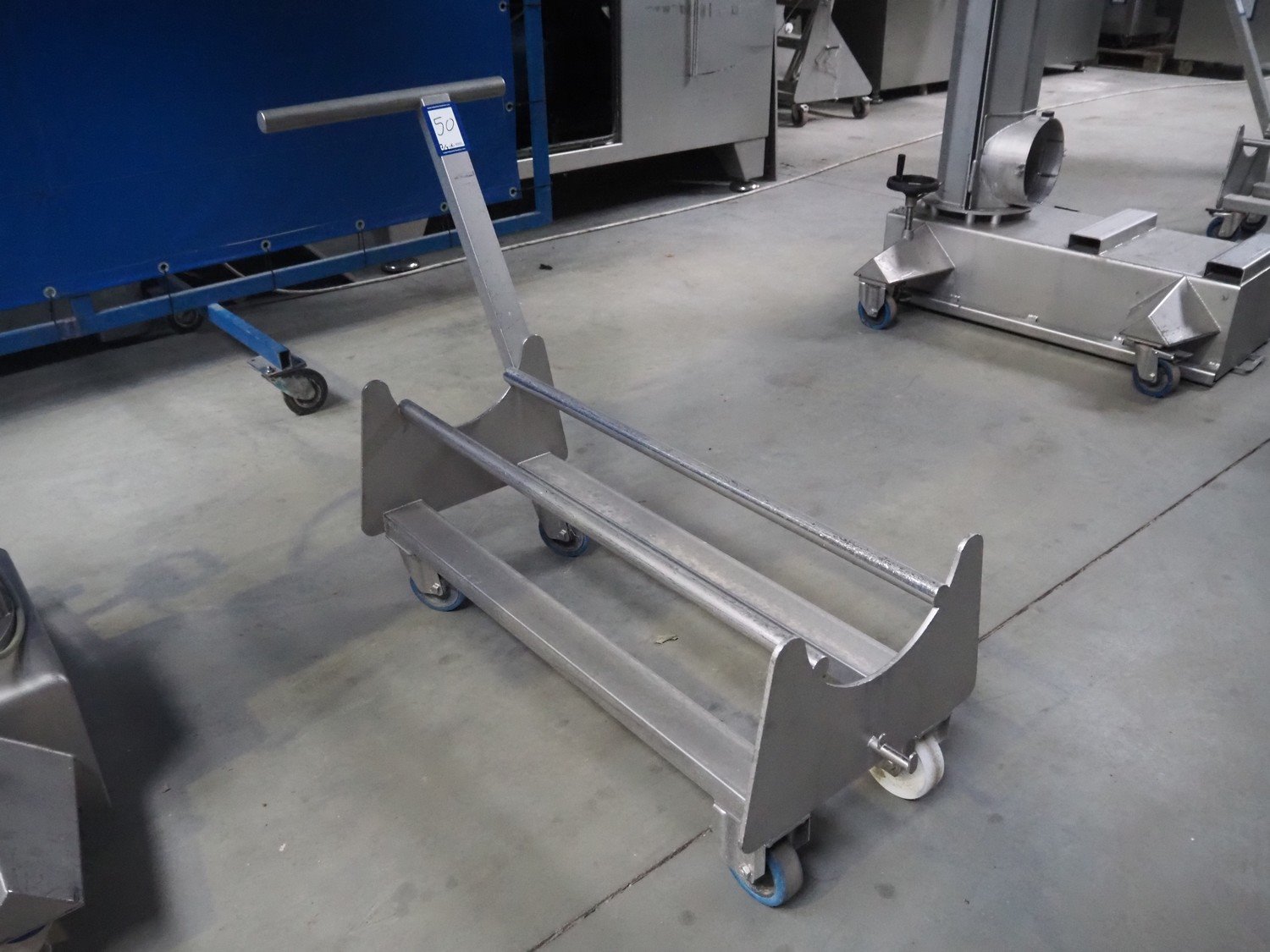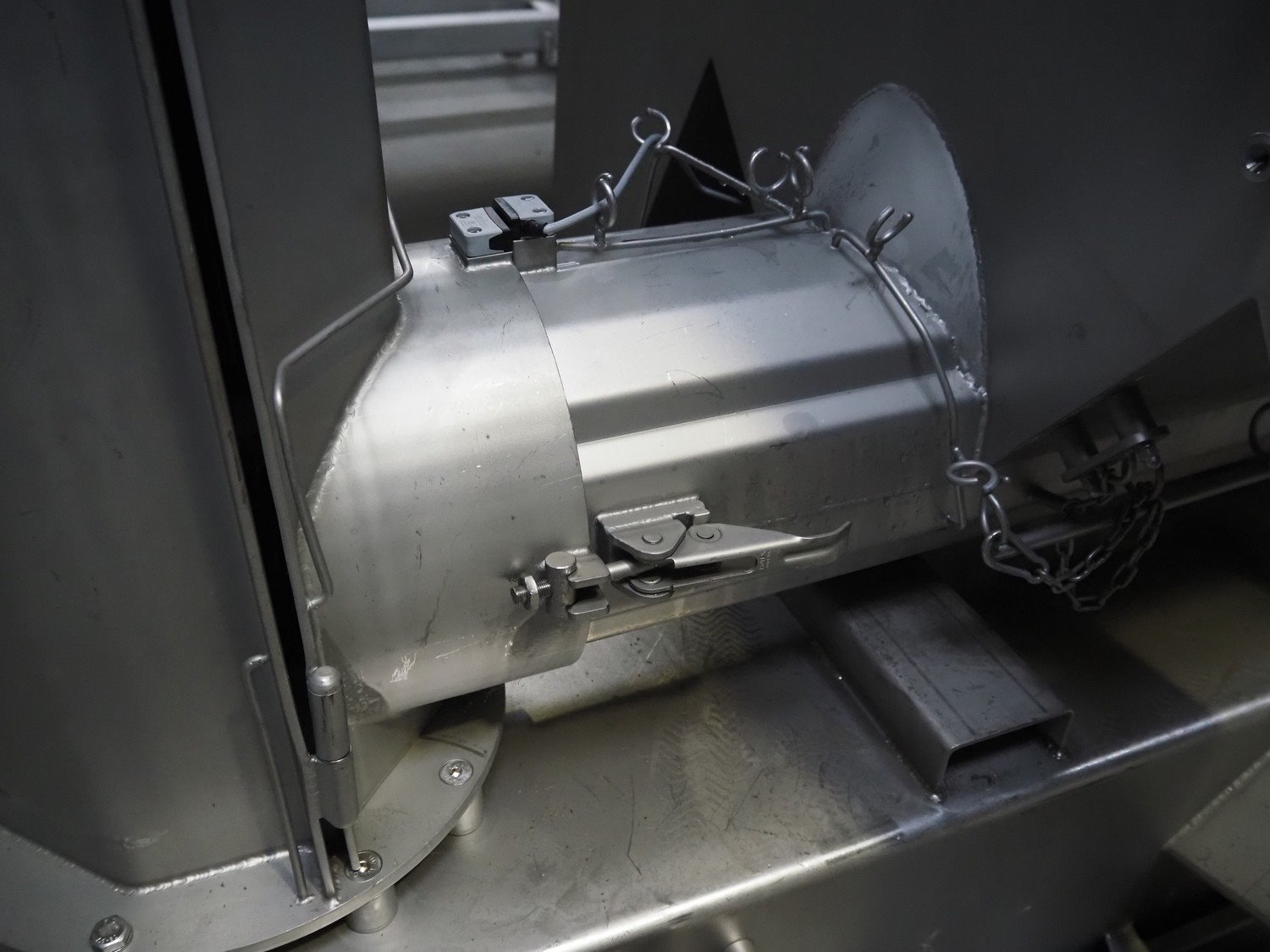 Carnitech s/s ribbon mixer, dimensions: 2300 mm x 1500 mm x 1200 mm, including Marel Carnitech mobile s/s giraf, model: B250, serial number: M10189, year of construction: 2016, 400 V 3 Ph, 50 Hz, 7.9 A, screw dimensions: 240 mm, tier: 180 mm, elevating height: 2500 mm, total dimensions: 2000 mm x 1000 mm x 3000 mm and s/s trolley, dimensions: 1350 mm x 450 mm x 970 mm.
