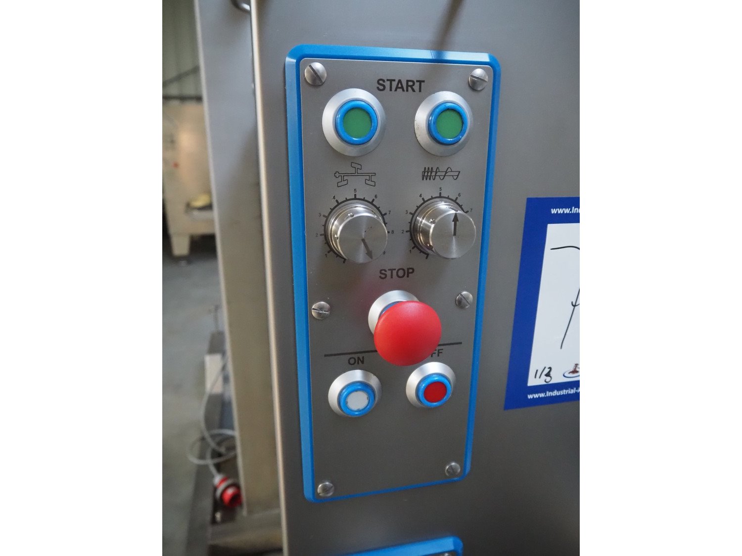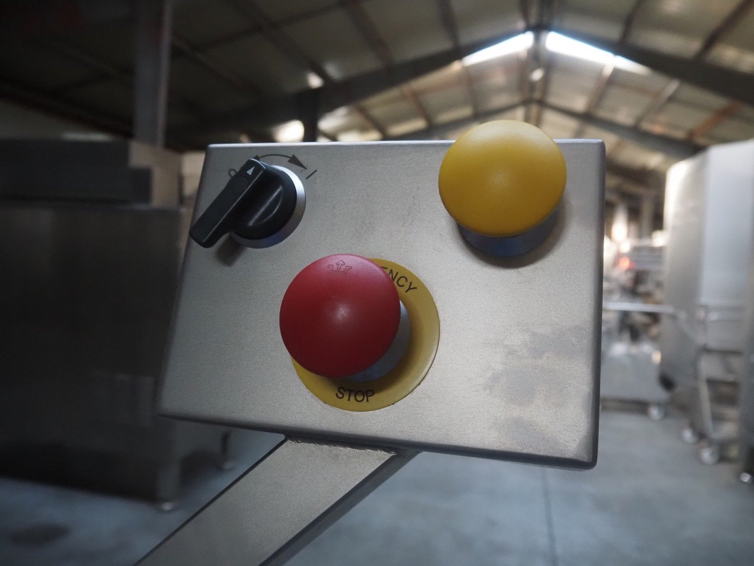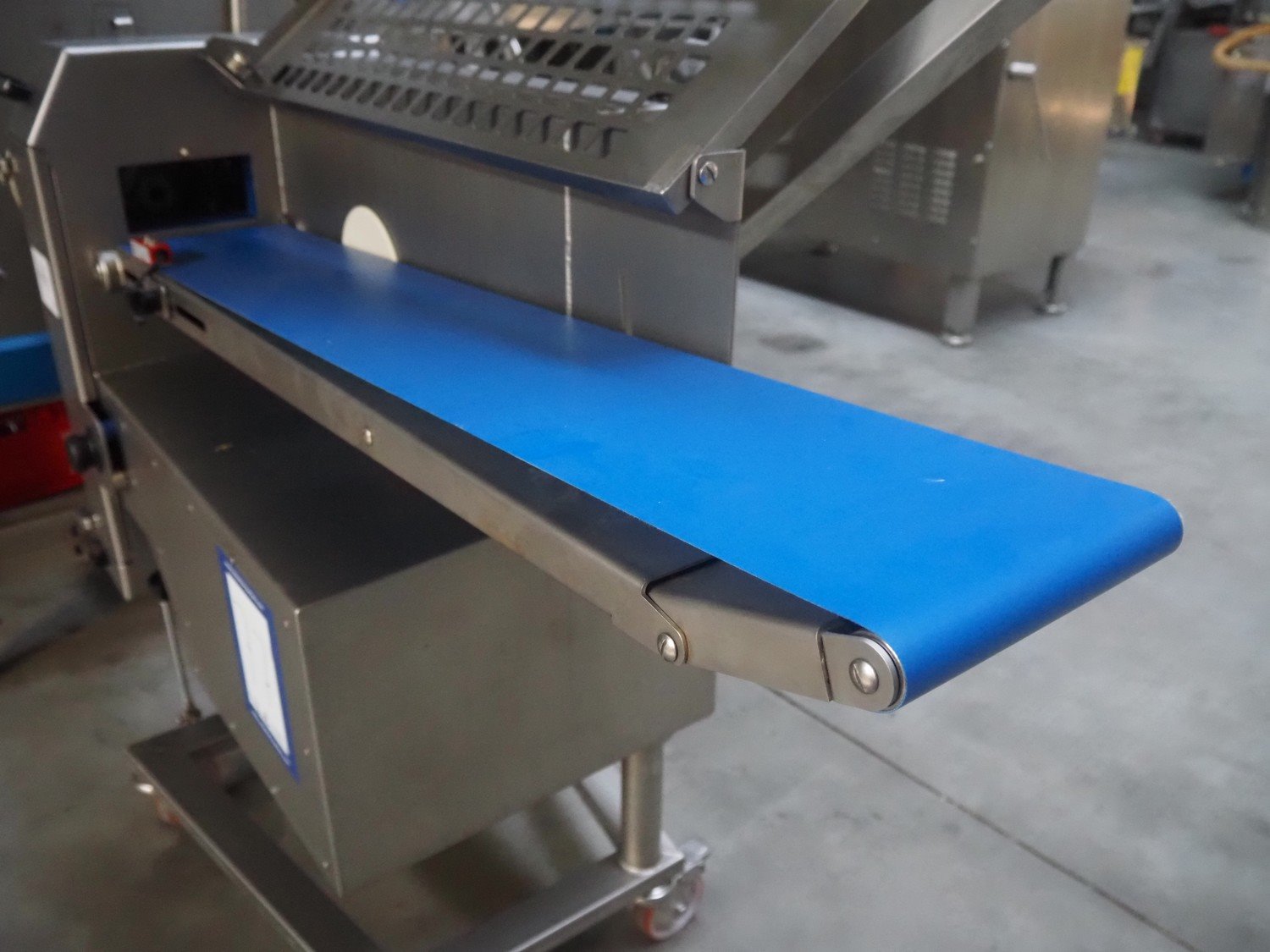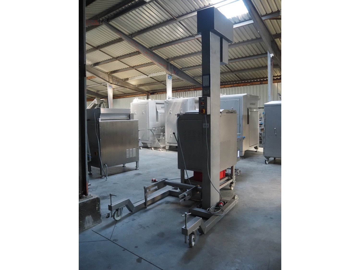 Kolbe grinding- and portioning line, consisting of: Servotech mobile lifter for 200 liter meat bins, type: PST 200, machine number: 58, year of construction: 2018, 400 V, 3 Ph, 2.1 A, 0.75 kW, weight: 300 kg, elevating height: 1900 mm, total dimensions: 1400 mm x 1700 mm x 3050 mm; Kolbe mobile mixer-grinder type: MW130-120, serial number: 128 0260, year of construction: 2018, 400 V, 3 Ph, 50 Hz, 20.5 + 2.8 A, 10 + 1.1 kW, weight: 500-560 kg, diameter plate: 175 mm, total dimensions: 1300 mm x 920 mm x 1640 mm; Kolbe mobile portioner, type: PM 150, serial number: 75 0475, year of construction: 2018, 230/400 V, 3 Ph, 50 Hz, 0.87 A, 0.25 kW, weight: 139-141 kg, plastic belt, belt width: 200 mm, total dimensions: 1450 mm x 630 mm x 1350 mm; Crate with various plates.