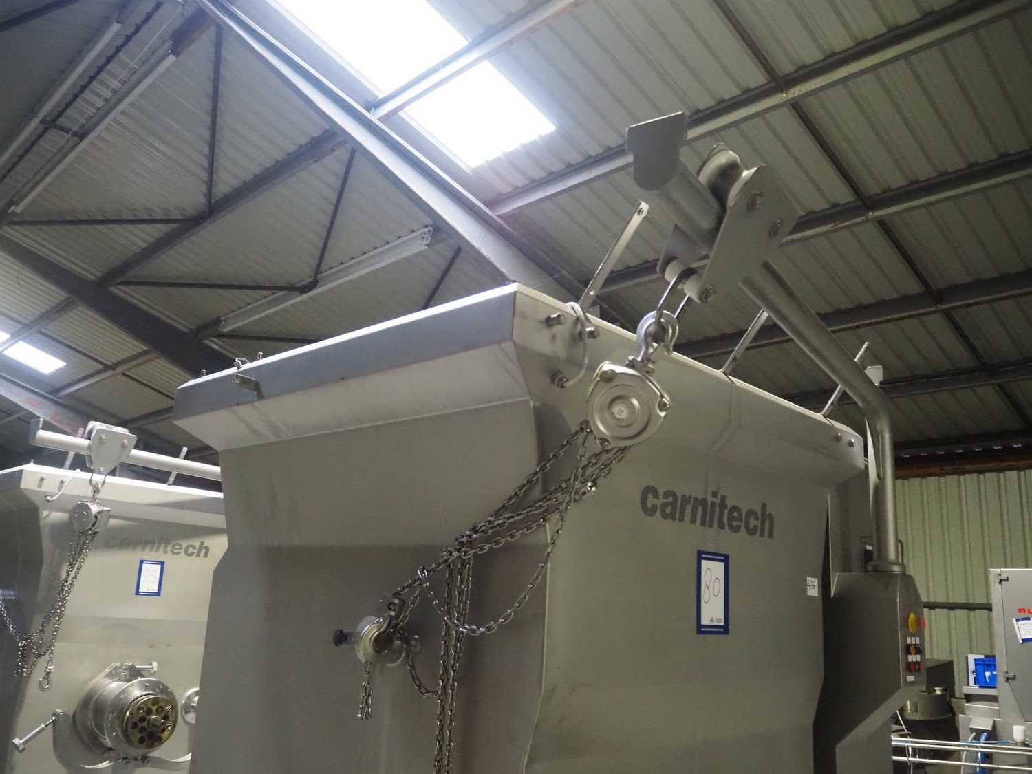Carnitech mixer-grinder, type: CT3113, serial number: 04-0262, year of construction: 2005, 400 V, 3 Ph, 50 Hz, plate diameter: 240 mm, total dimensions: 2300 mm x 1950 mm x 2500 mm.