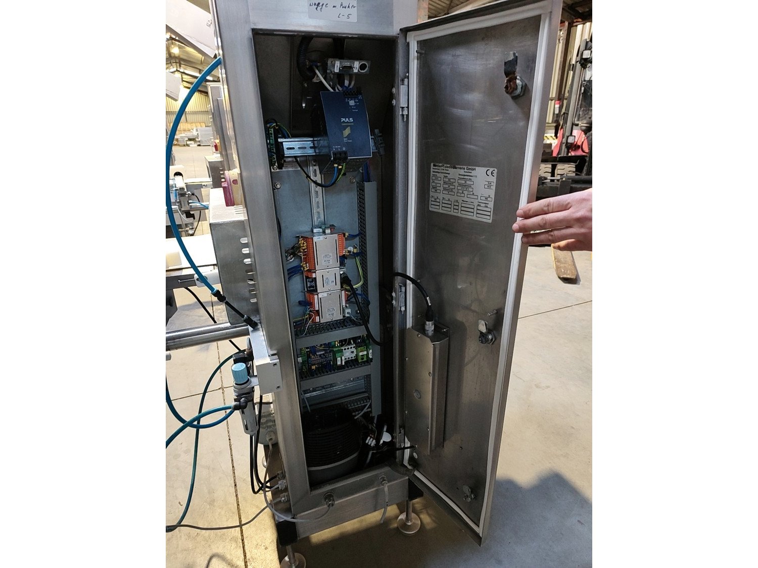 Garvens checkweigher with rejectior, model E3, serial number: 333475, year of construction: 2005, 230 V, 50 Hz, weigher DMS, maximum load: 3000 g, dimensions: 1400 mm x 800 mm x 1550 mm.