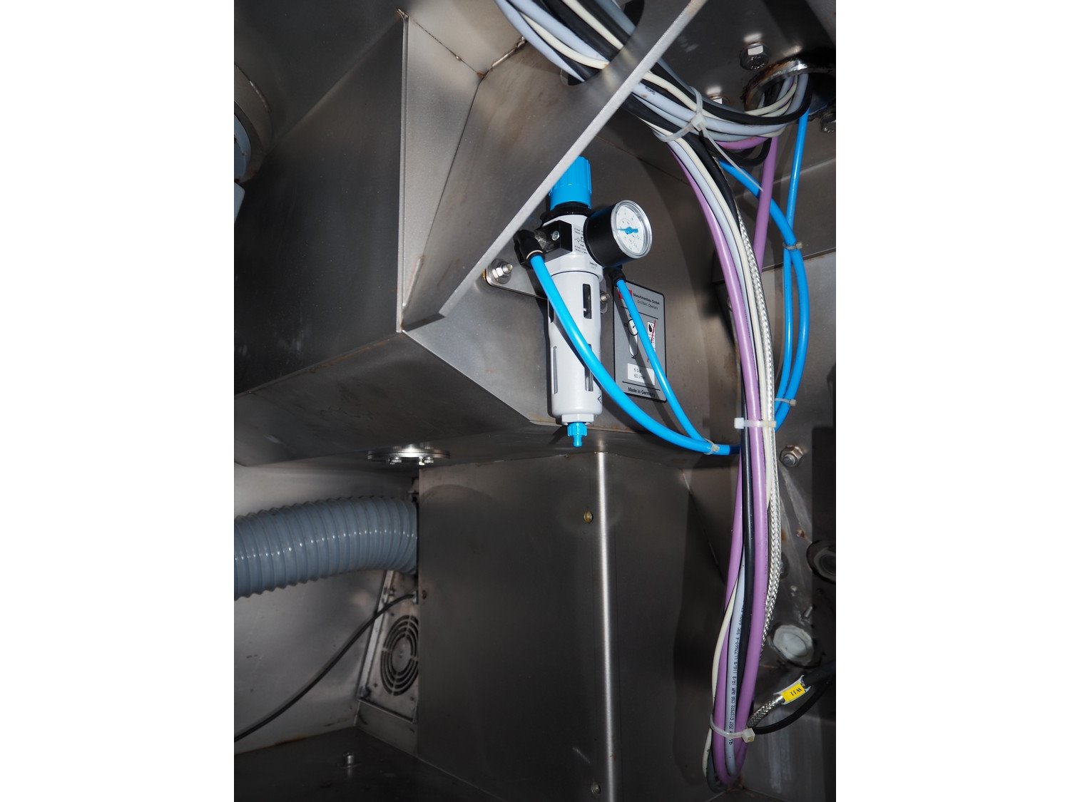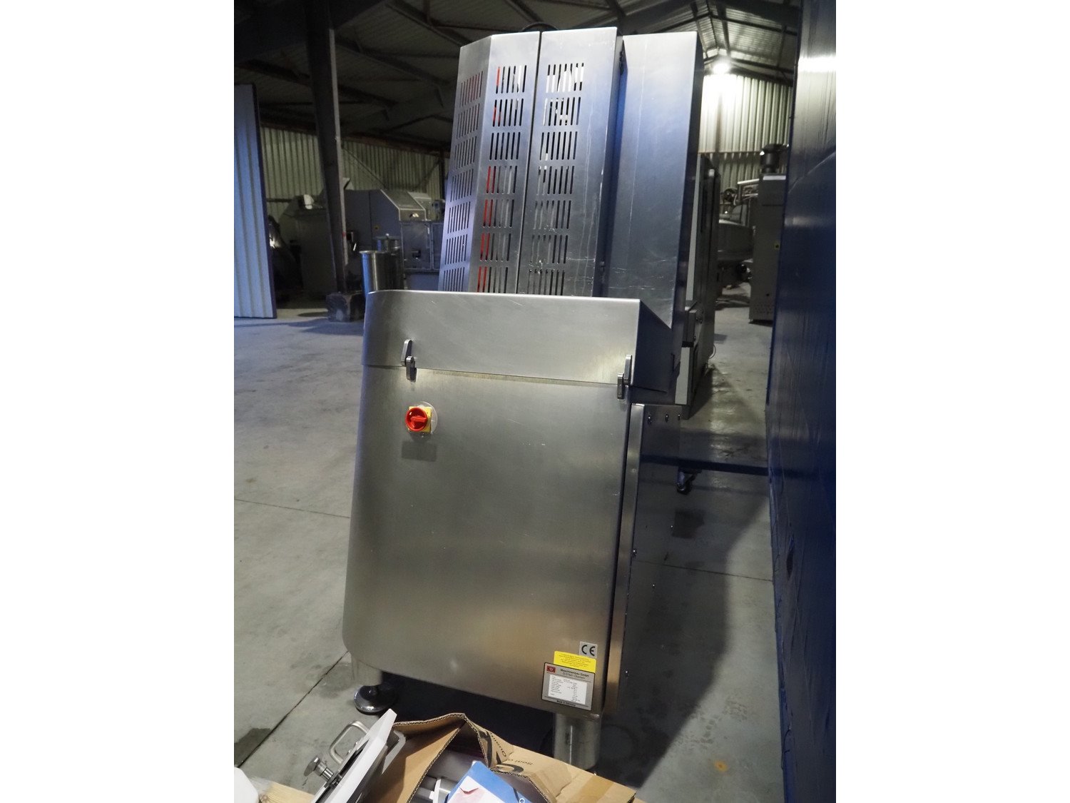 Treif Maschinenbau GmbH slicer, model: Divider 440, machine number: 56 0102.61966.104536, year of construction: 2008, 380/480 V, 3 Ph, 50/60 Hz, 32 A, 4.8 kW, weight: 820 Kg, plastic belt, belt width: 420 mm, total dimensions: 2450 mm x 930 mm x 2180 mm. Including pallet with 2 extra knives and other parts.