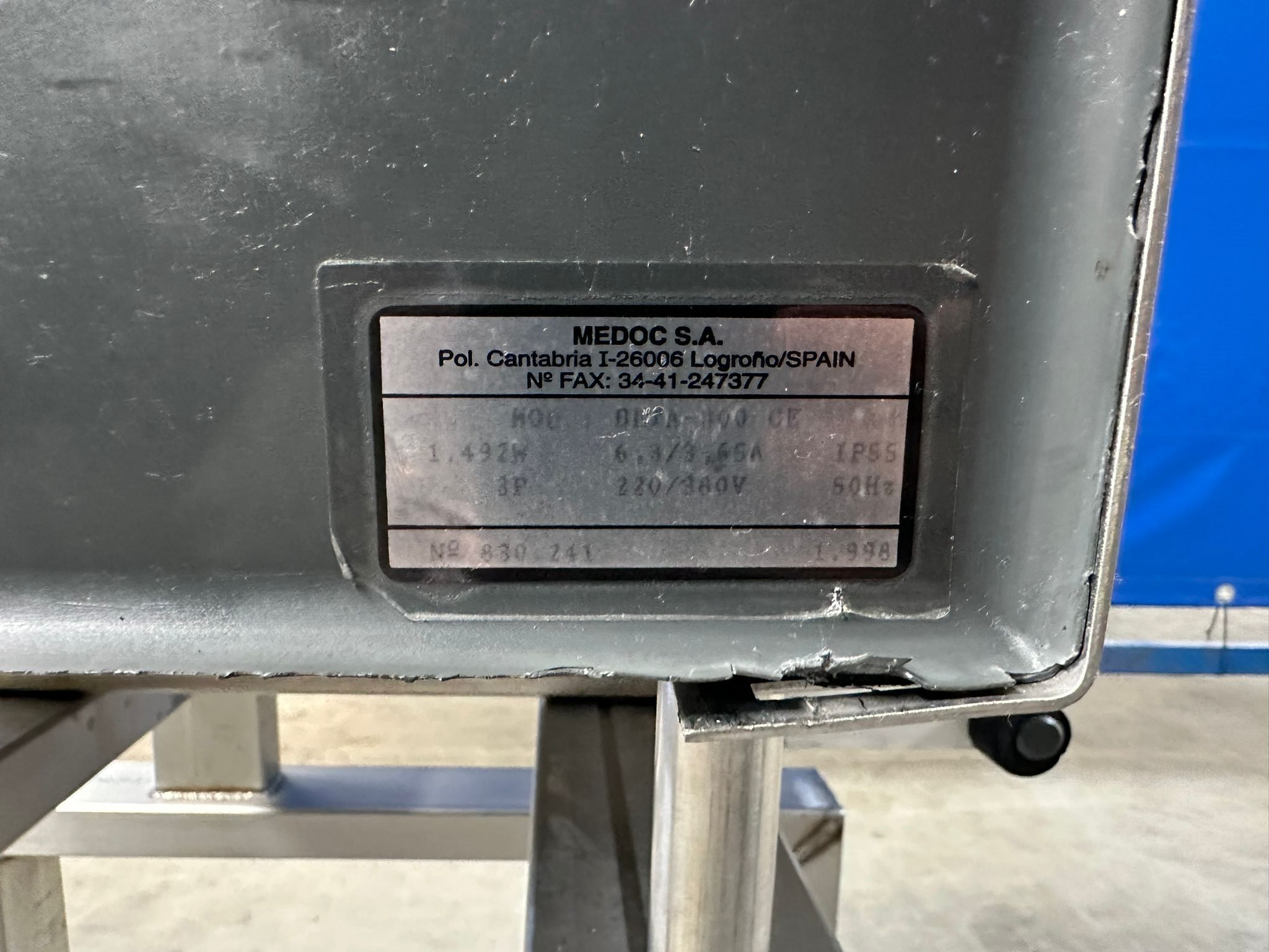 Medoc S.A. bandsaw, model: Beta 300 CE, number: 830 241, year of construction: 1998, 220/380 V, 50 Hz, 6.3/3.65 A, 1.49 kW, table dimensions: 600 mm x 500 mm, total dimensions: 750 mm x 600 mm x 1780 mm.