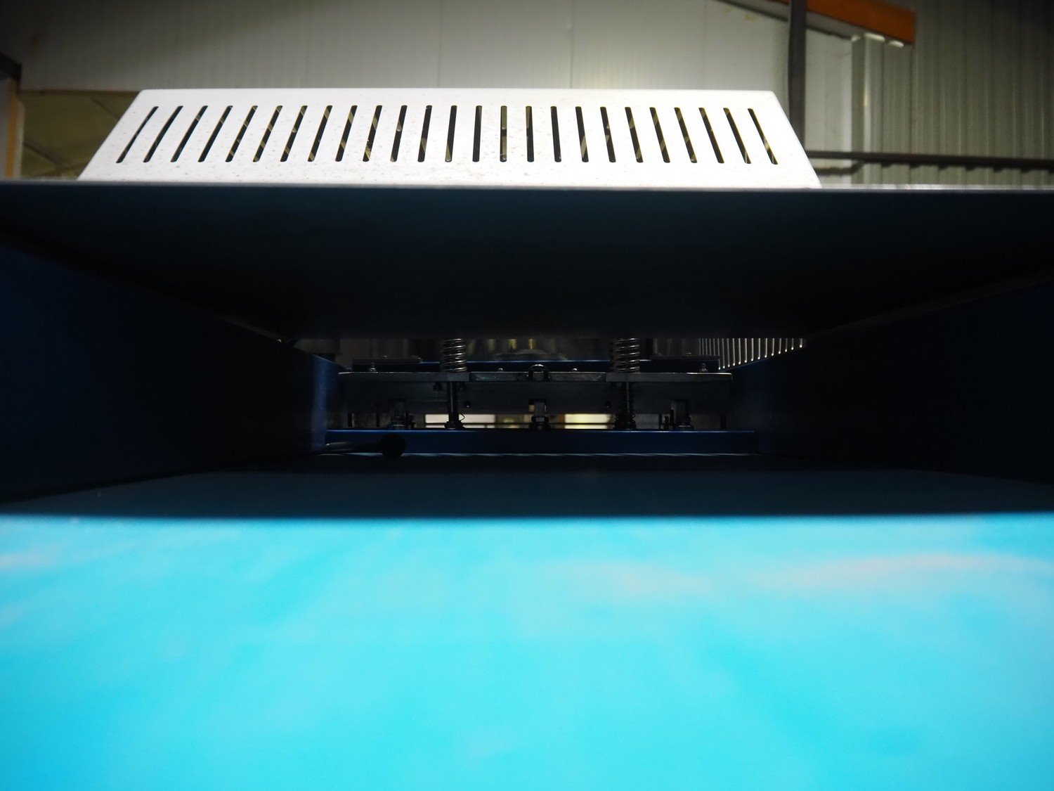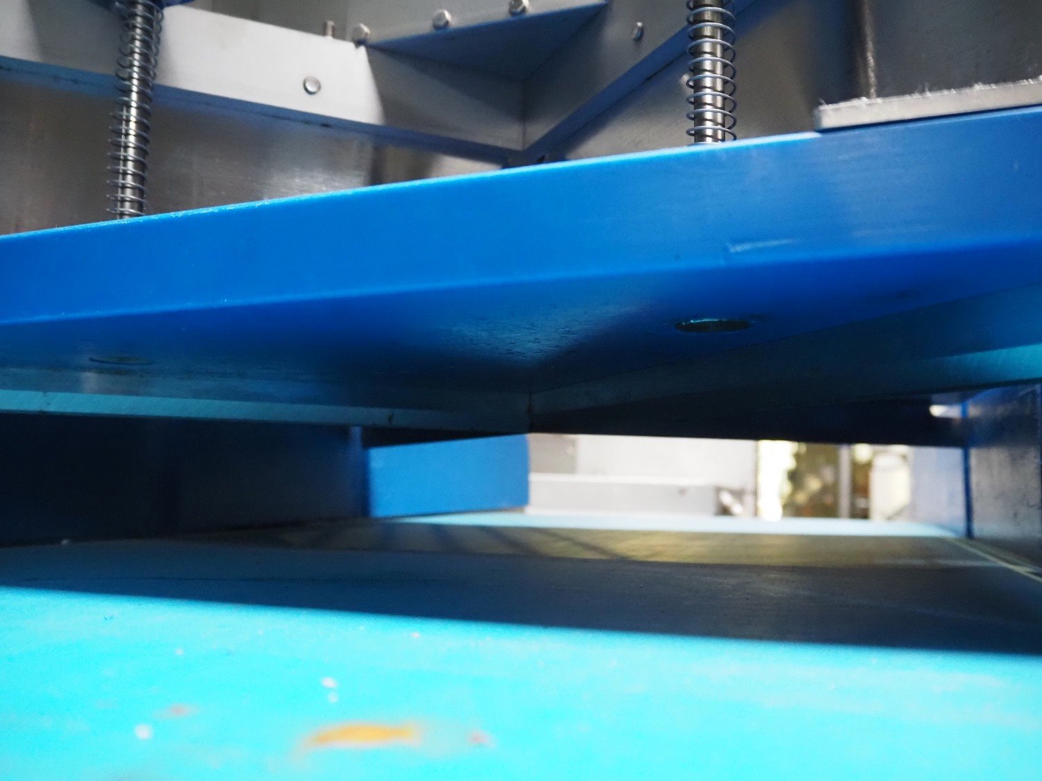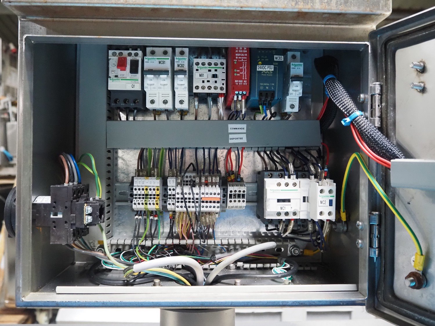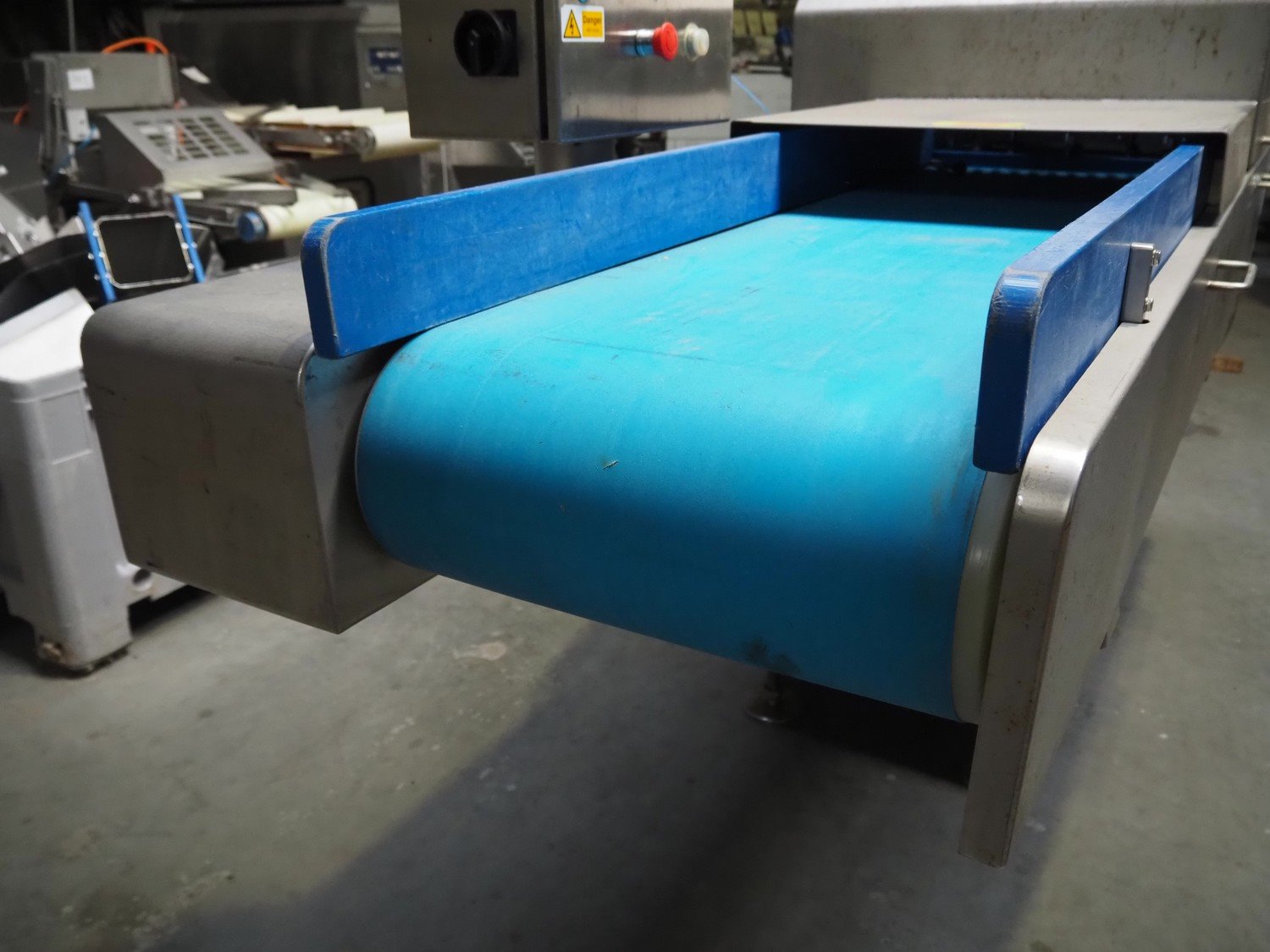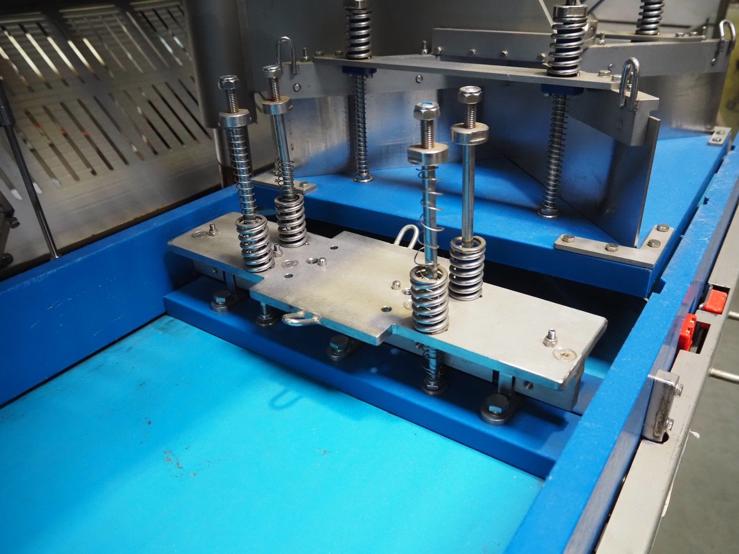 FAM guillotine slicer/dicer, model: GD, type: 500, number: 10247/2014, 400 V, 3 Ph, 50 Hz, 4.6 A, 2.2 kW, weight: 780 kg, plastic belt, belt width: 490 mm, X-knife, knife dimensions: 445 mm x 445 mm, total dimensions: 2750 mm x 1000 mm x 1760 mm.