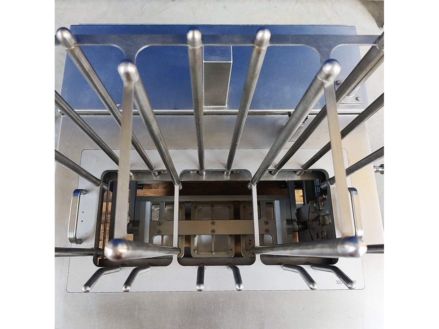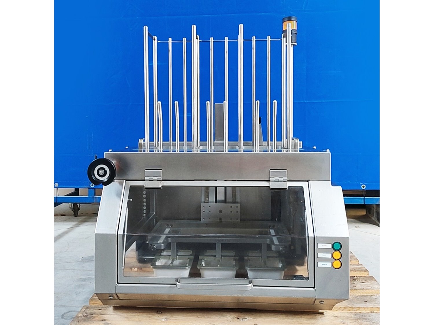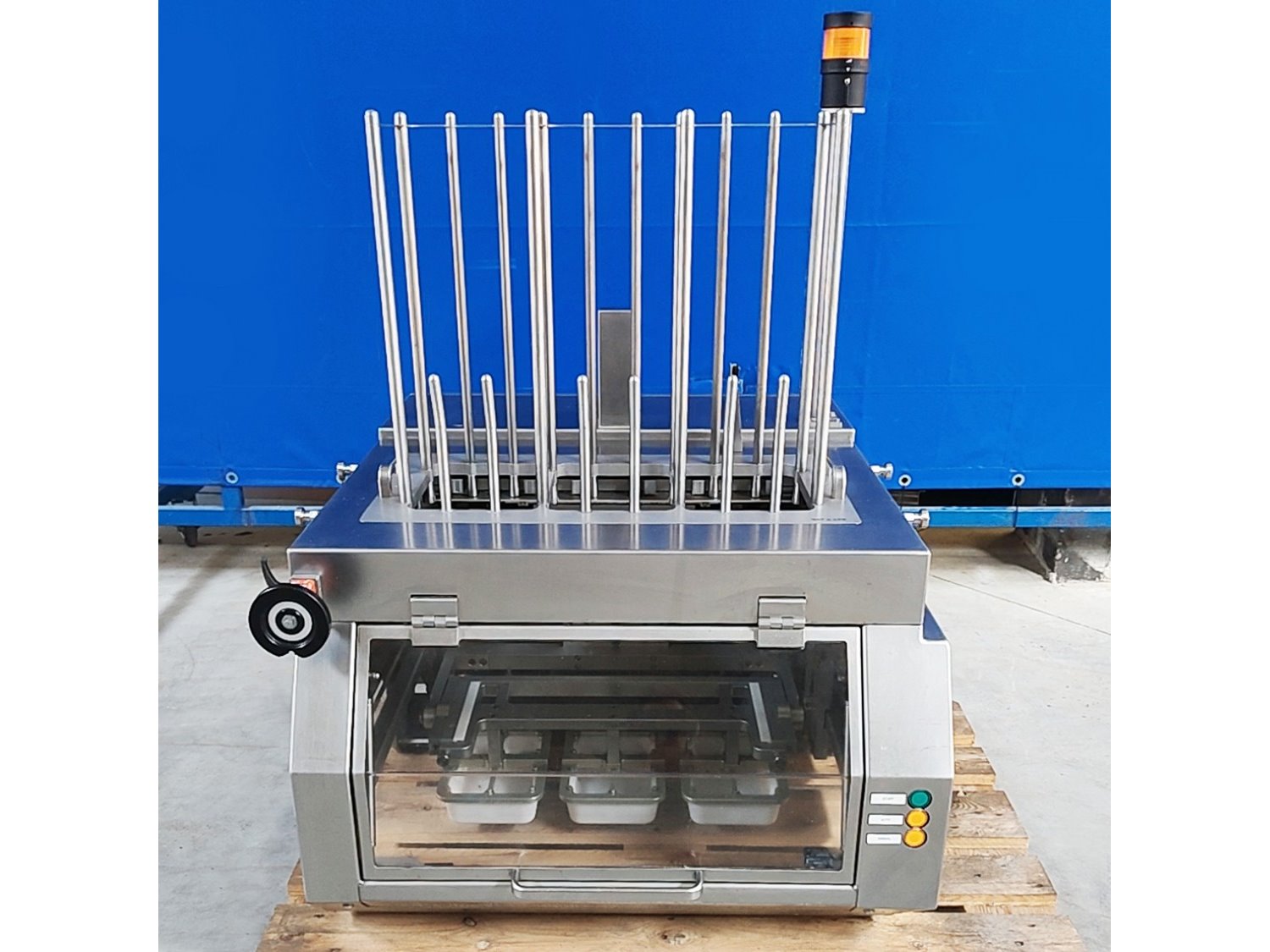 Tramper denester, type: D-360, serial number: 057, year of construction: 2013, 400 Vac, 6 bar, 160 kg, dimensions tray: (3x) 200 mm x 145 mm, total dimensions: 950 mm x 920 mm x 1400 mm.