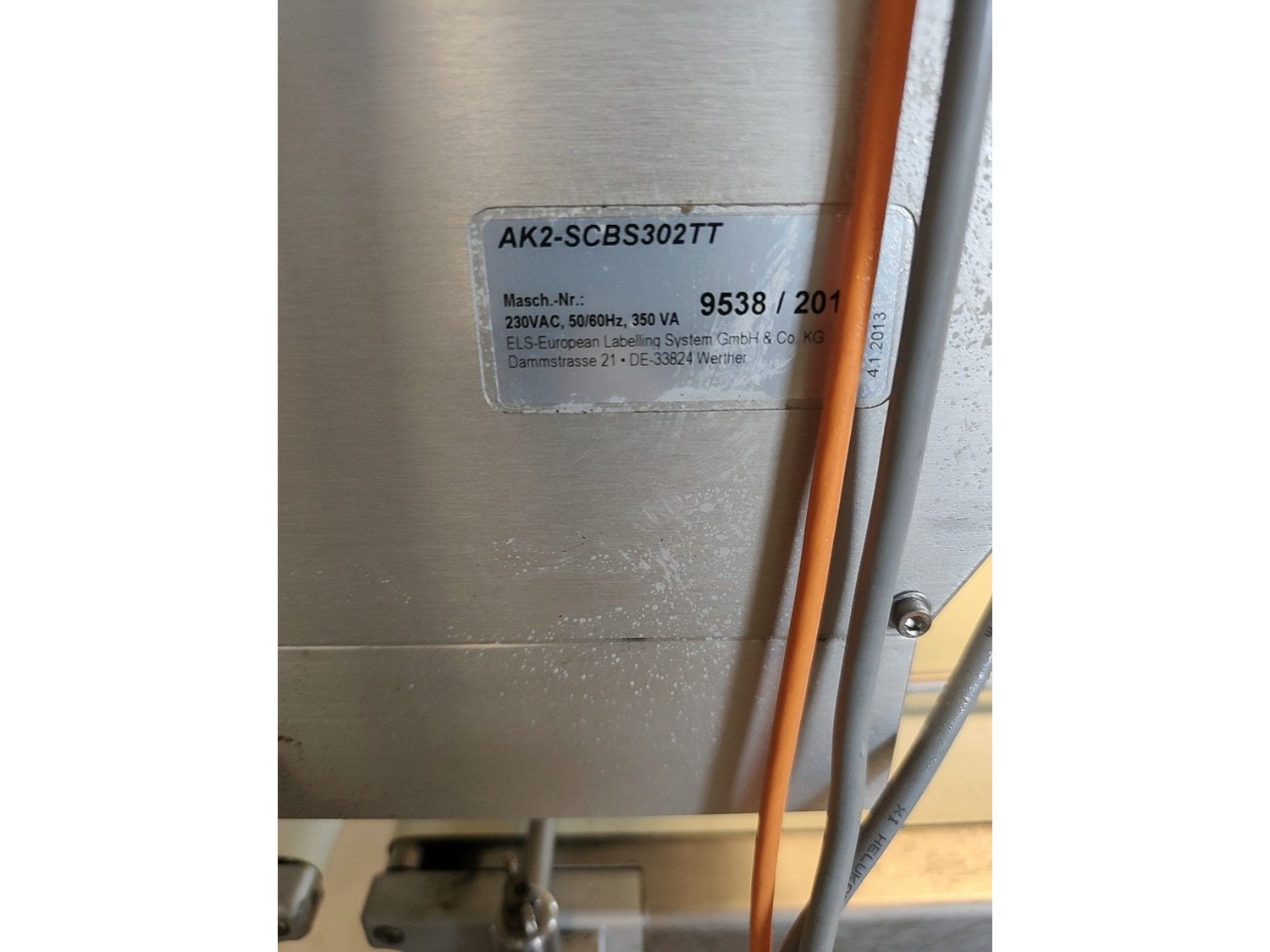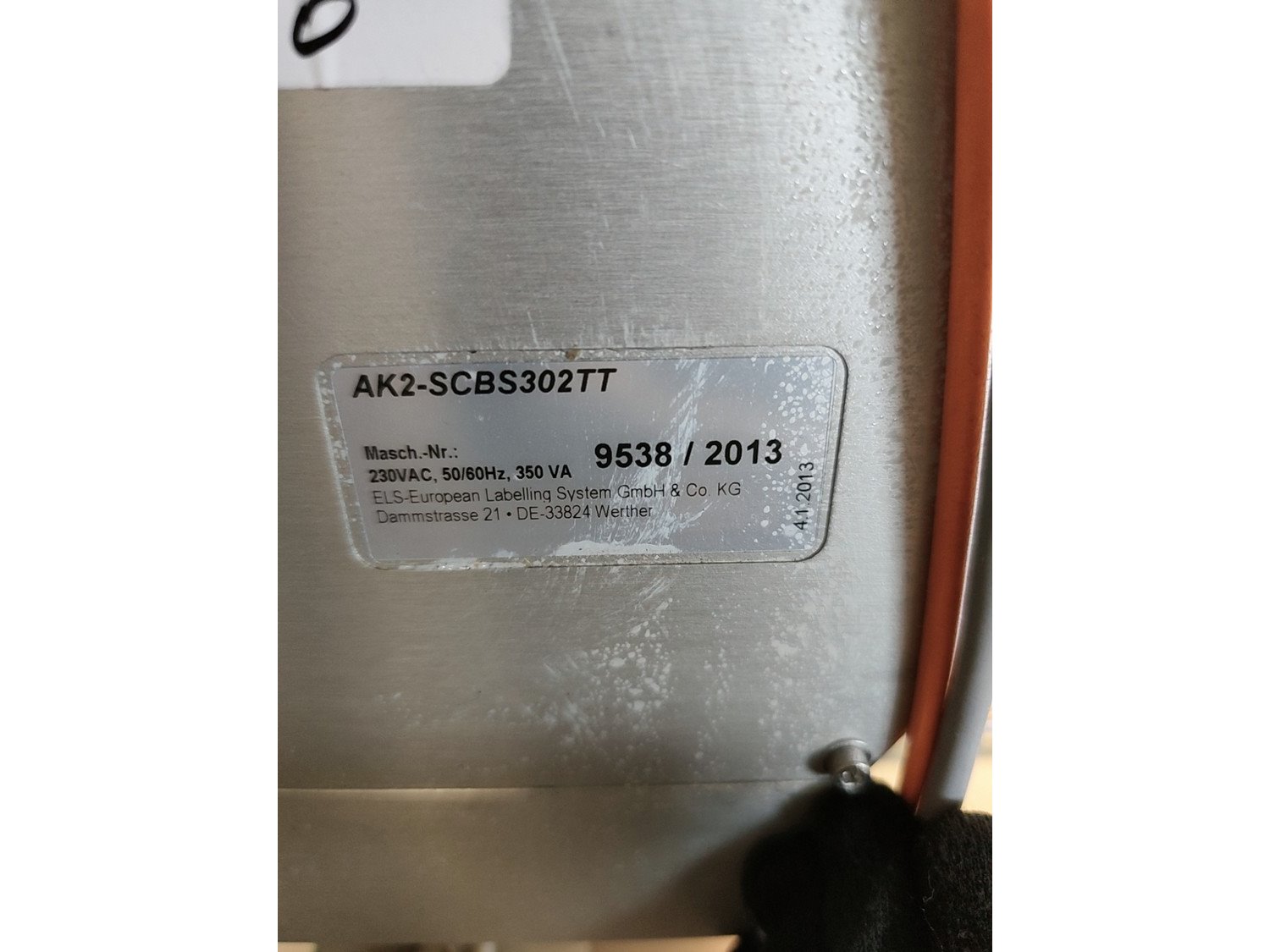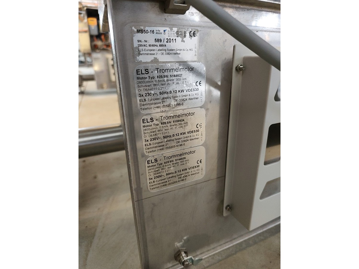 ELS labeling system, type: 330, maschine number: 5383/2005, year of construction: 2005, 230 V, 50/60 Hz, 2500 VA, capacity: 2800U/min, conveyor speed: 0,5m/s, label width of up to 300 mm, dimensions: 2300 mm x 1000 mm x 1700 mm.
