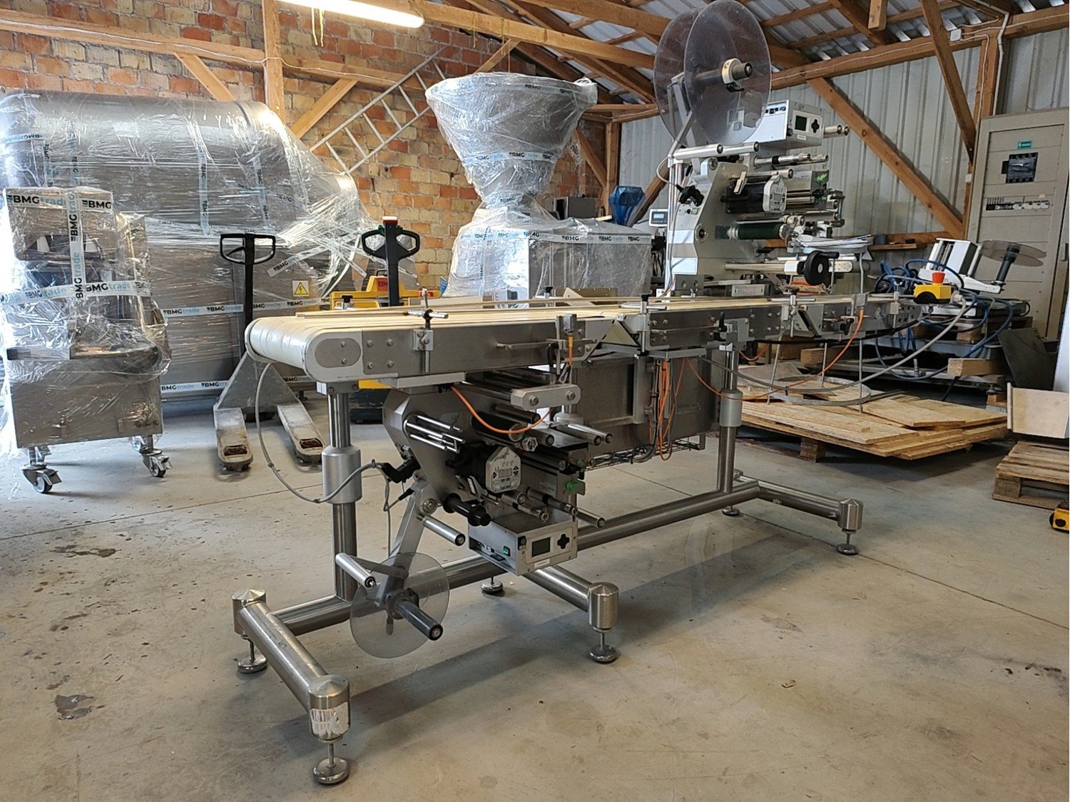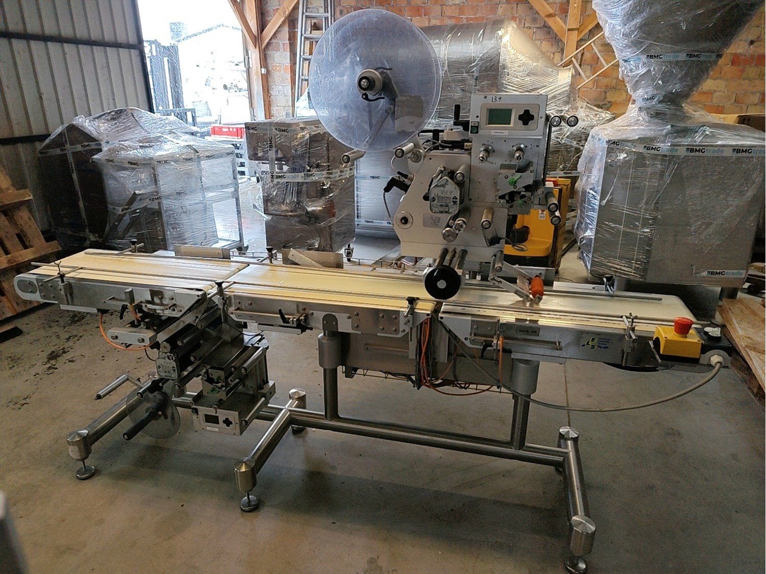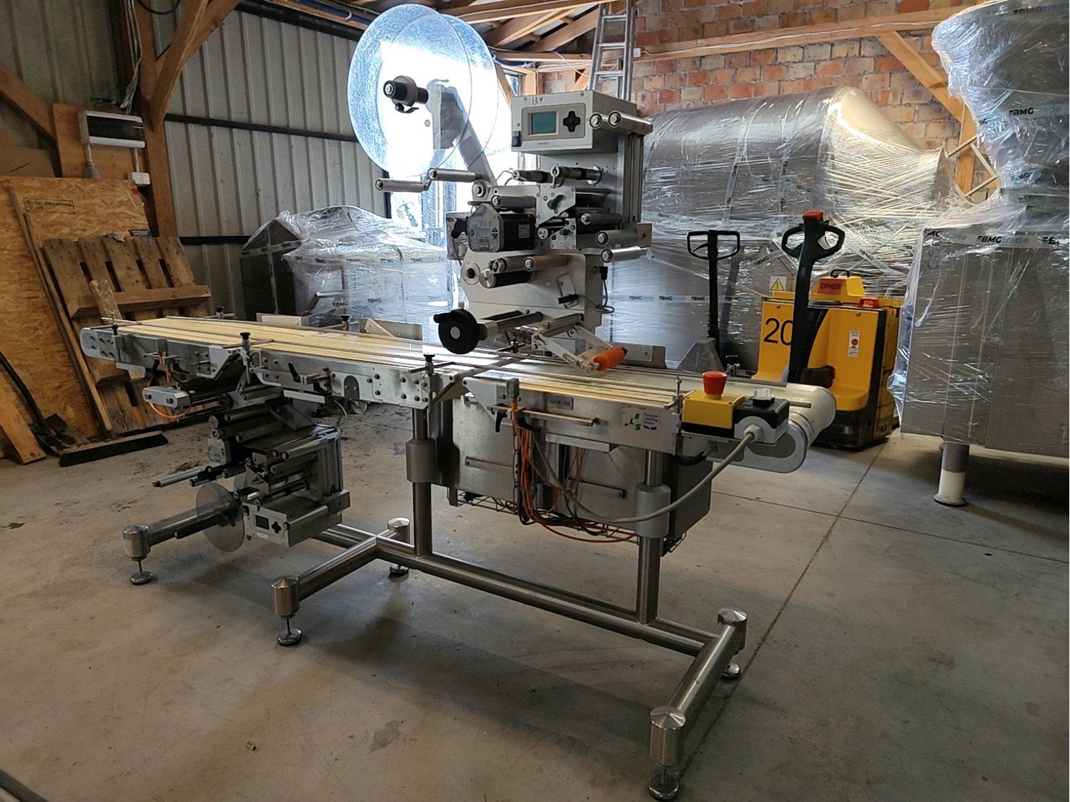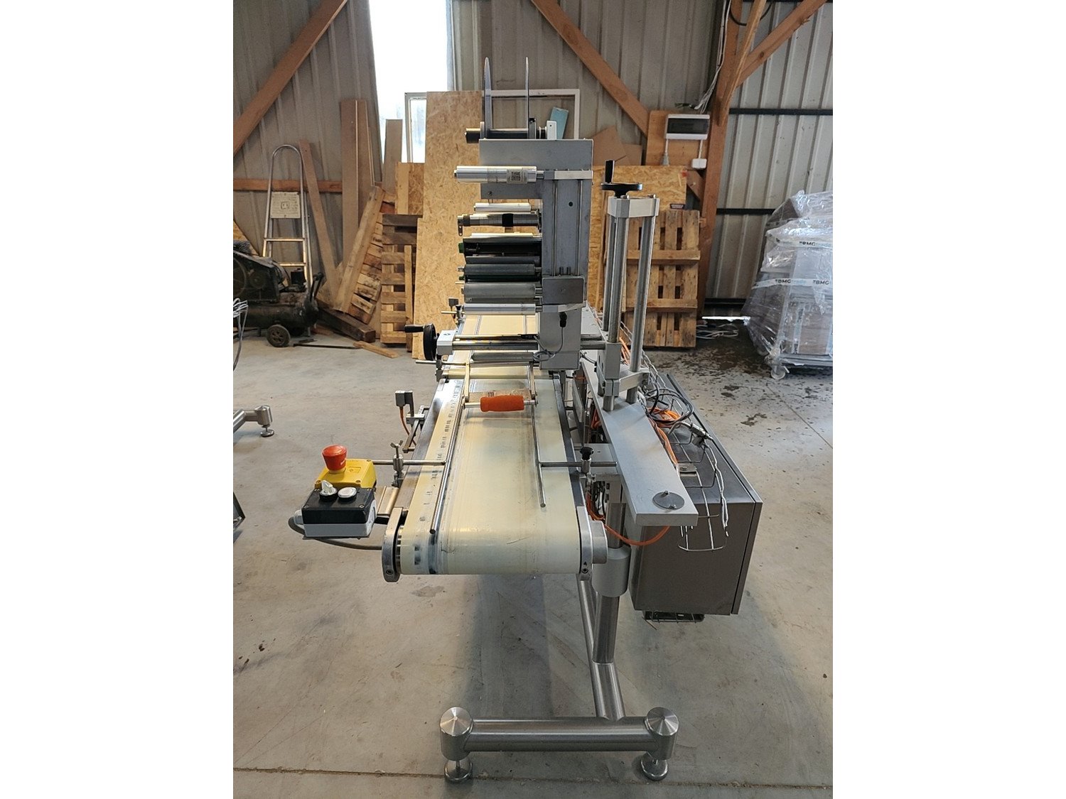 ELS labeling system, type: 330, maschine number: 5383/2005, year of construction: 2005, 230 V, 50/60 Hz, 2500 VA, capacity: 2800U/min, conveyor speed: 0,5m/s, label width of up to 300 mm, dimensions: 2300 mm x 1000 mm x 1700 mm.