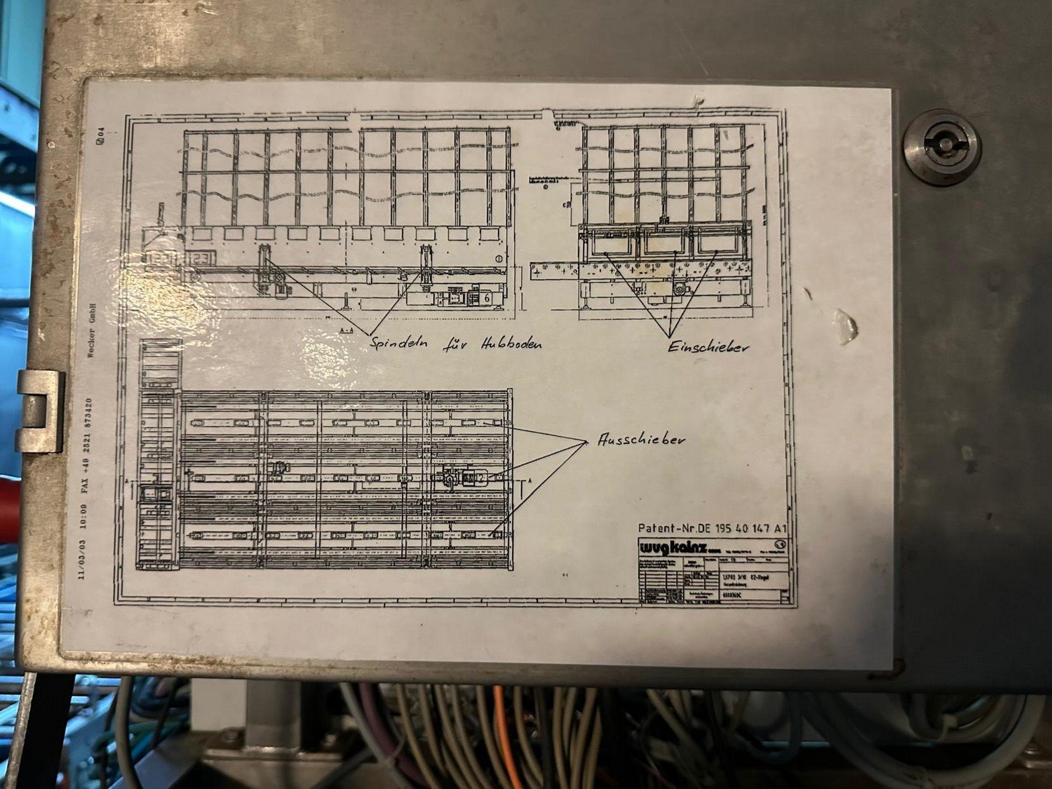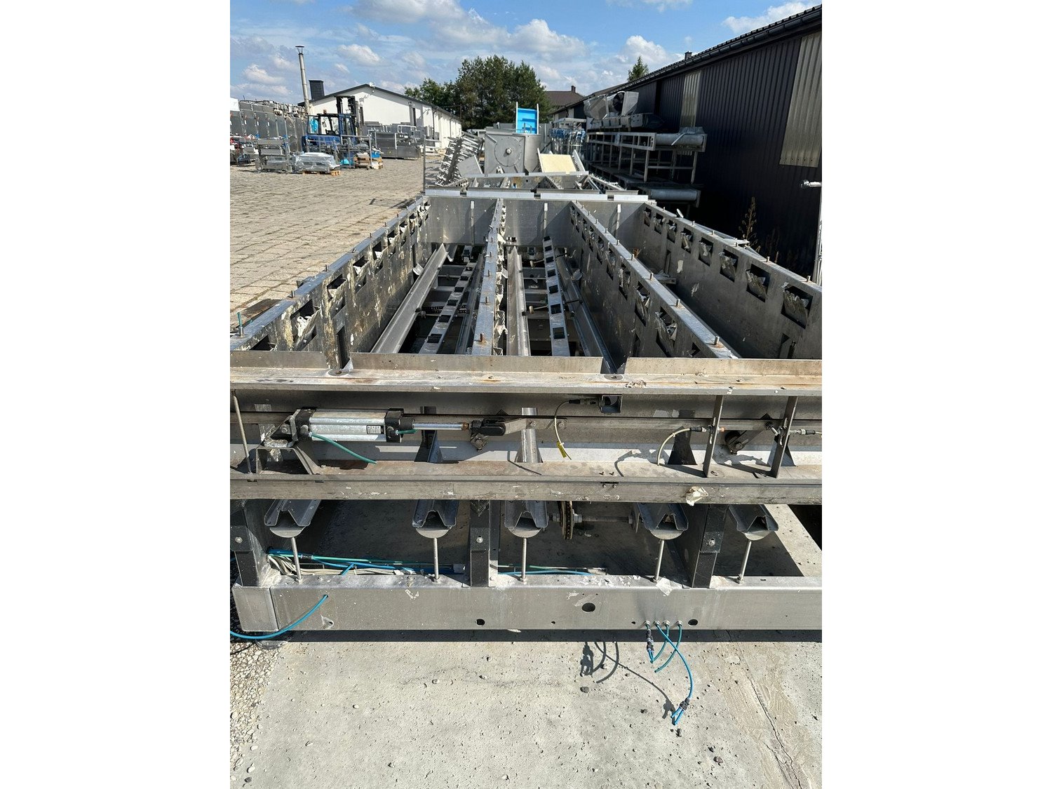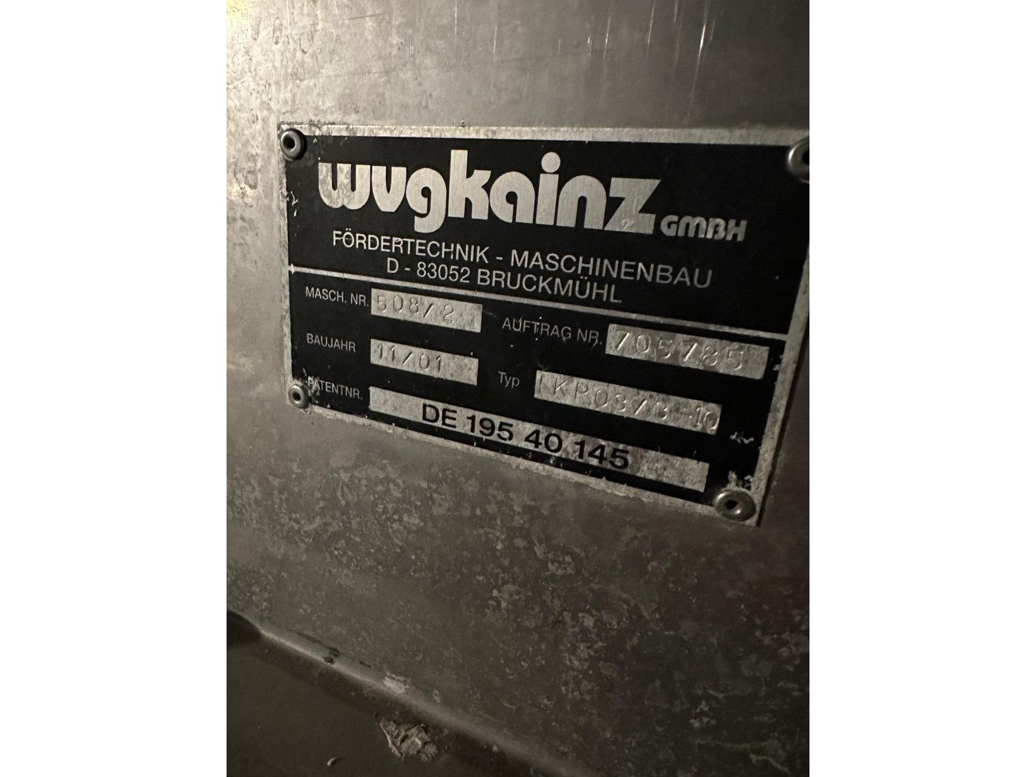 WVG Kainz E2 AND E1 crate washer, steam heated, double row, including blower-dryer, belt width: 500 mm, clearance: 500 mm x 300 mm, dimensions washer: 2000 mm x 1100 mm x 3000 mm. Including conveyors, crate buffer and approximately 2500 crates. Already dismantled.