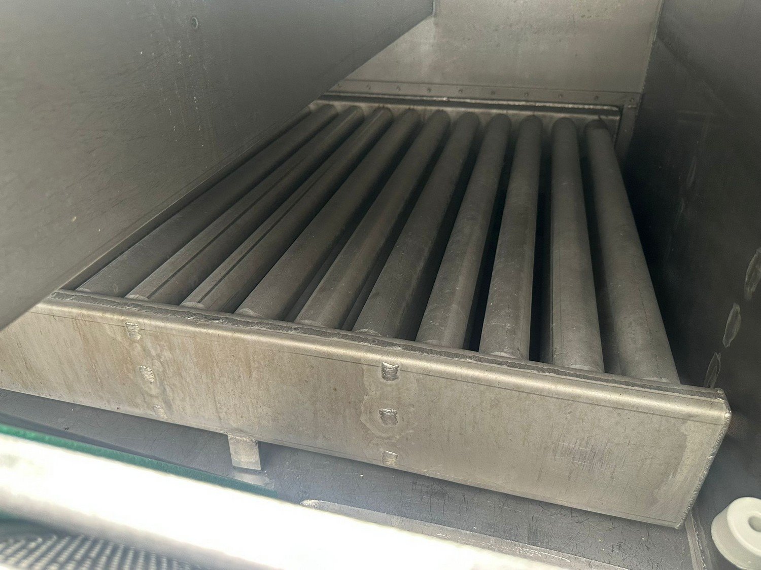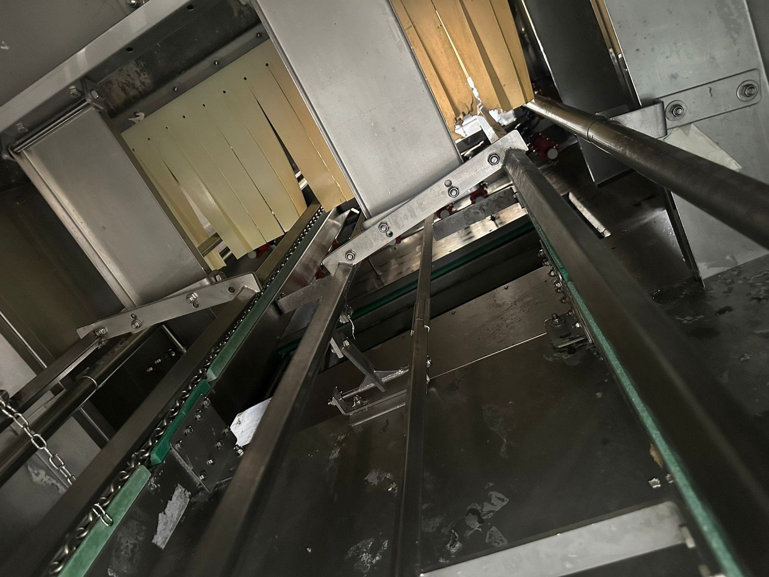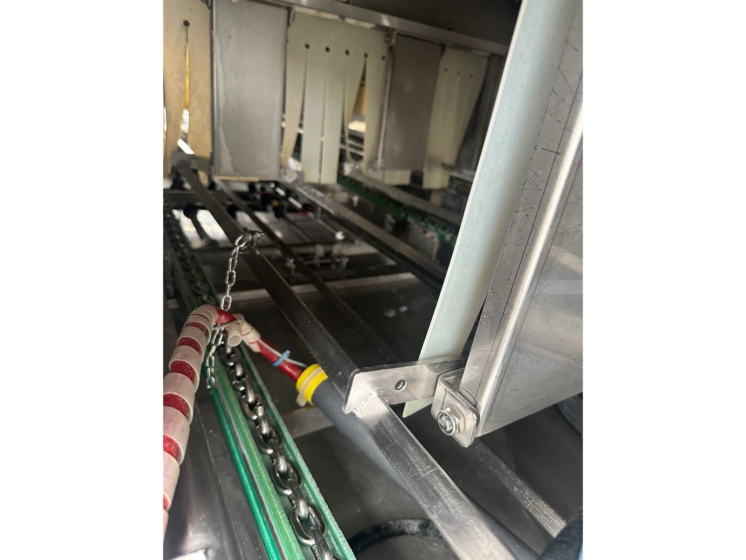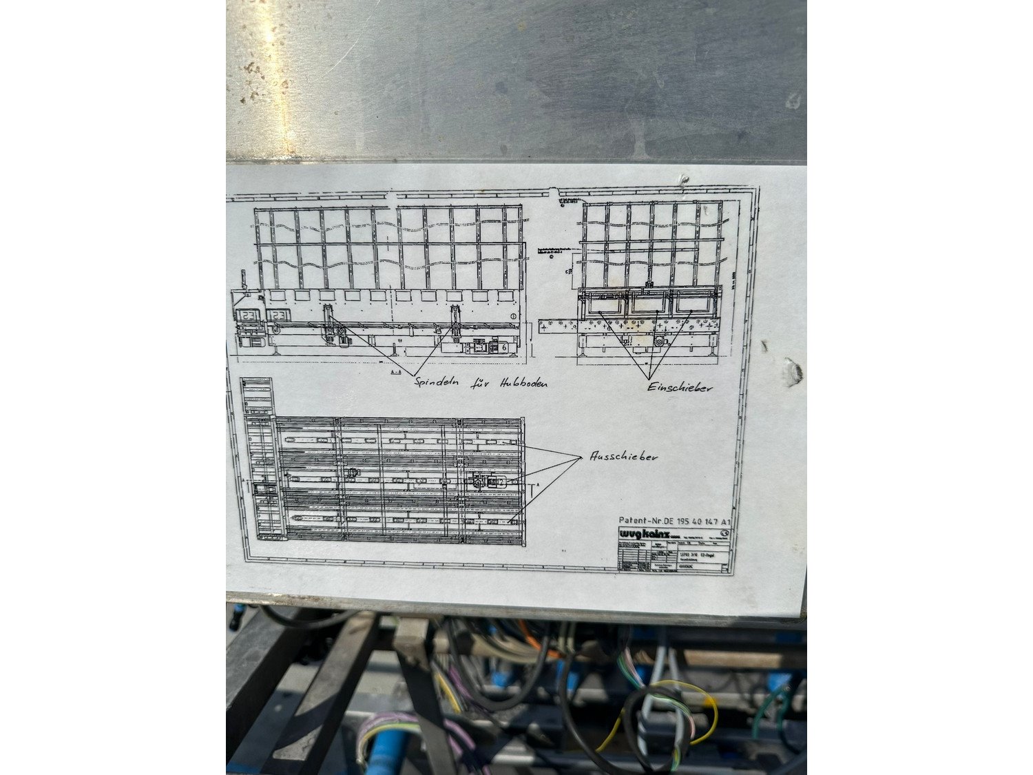 WVG Kainz E2 AND E1 crate washer, steam heated, double row, including blower-dryer, belt width: 500 mm, clearance: 500 mm x 300 mm, dimensions washer: 2000 mm x 1100 mm x 3000 mm. Including conveyors, crate buffer and approximately 2500 crates. Already dismantled.