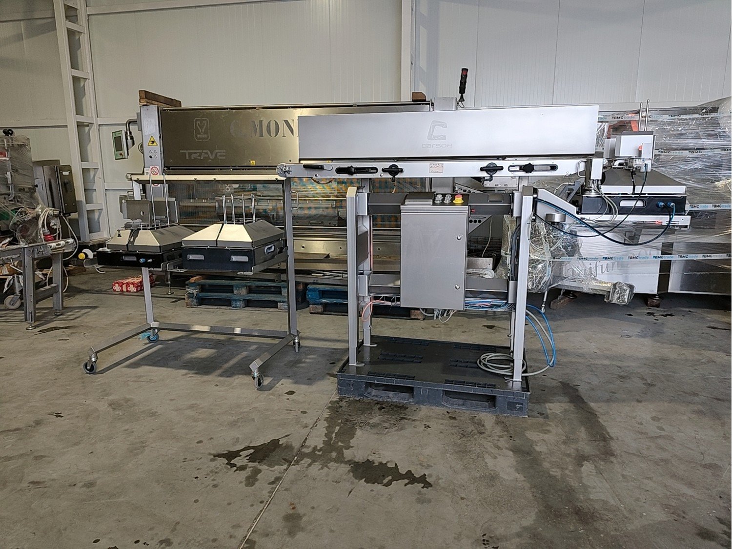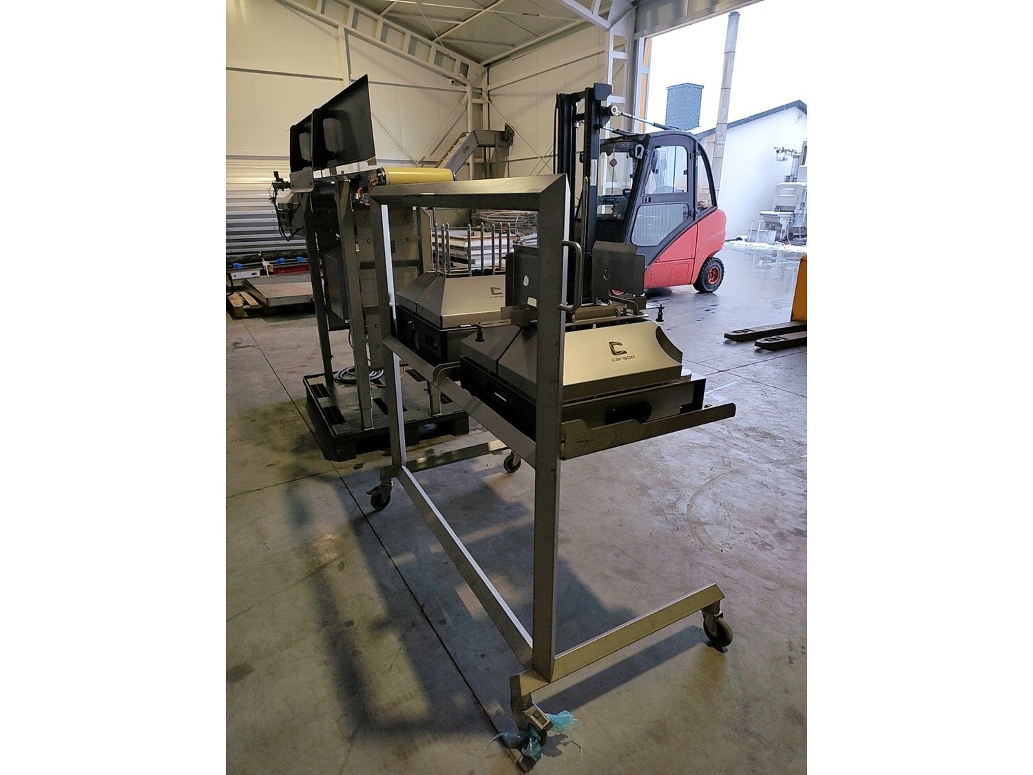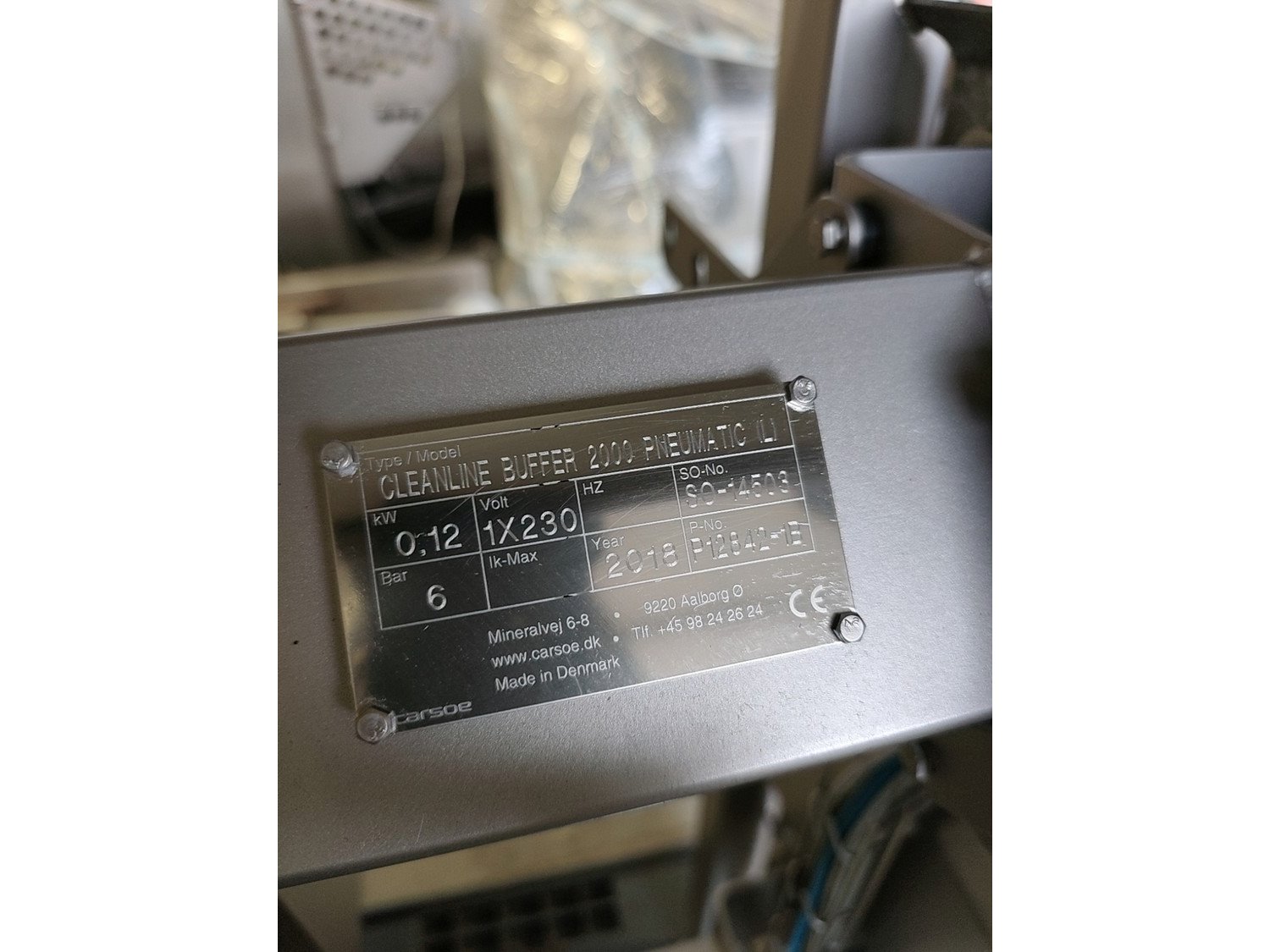 Carsoe denesting line consisting of: Carsoe buffer, type: CLEANLINE BUFFER 2000 PNEUMATIC (L), serial number: SO-14503, year of construction: 2018, P-No. P12842-1B 230 V, 1Ph, 0,12kW, 6 bar, dimensions: 2500 mm x 700 mm x 1700 mm. Carsoe denester, type: ANYTRAY CL FLATSKIN EL DENESTER, serial number: SO14503, P-No.: P13428-4, year of construction: 2018, dimensions: 1500 mm x 800 mm x 1400 mm.
