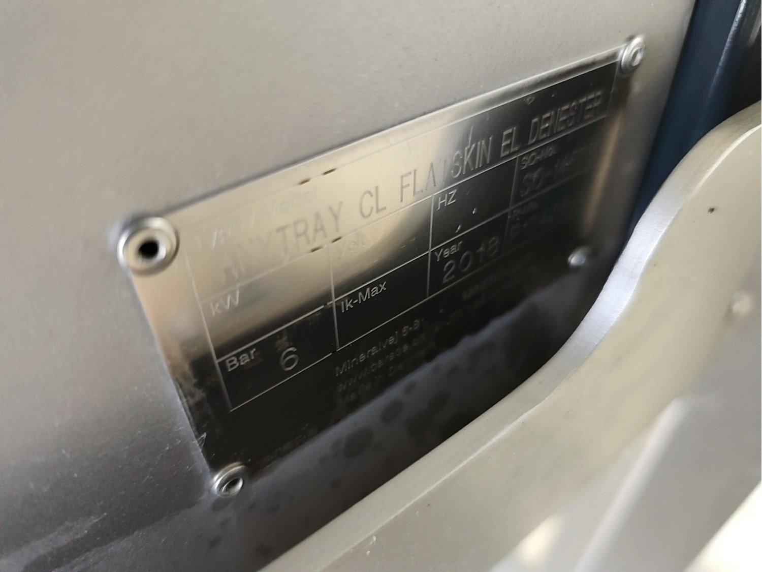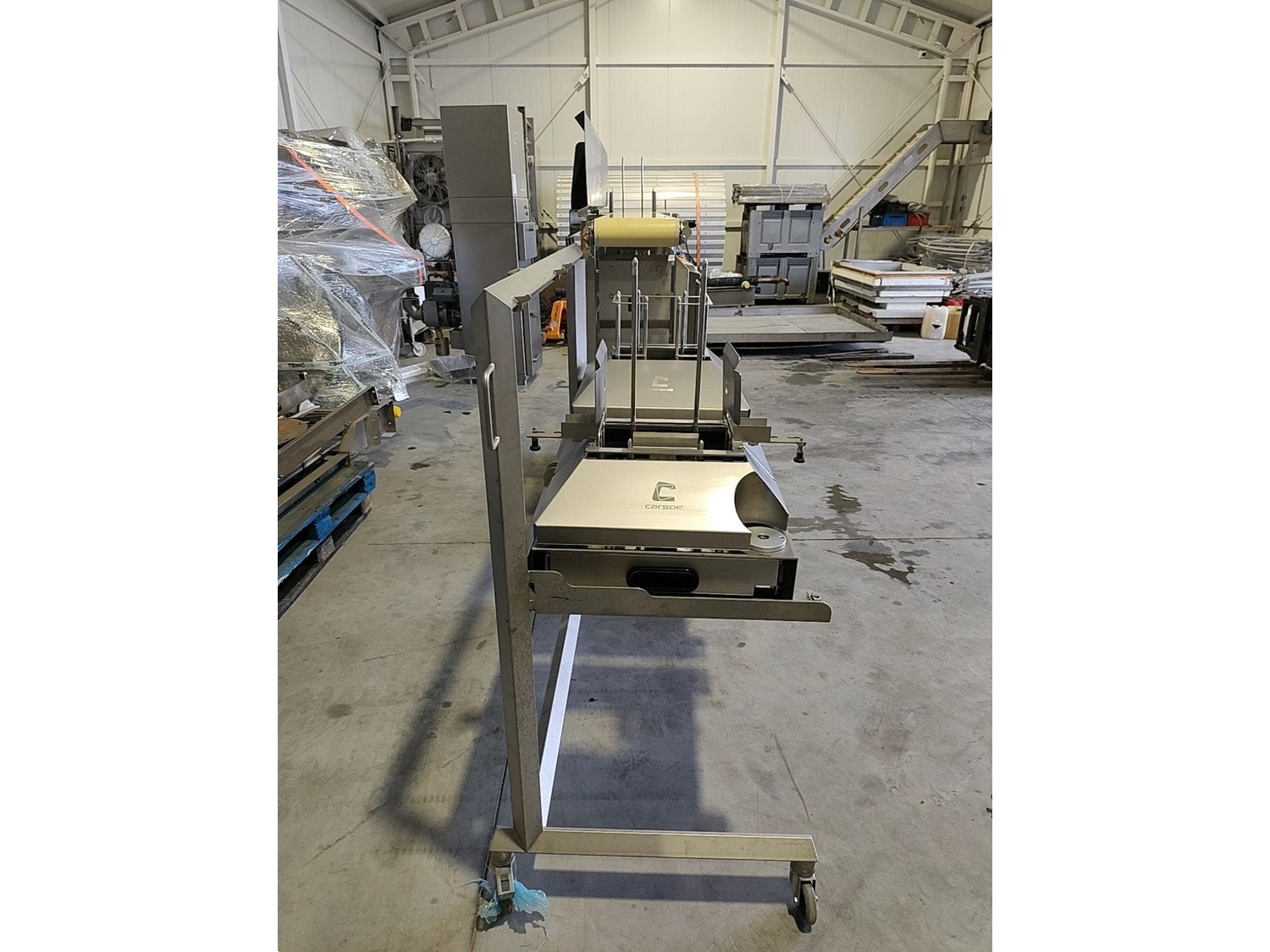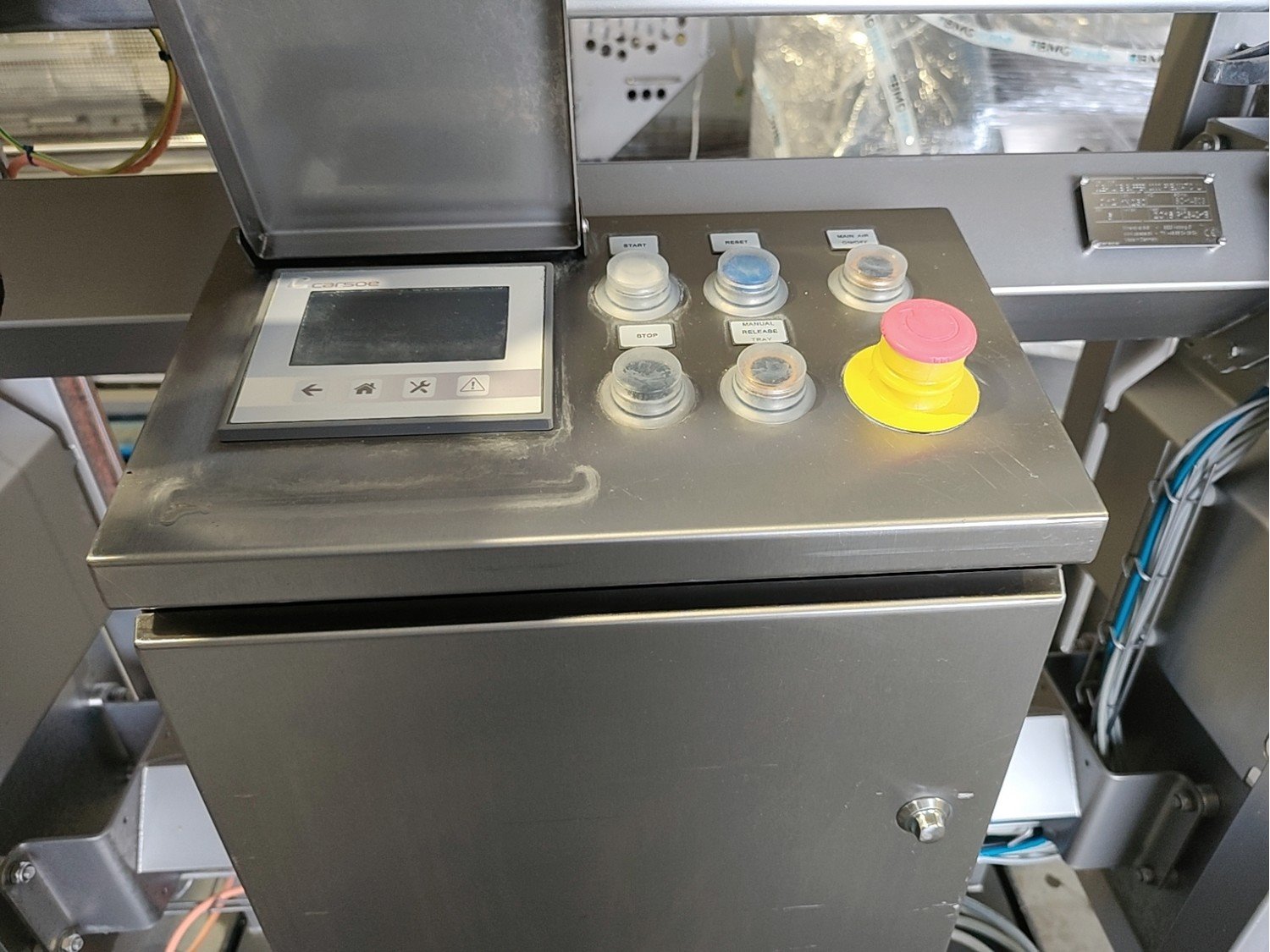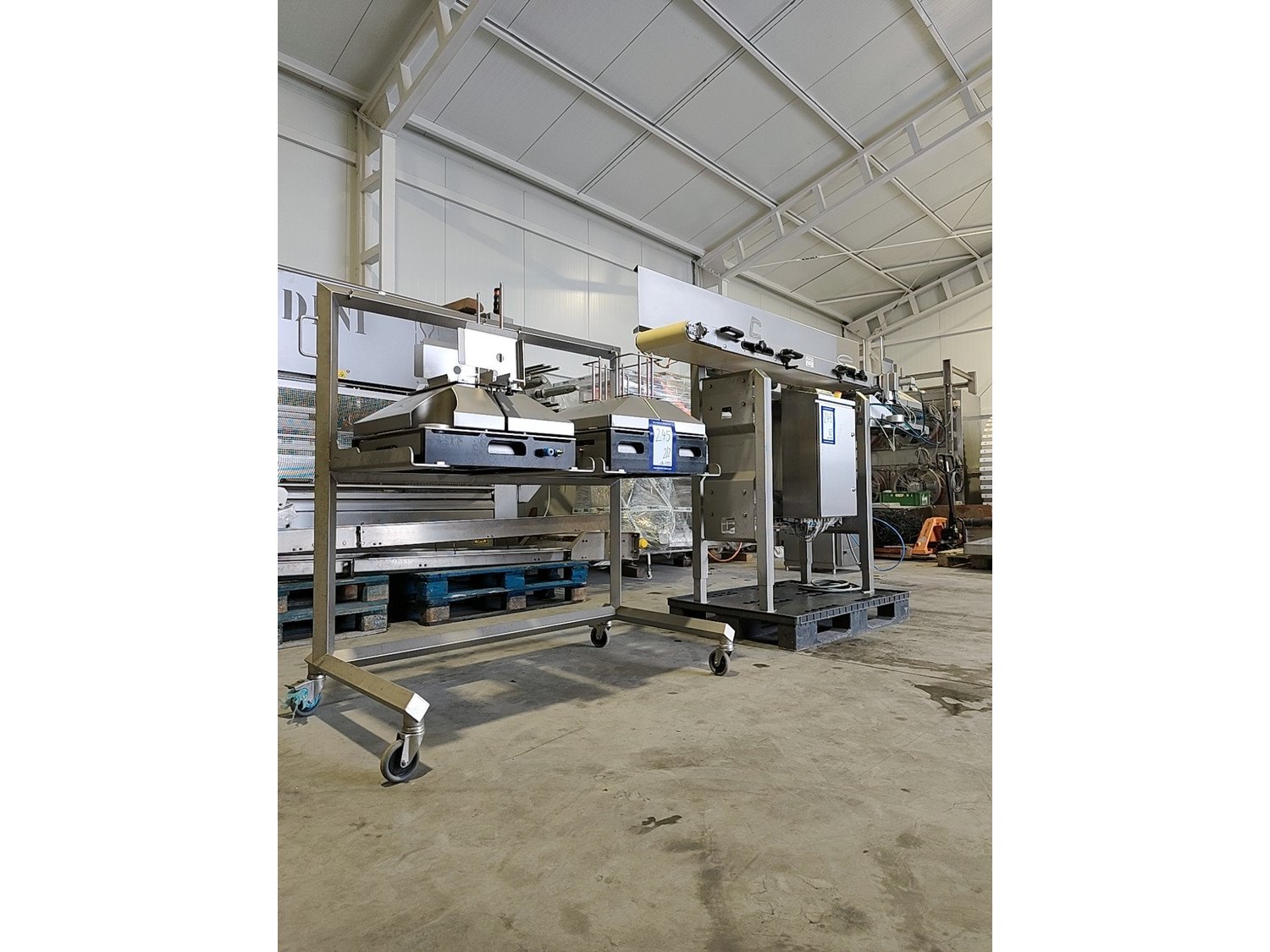 Carsoe denesting line consisting of: Carsoe buffer, type: CLEANLINE BUFFER 2000 PNEUMATIC (L), serial number: SO-14503, year of construction: 2018, P-No. P12842-1B 230 V, 1Ph, 0,12kW, 6 bar, dimensions: 2500 mm x 700 mm x 1700 mm. Carsoe denester, type: ANYTRAY CL FLATSKIN EL DENESTER, serial number: SO14503, P-No.: P13428-4, year of construction: 2018, dimensions: 1500 mm x 800 mm x 1400 mm.