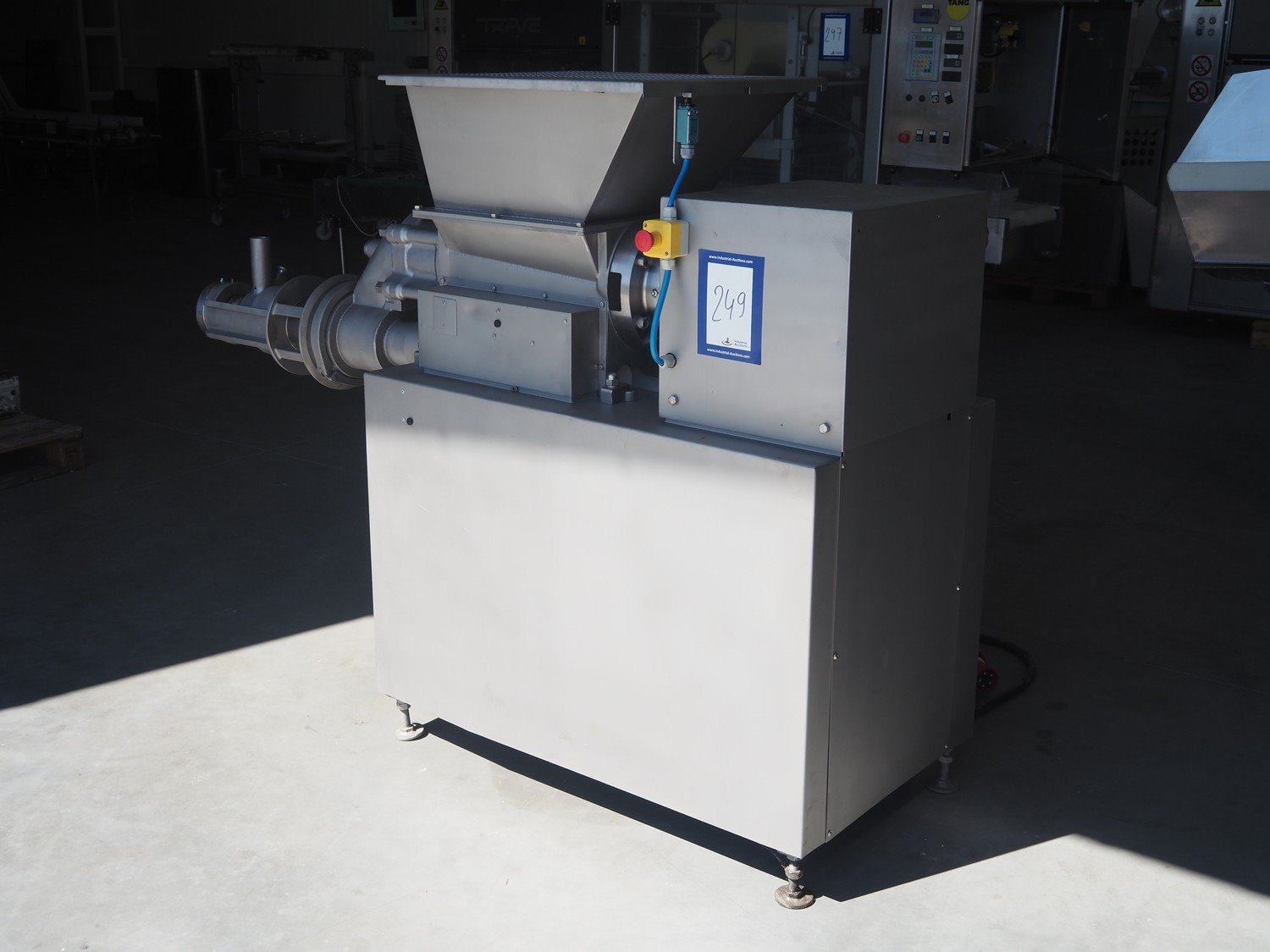 Provisur Technologies beehive separator, number: 41213, s/s worms, dimensions hopper: 650 mm x 500 mm x 300 mm, diameter drum perforations: 1 mm & 2 mm, total dimensions: 2020 mm x 680 mm x 1520 mm. Revised.