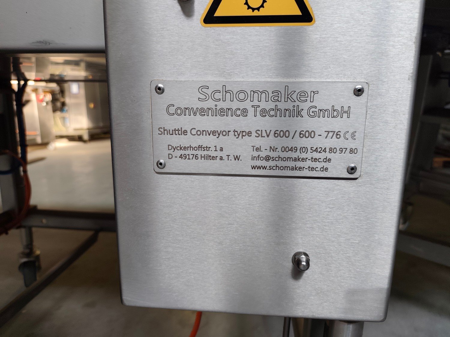 Schomaker Convenience Technik GmbH mobile shuttle conveyor, type: SLV 600 / 600 - 776, width range: 600 mm to 400 mm, s/s mesh belt, belt width: 600 mm, total dimensions: 2000 mm x 1100 mm x 1000 mm.
