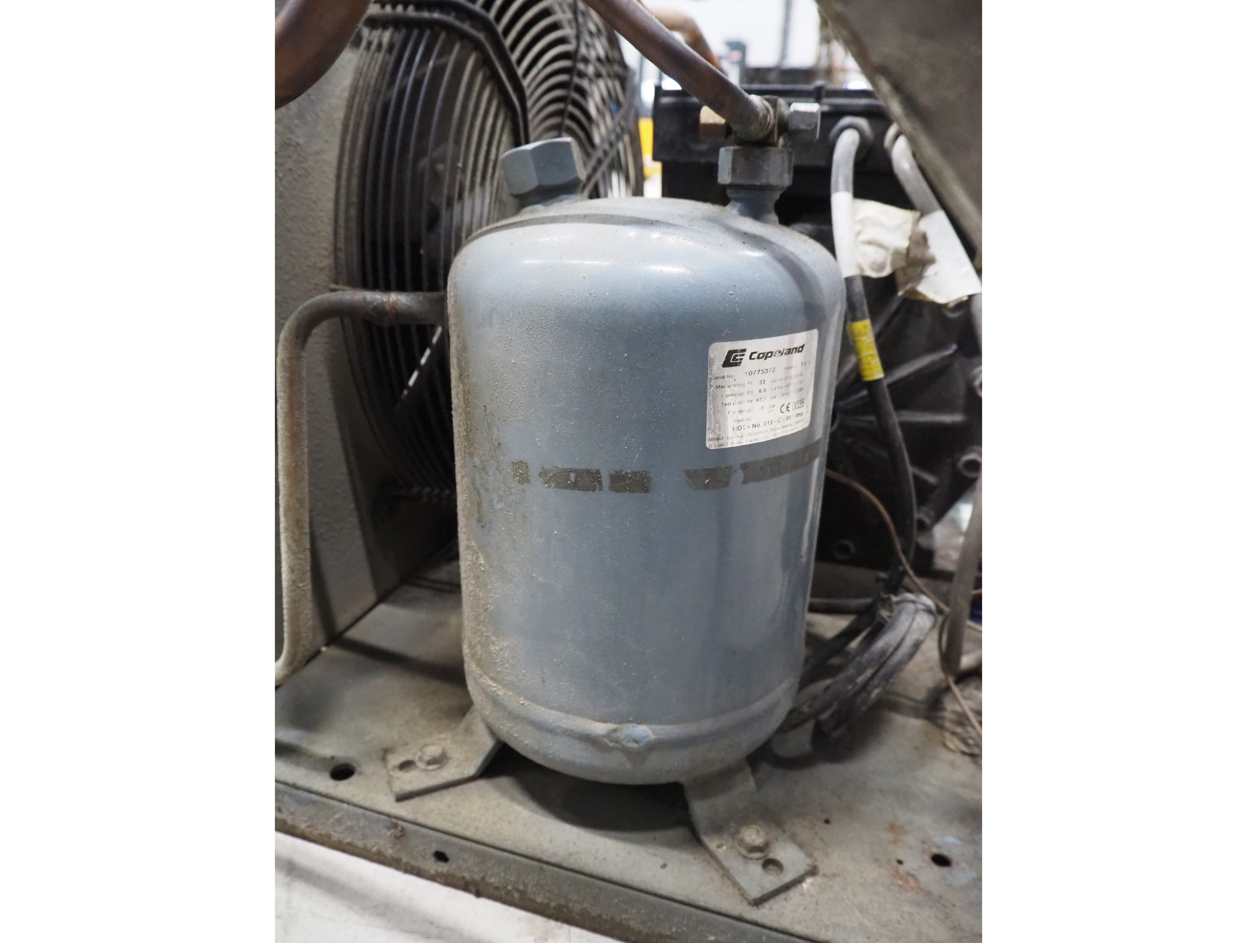 DWM Copeland cooling compressor, model: LLP-30X-EAL, serial number: 18F 005397 M, 220/240 V, 3 Ph, 50 Hz, 12.5 A, dimensions: 900 mm x 700 mm x 700 mm.