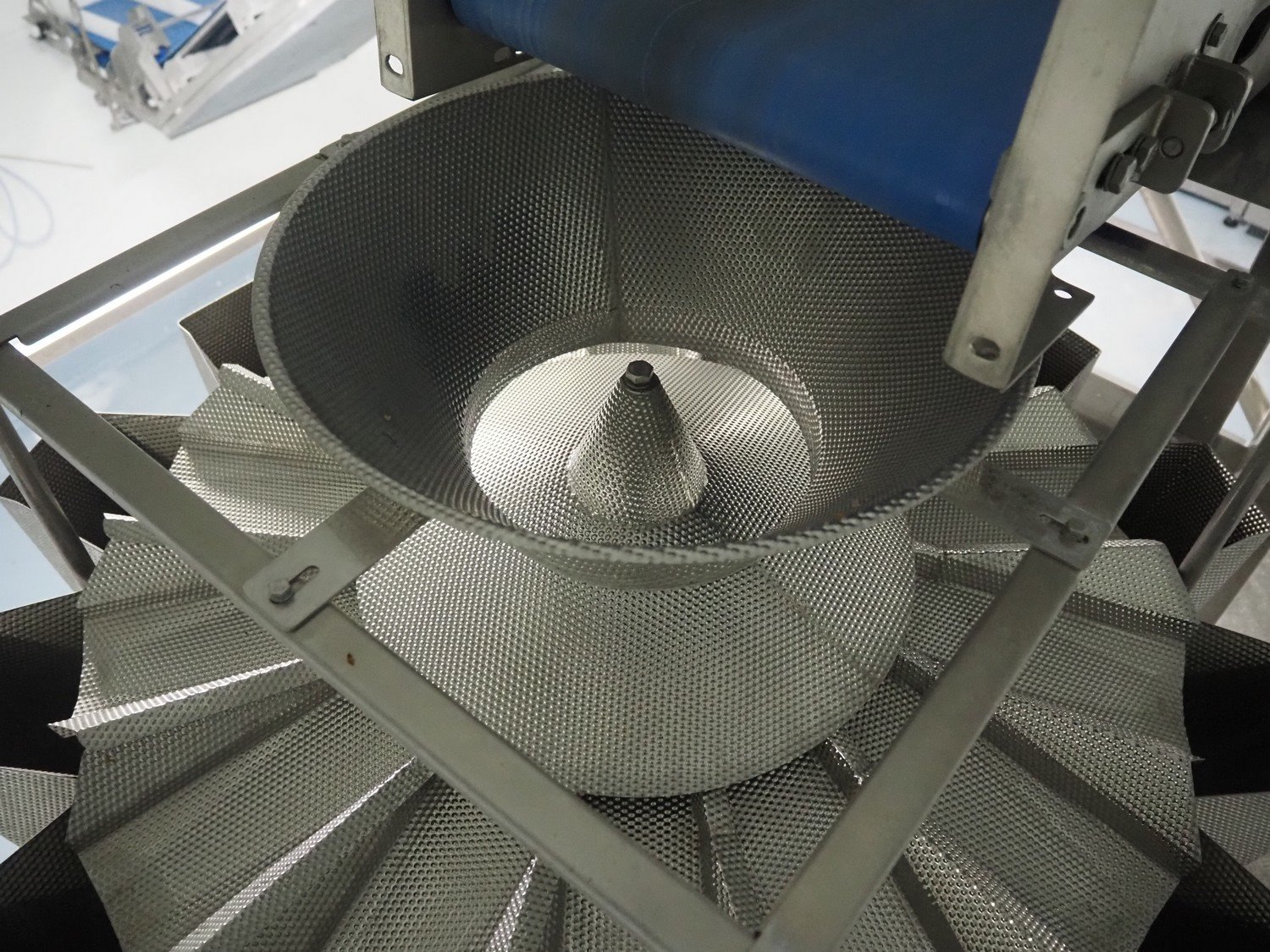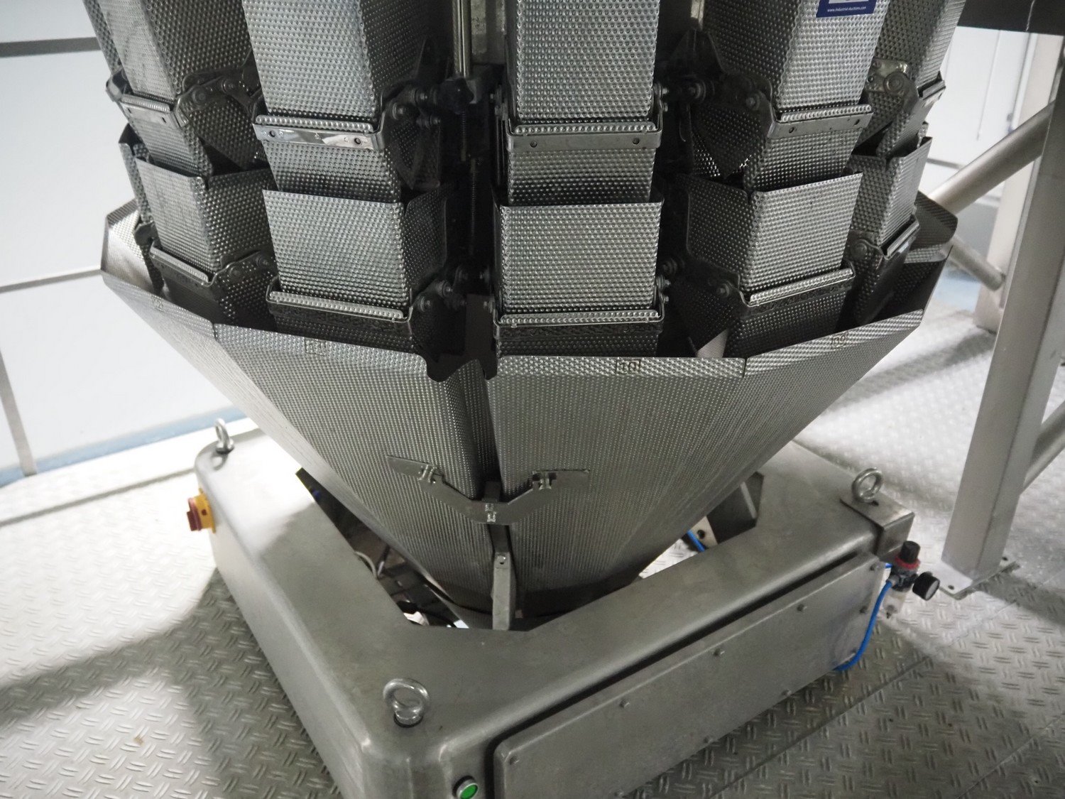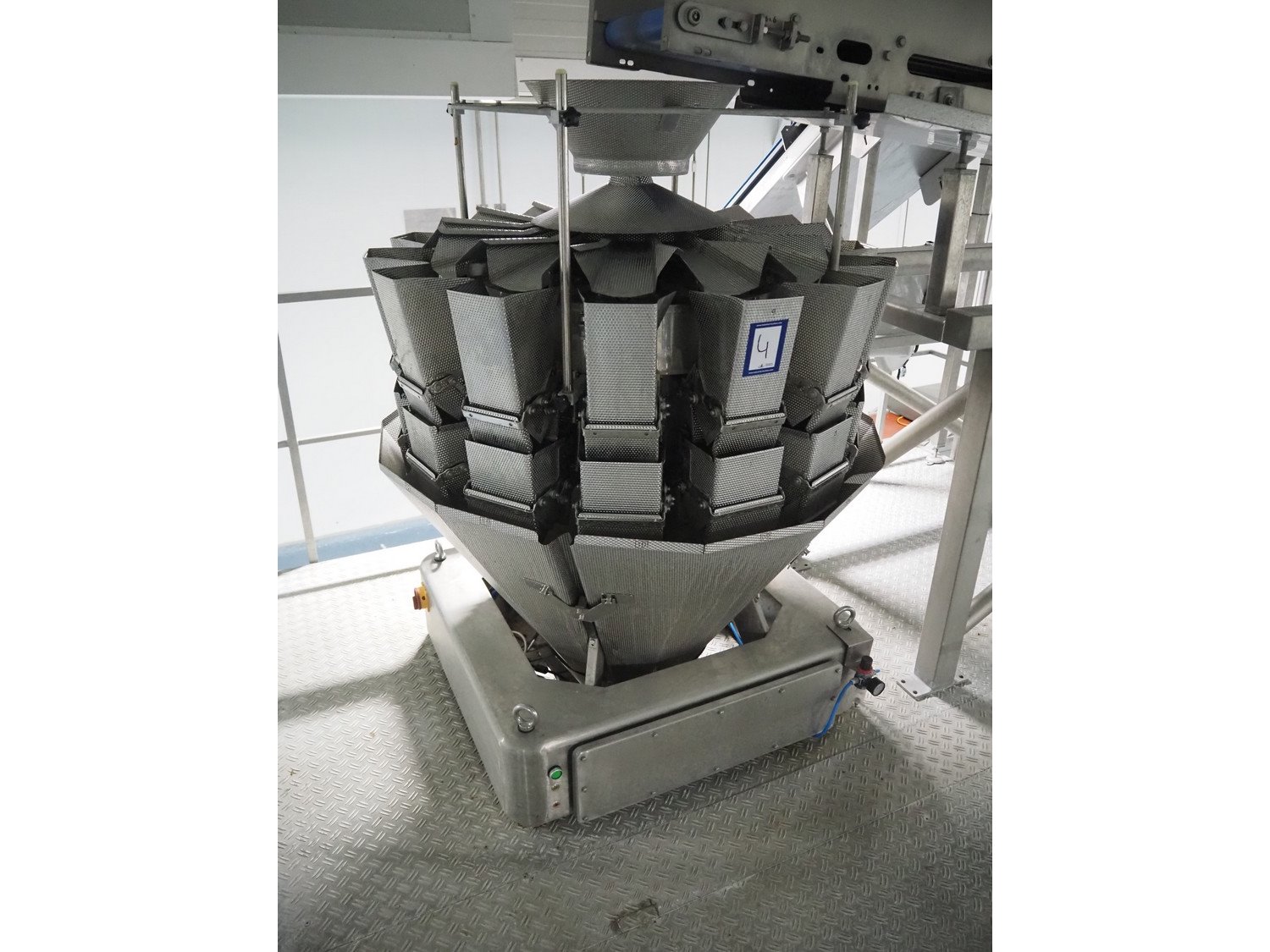 Combimat 14 heads multihead weigher, serial number: A142309033II, 220 V, 50 Hz, 10 A, 1.5 kW, dimensions: 1200 mm x 1200 mm x 1530 mm.