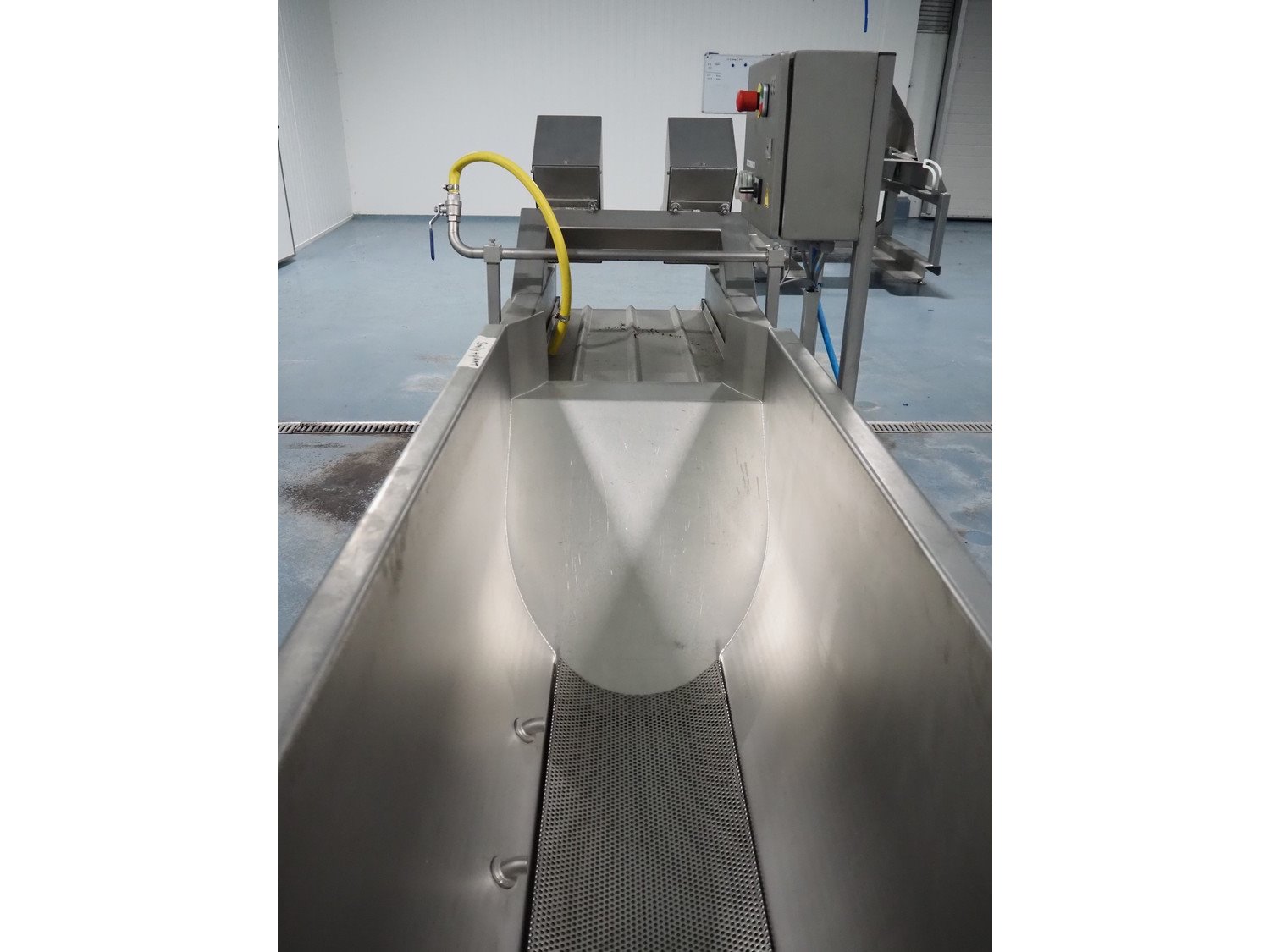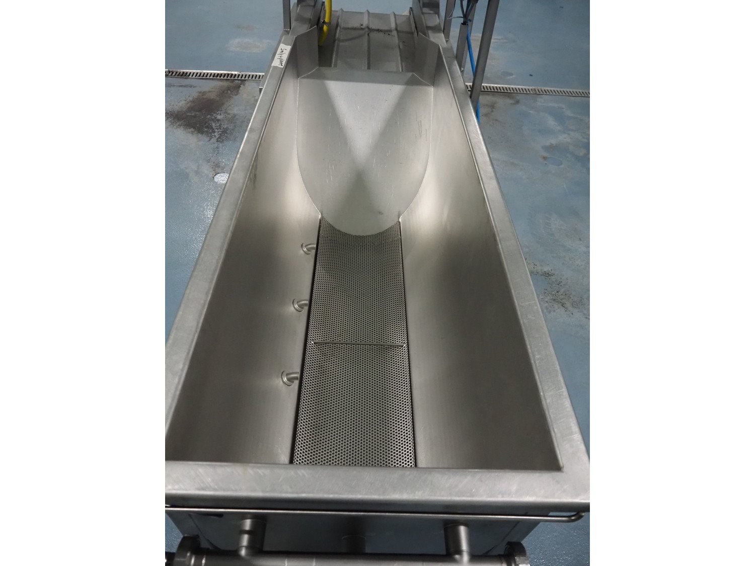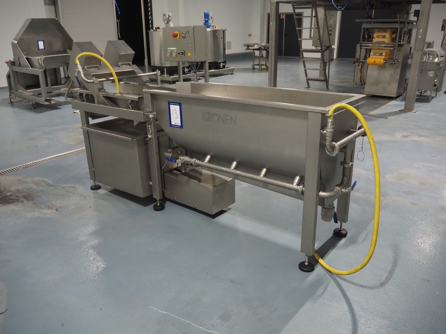 Kronen vegetable washer with vibrating gutter, tub dimensions: 1500 mm x 500 mm x 500 mm, gutter width: 480 mm, total dimensions: 2900 mm x 850 mm x 1500 mm.