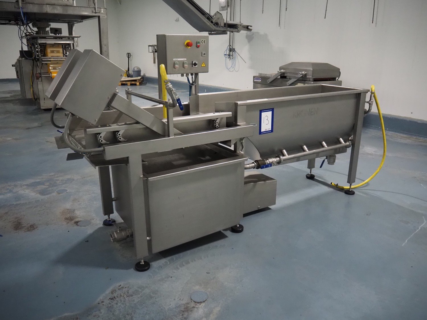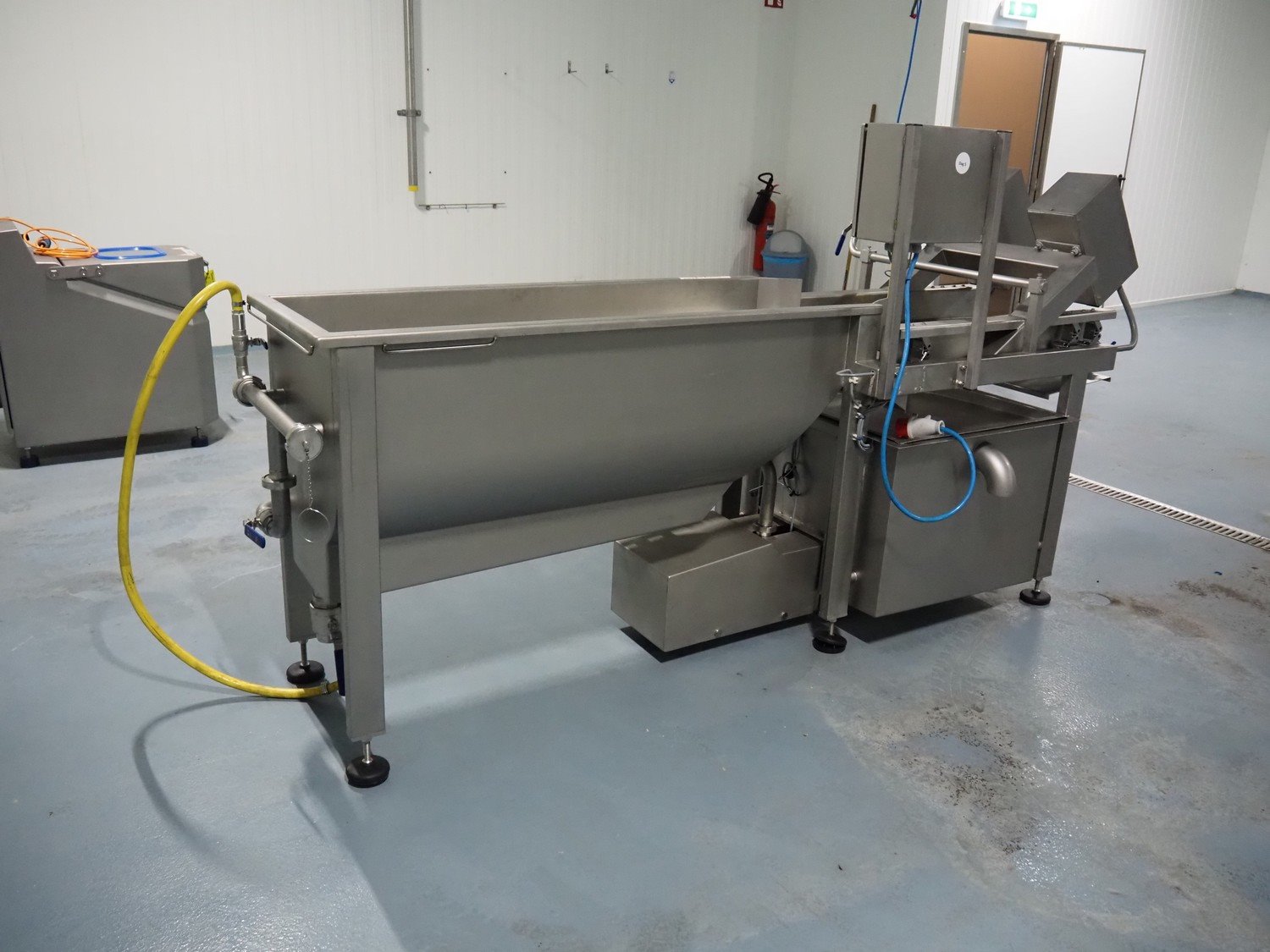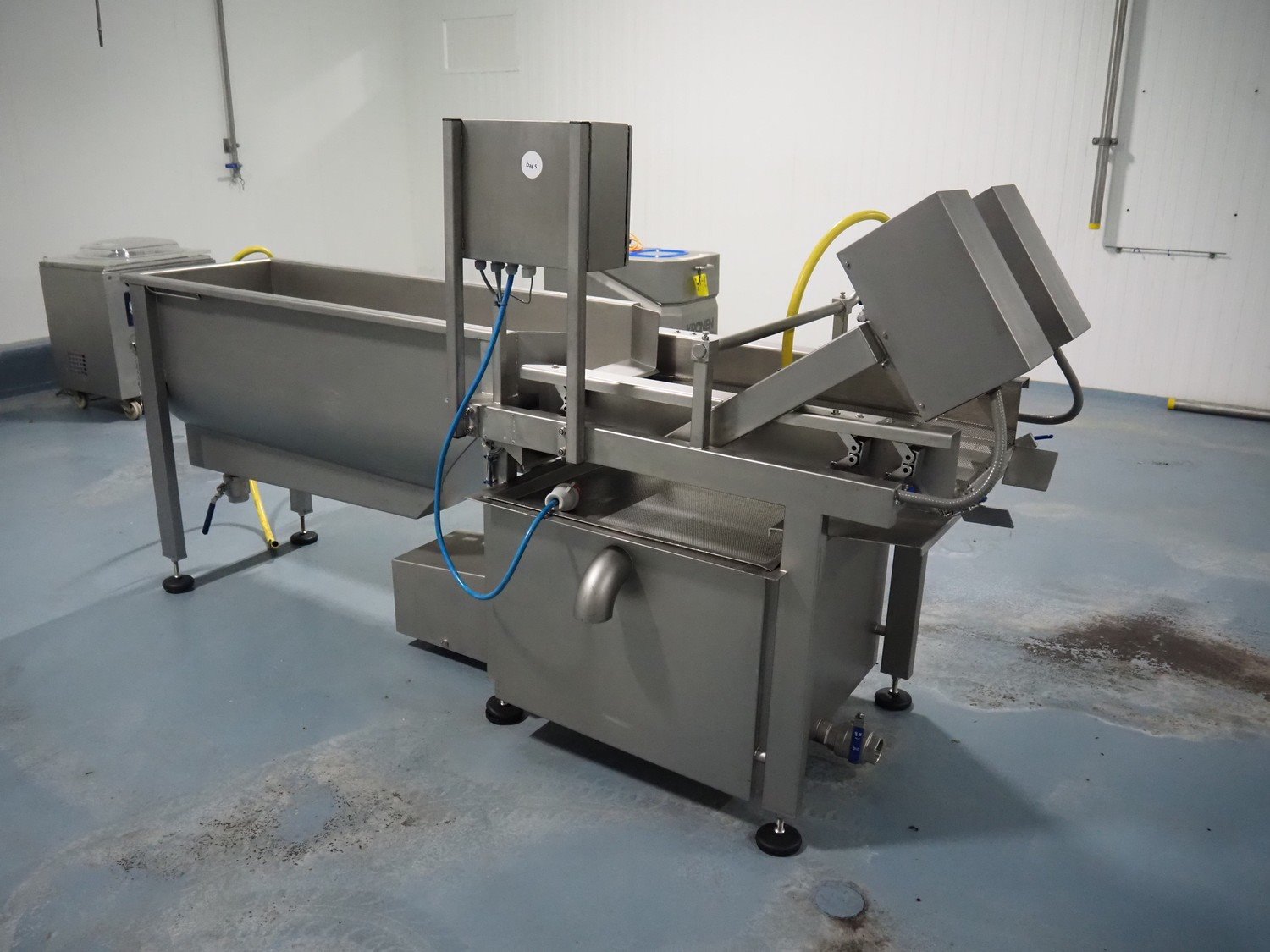 Kronen vegetable washer with vibrating gutter, tub dimensions: 1500 mm x 500 mm x 500 mm, gutter width: 480 mm, total dimensions: 2900 mm x 850 mm x 1500 mm.