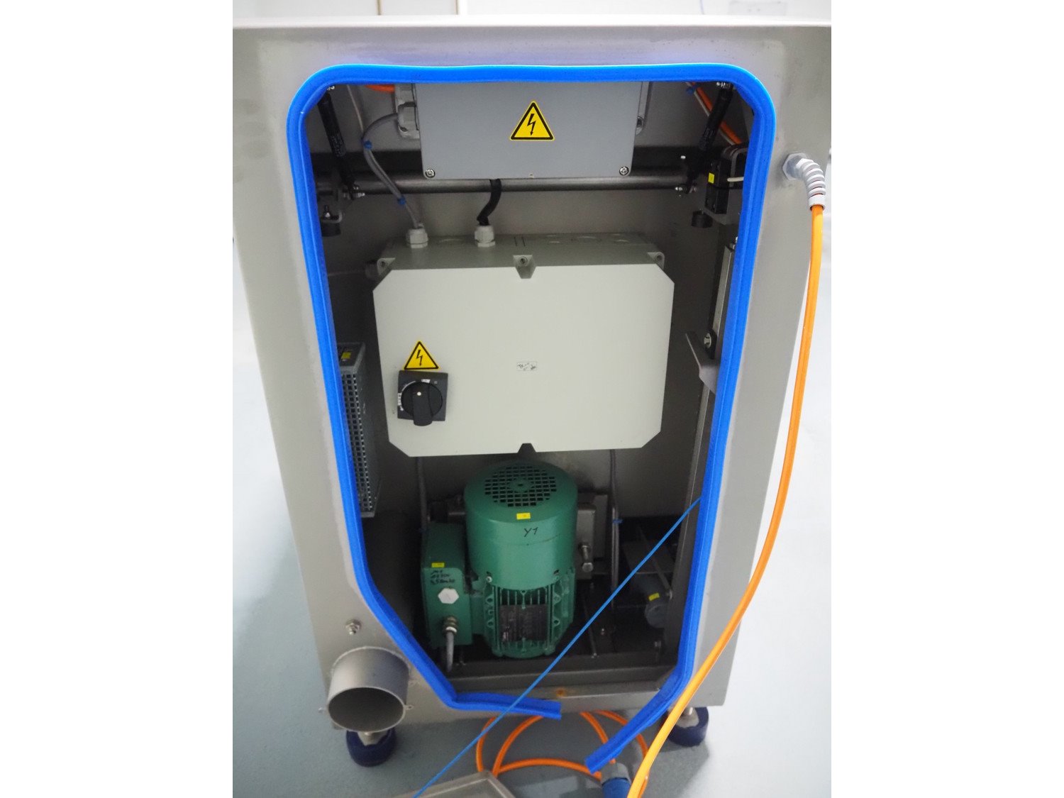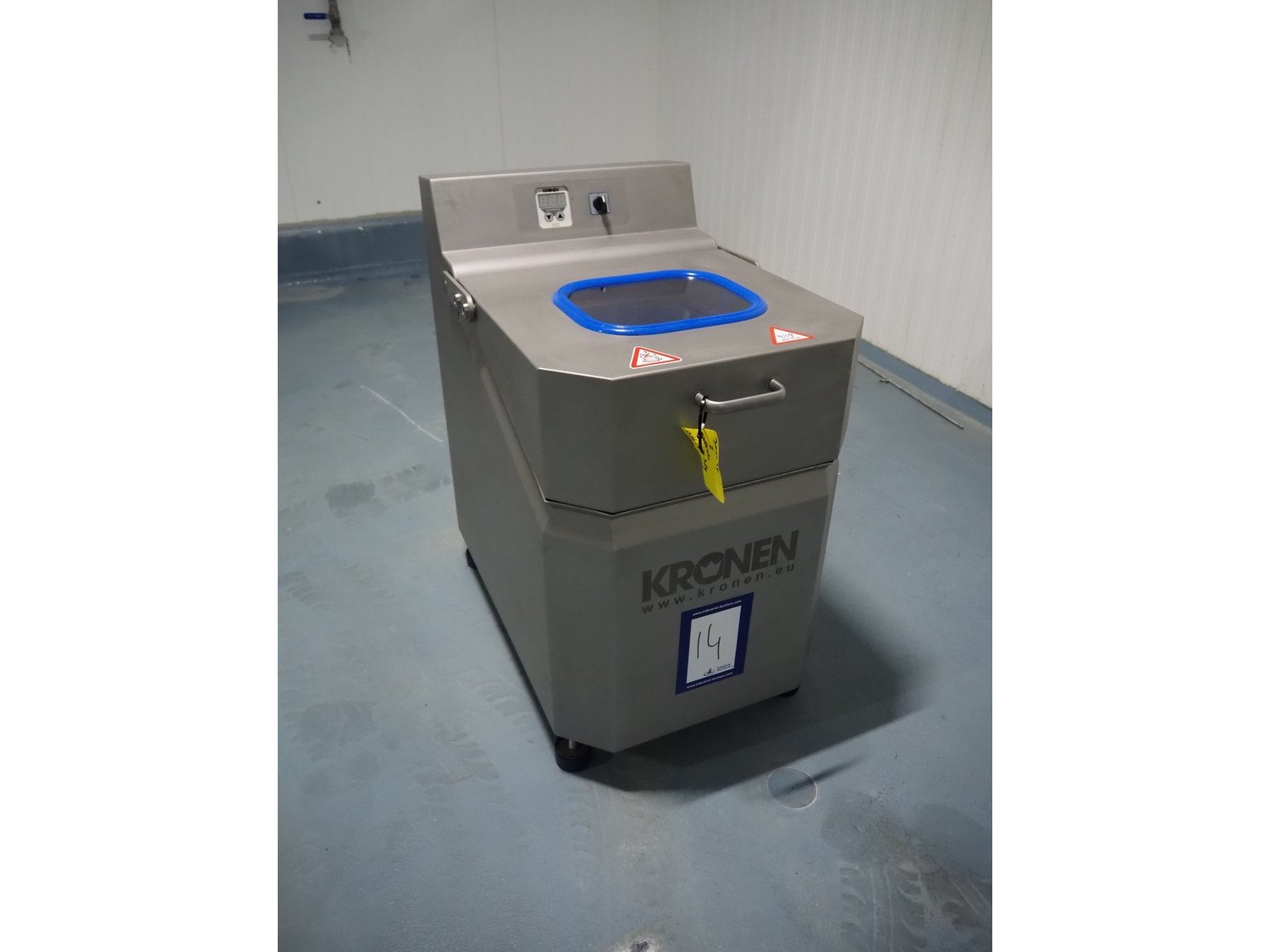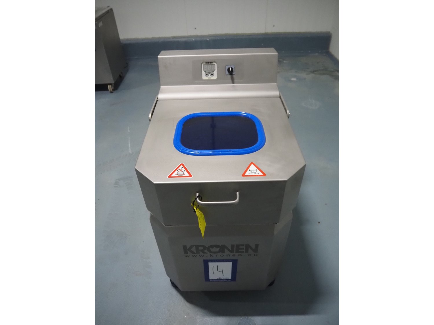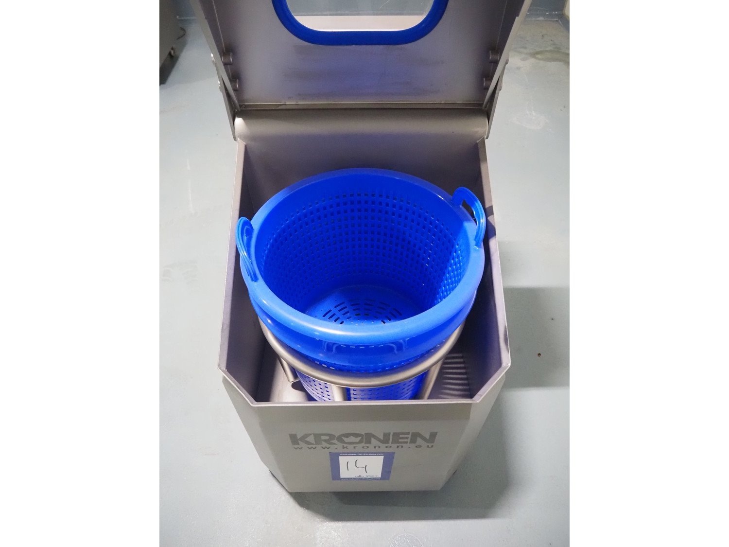 Kronen lettuce and vegetable spinner, type: KS-100 PLUS, serial number: 396, year of construction: 2021, 230 V, 1 Ph, 50/60 Hz, 0.8 kW, maximum capacity: 10 kg, inside dimensions: Ø 420 mm x 360 mm, total dimensions: 950 mm x 600 mm x 1000 mm.