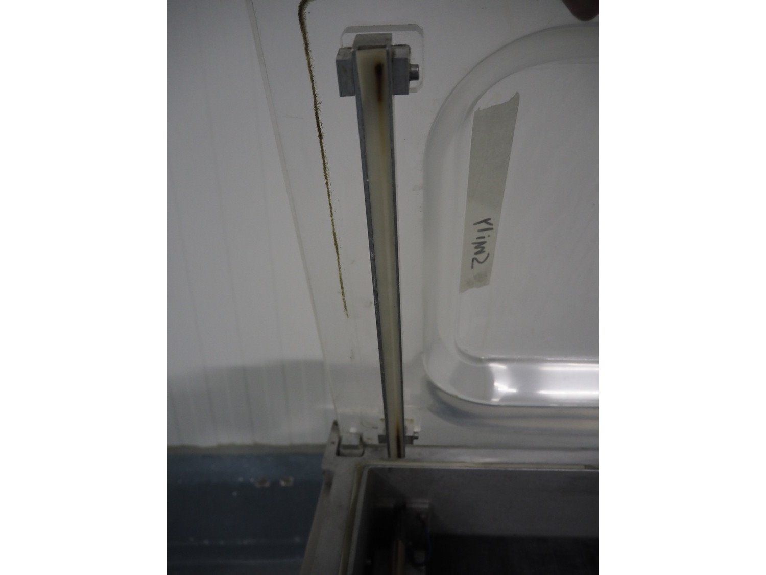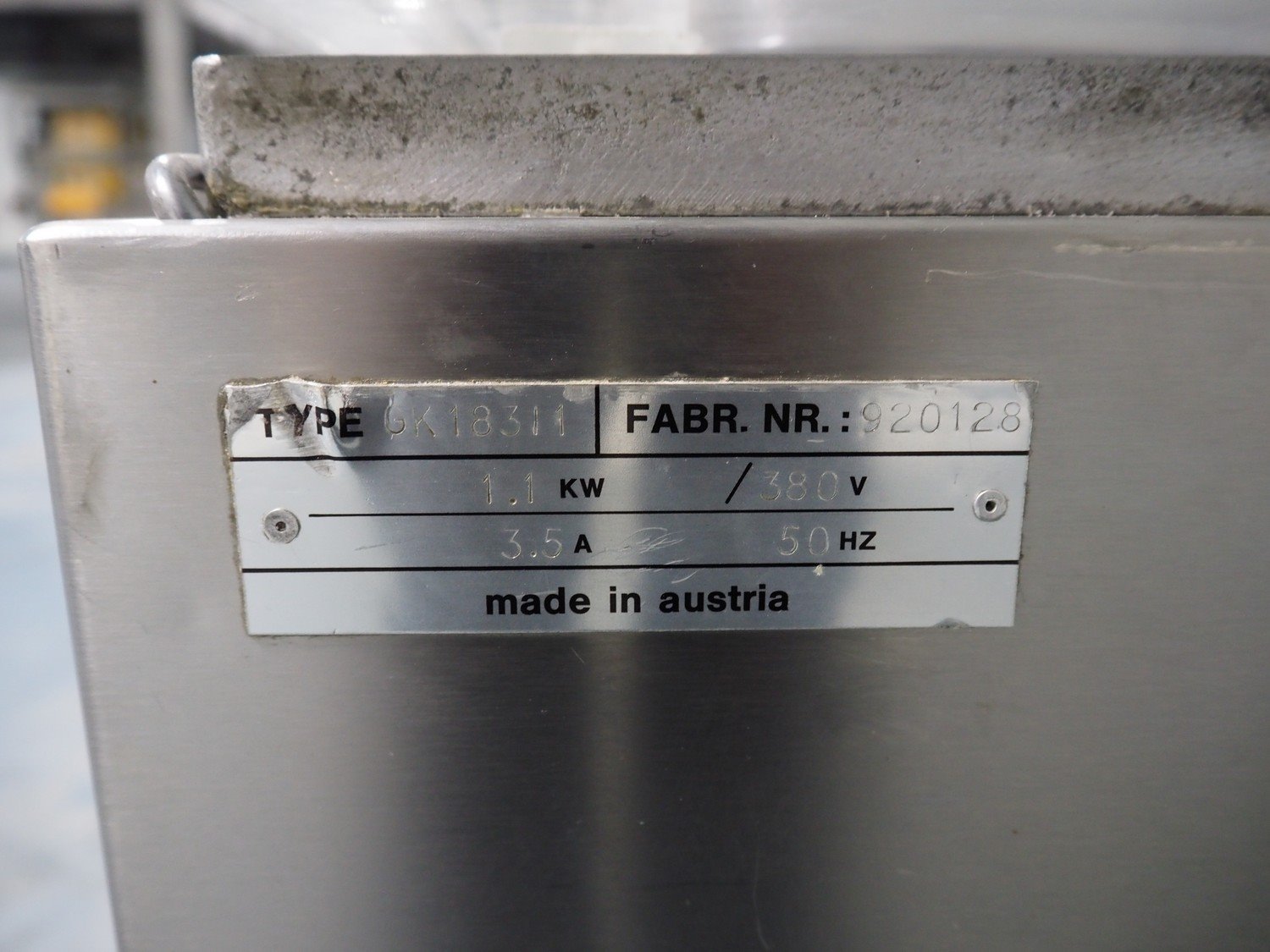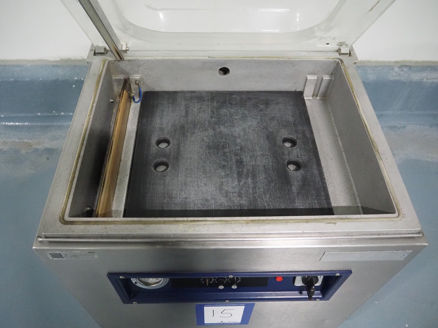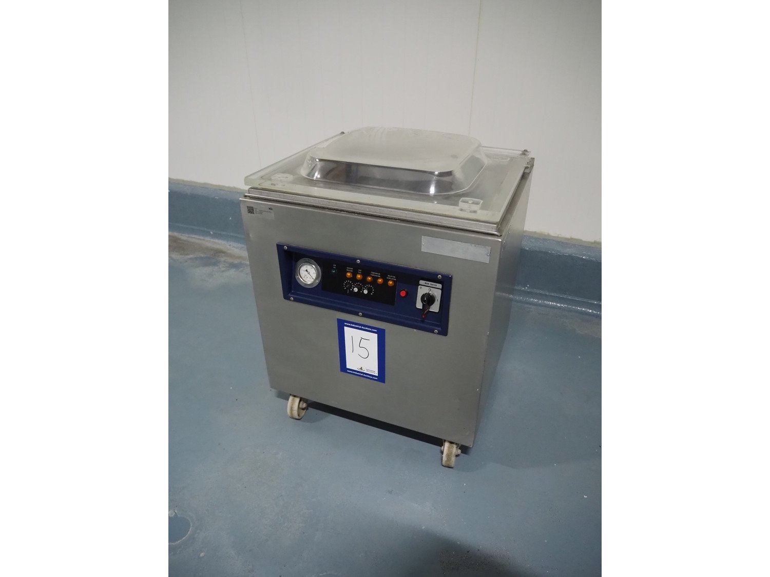 Supervac mobile vacuum machine, type: GK18311, factory number: 920128, 380 V, 50 Hz, 3.5 A, 1.1 kW, seal width: 440 mm, chamber: 540 mm x 460 mm, Rietschle vacuum pump, type: VCA 40 (01), capacity: 40 m³ per hour, total dimensions: 700 mm x 600 mm x 950 mm.