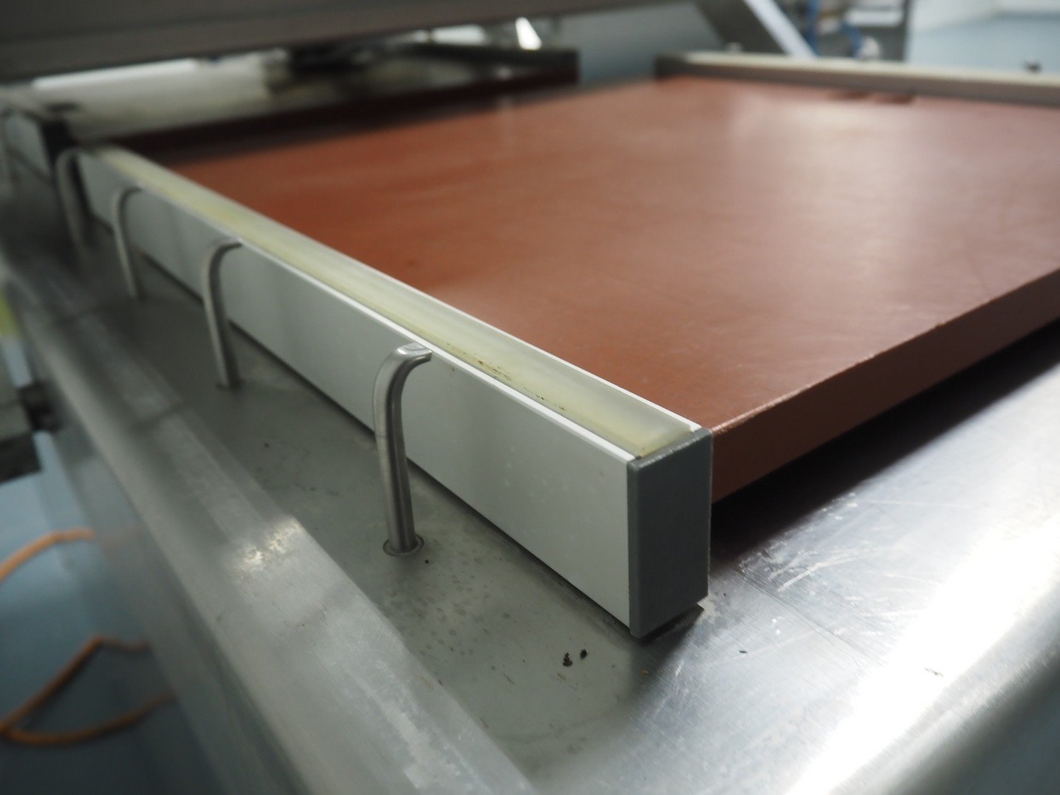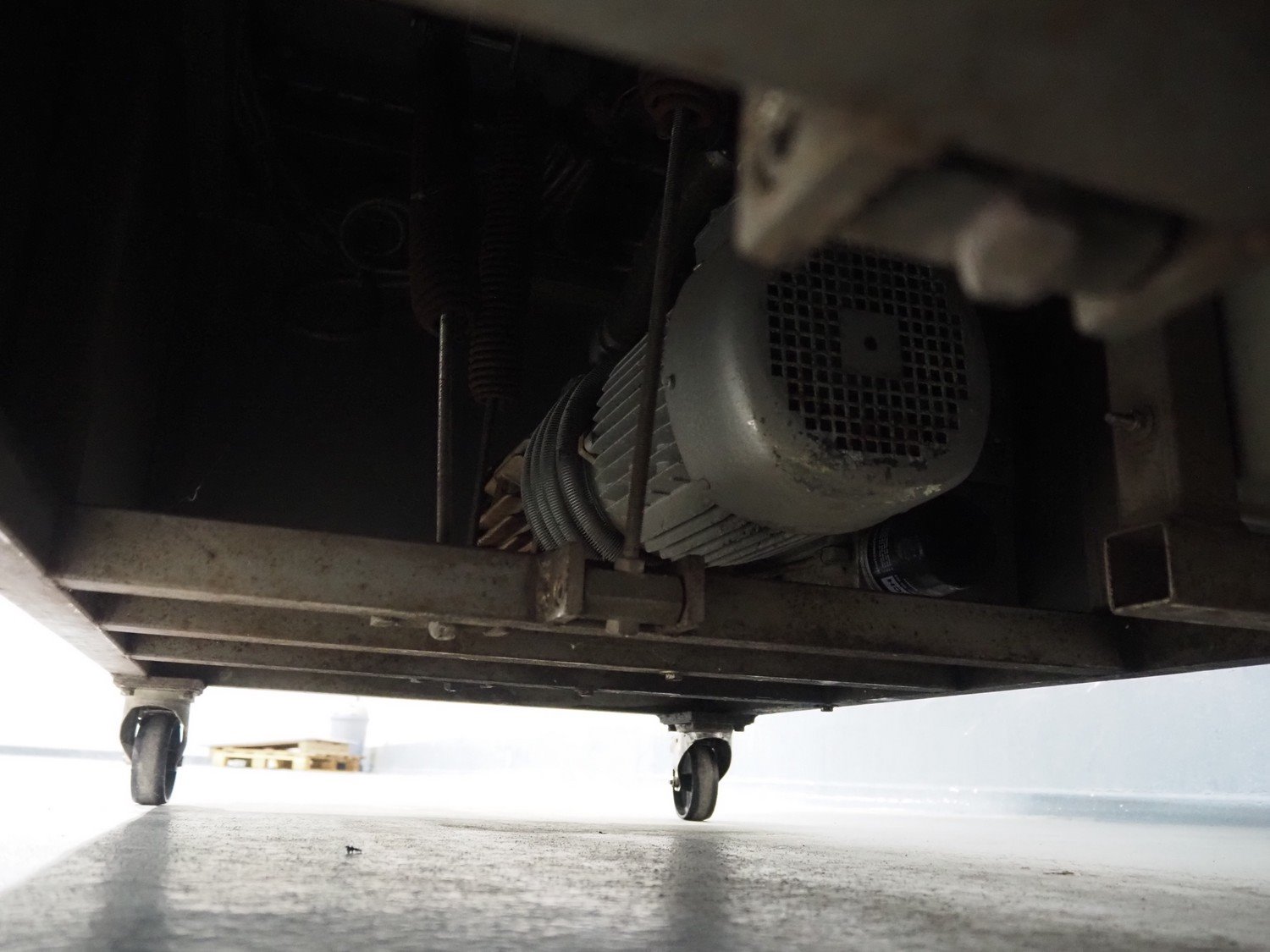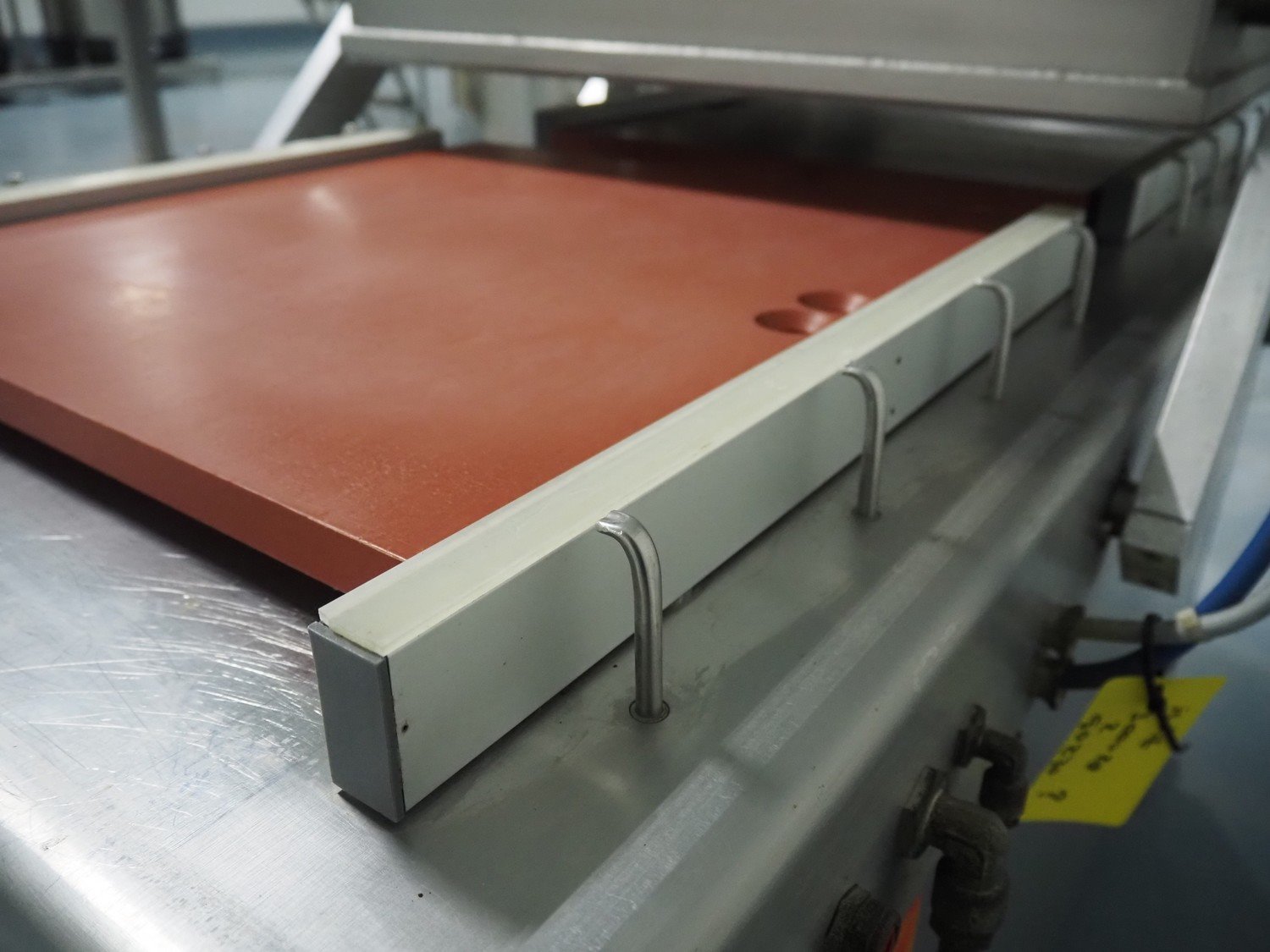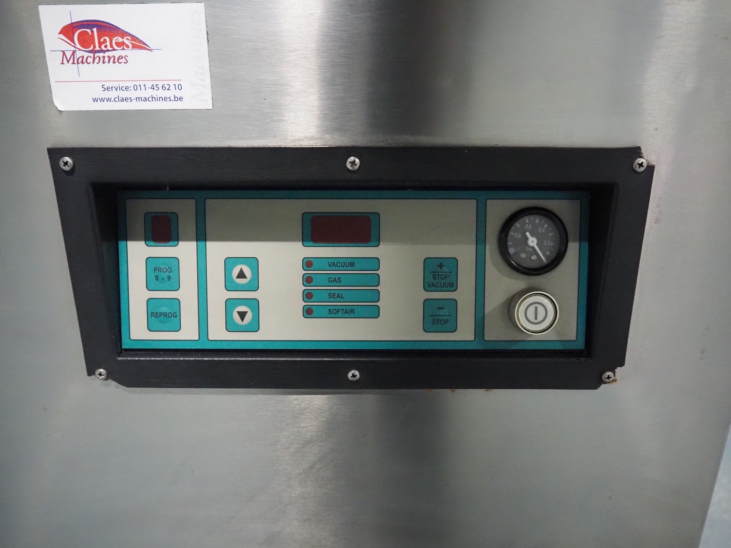 Henkelman mobile double chamber vacuum machine, type: 600, number: 60101004, year of construction: 2001, 400 V, 3 Ph, 50 Hz, 12 A, 2.7 kW, seal width: (4x) 600 mm, chamber: (2x) 630 mm x 570 mm, total dimensions: 1550 mm x 950 mm x 1200 mm.
