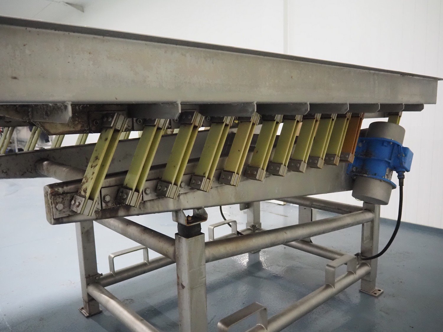 S/s vibrating gutter, 2 lanes, gutter width: (2x) 770 mm, total dimensions: 2400 mm x 1630 mm x 1340 mm.