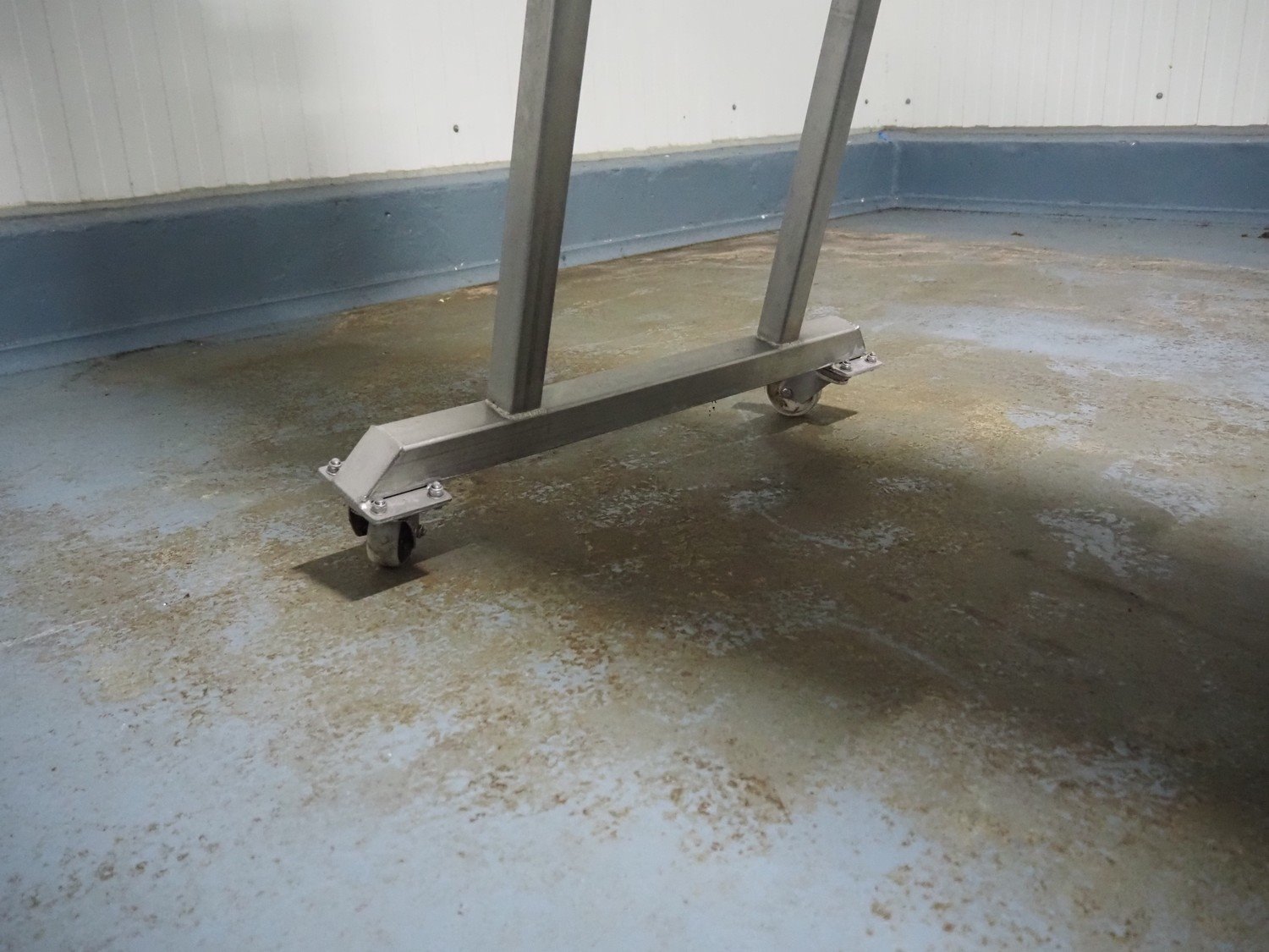 Transport belt, s/s frame, plastic belt, belt width: 305 mm, total dimensions: 5700 mm x 600 mm x 1700 mm.