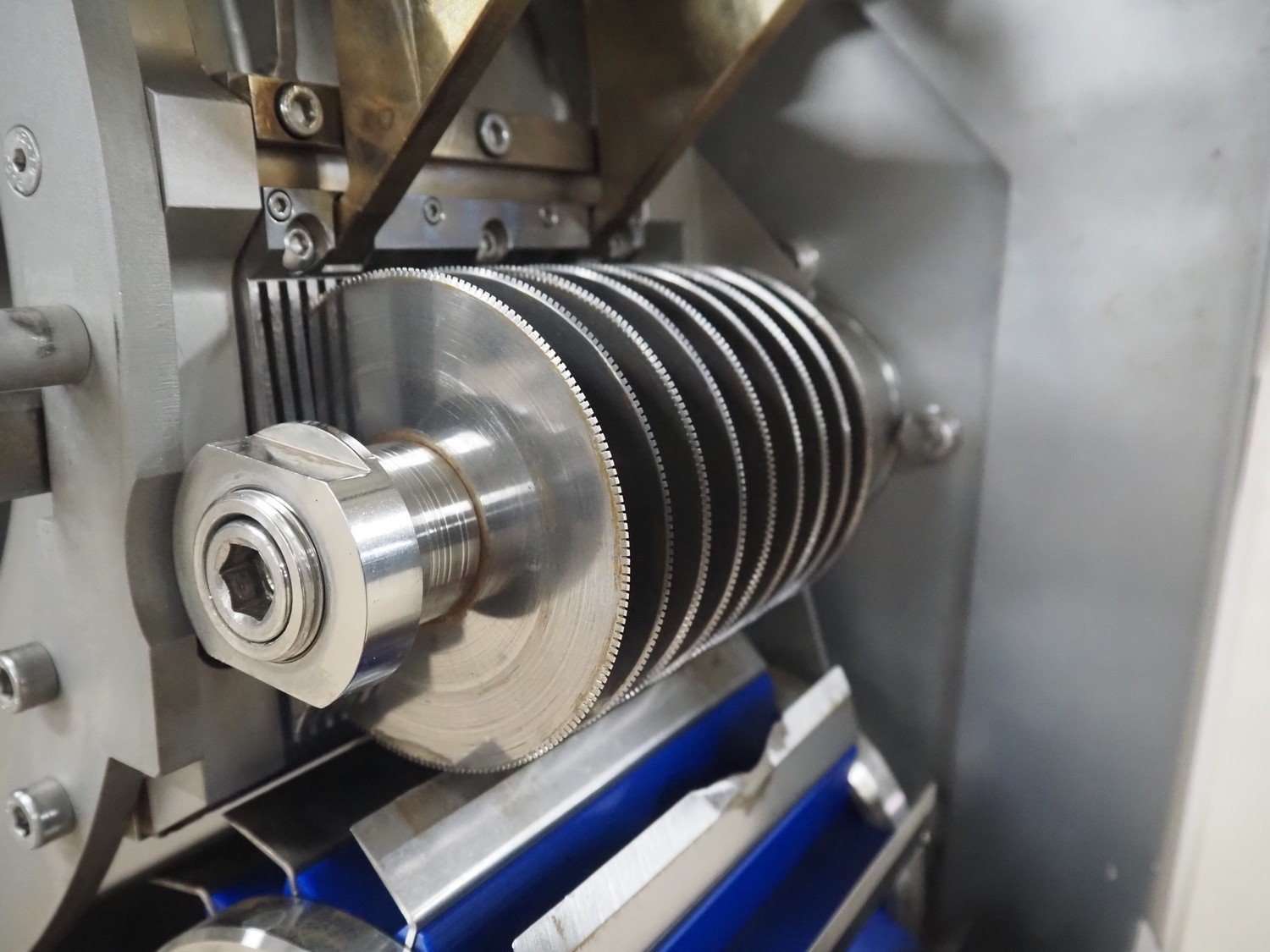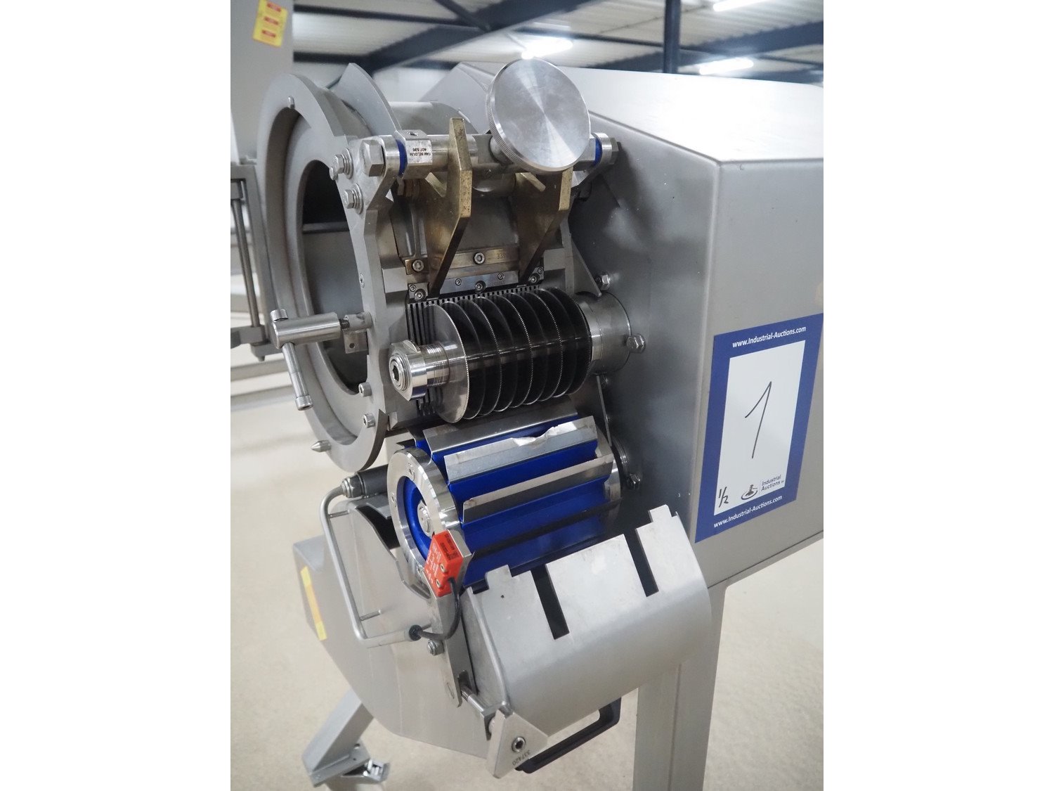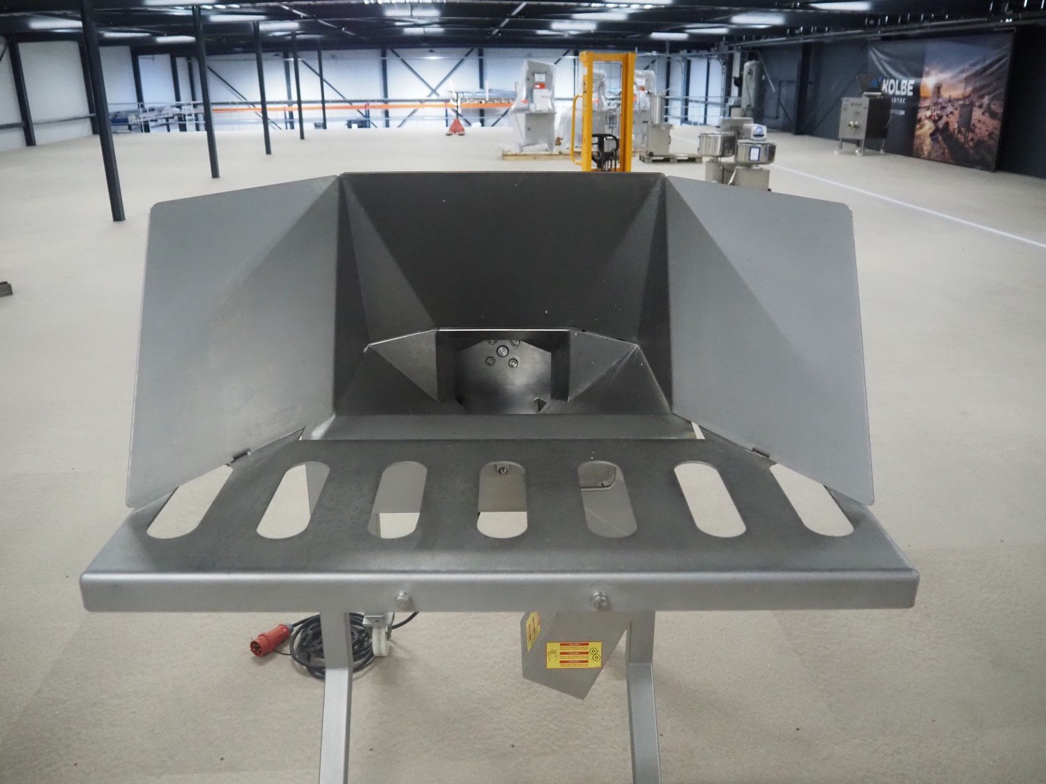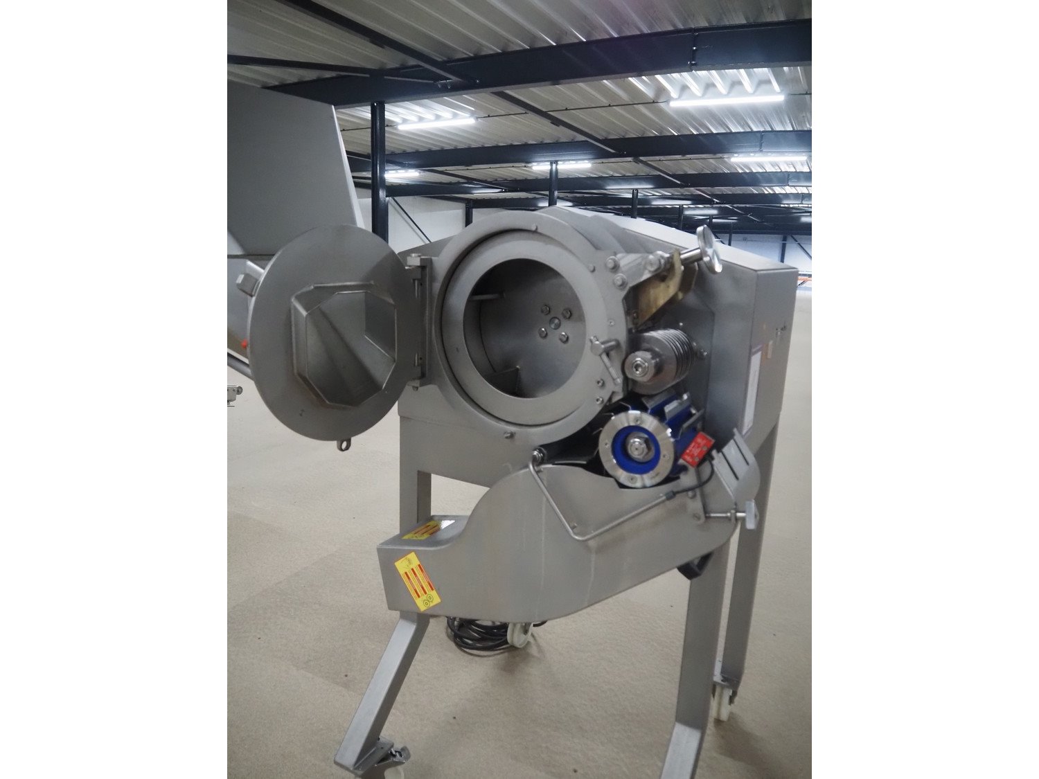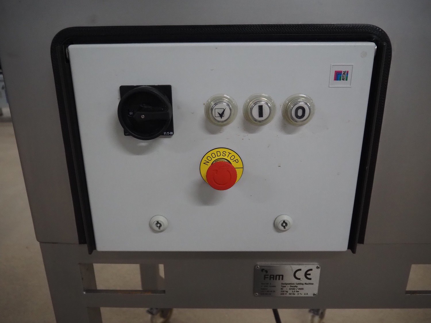 FAM mobile vegetable dicer, type: Dorphy, number: 12162, year of construction: 2020, 400 V, 3 Ph, 50 Hz, 4 A, 1.5 kW, working width: 120 mm, distance between knives: 15 mm, total dimensions: 1770 mm x 800 mm x 1650 mm. Including toolbox.