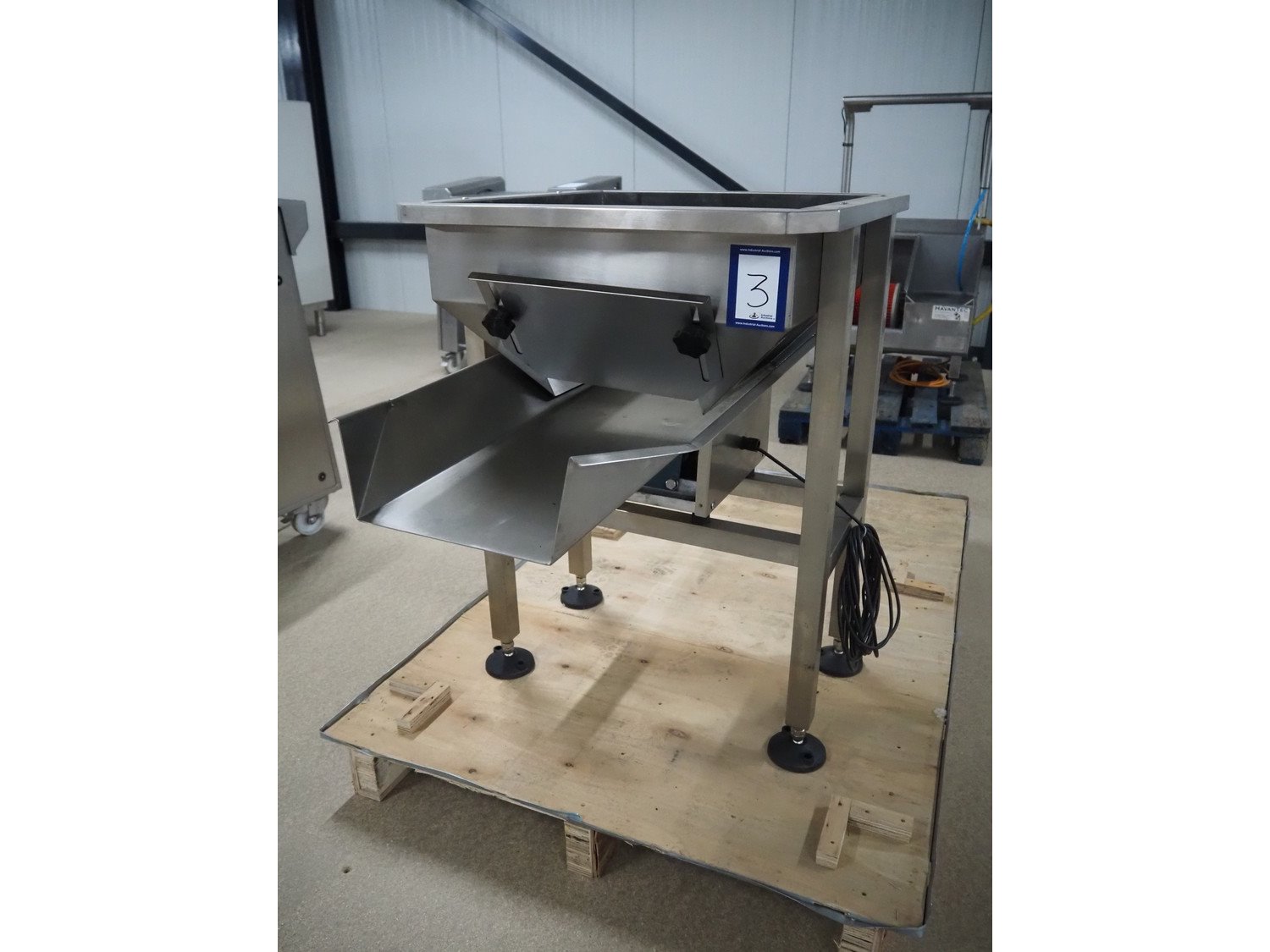 S/s vibrating gutter, gutter width: 260 mm, total dimensions: 3650 mm x 600 mm x 1650 mm.