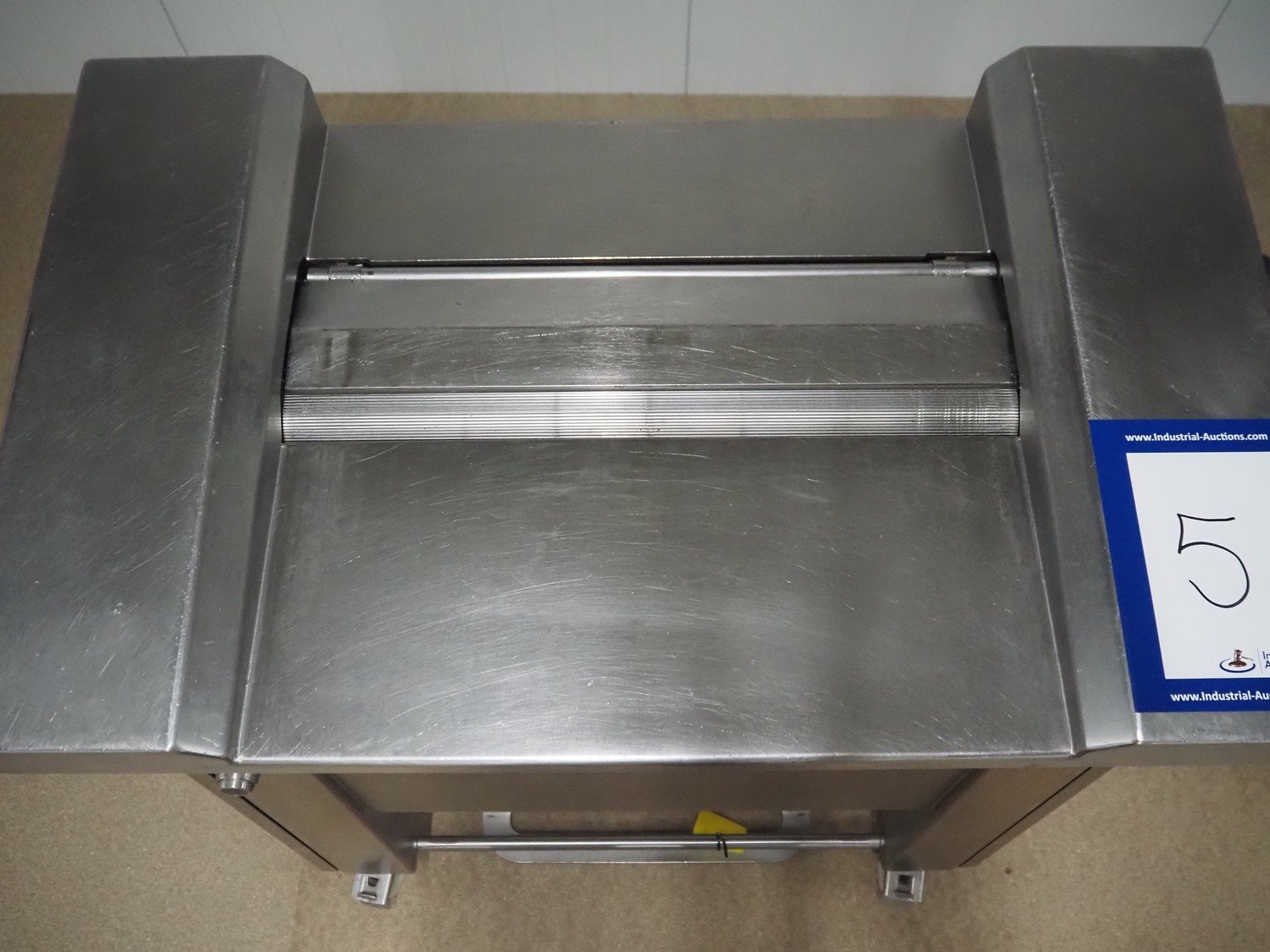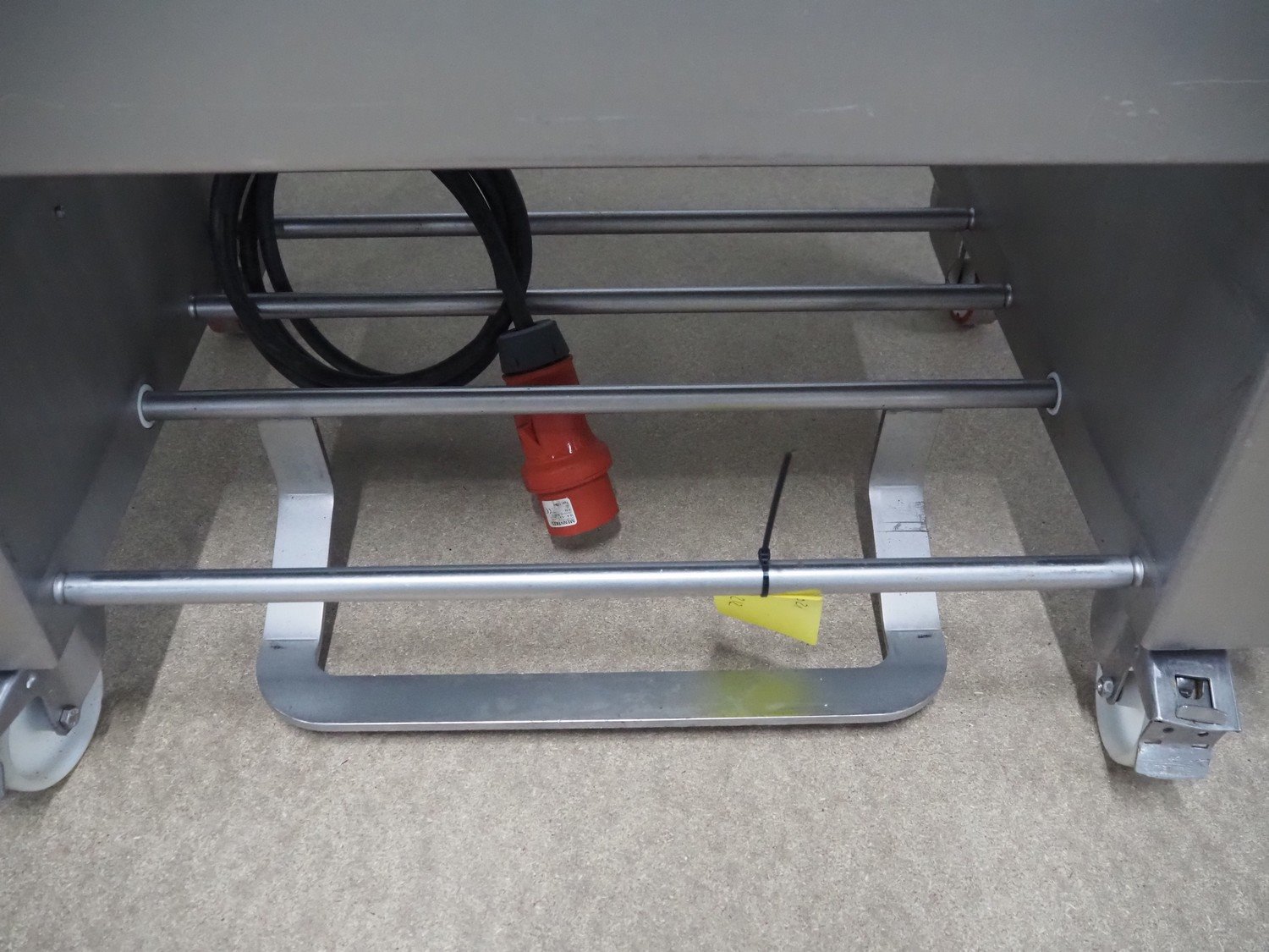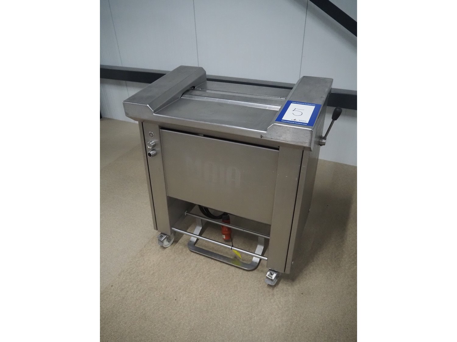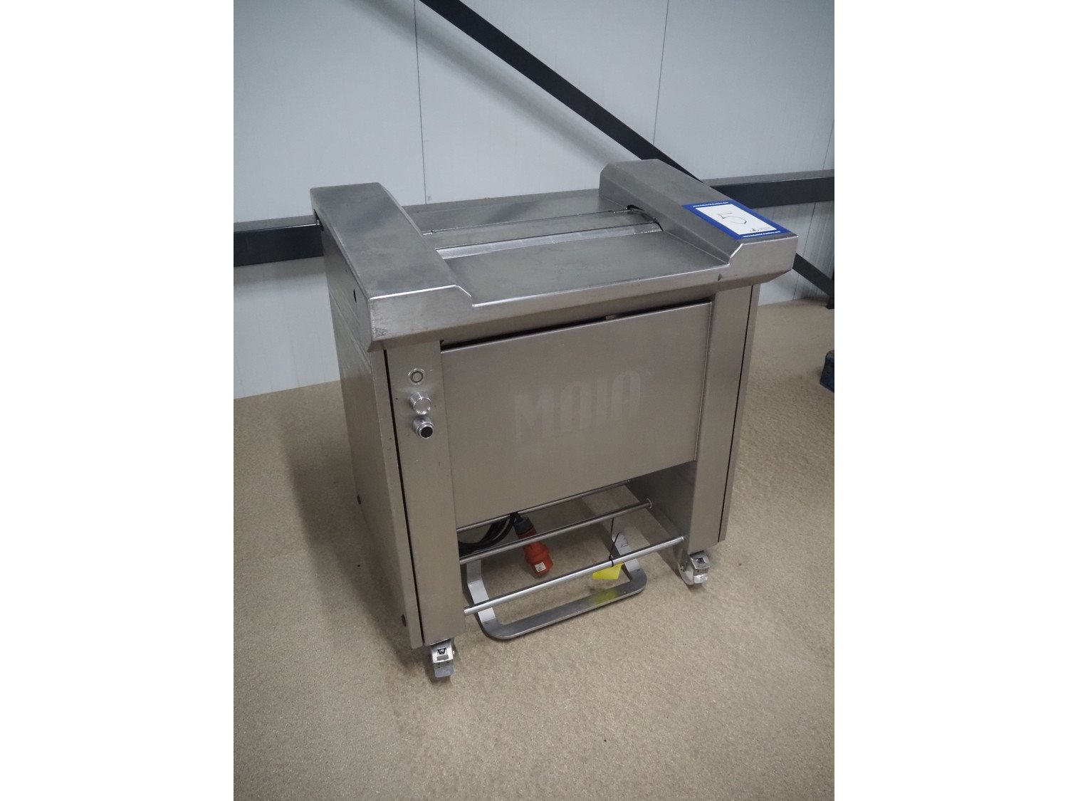 Maja-Maschinenfabrik mobile skinning machine, model: EVM3006, number: 44956, year of construction: 2004, 400 V, 3 Ph, 50 Hz, 2.2 A, working width: 540 mm, total dimensions: 1000 mm x 550 mm x 1030 mm.