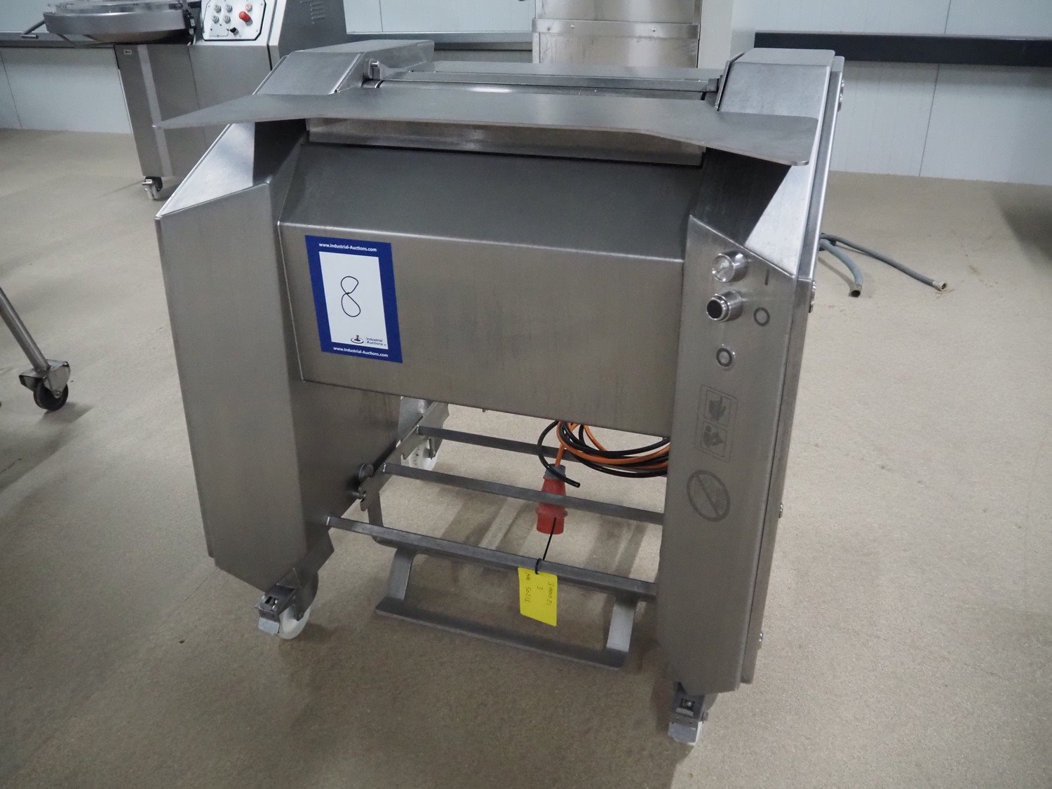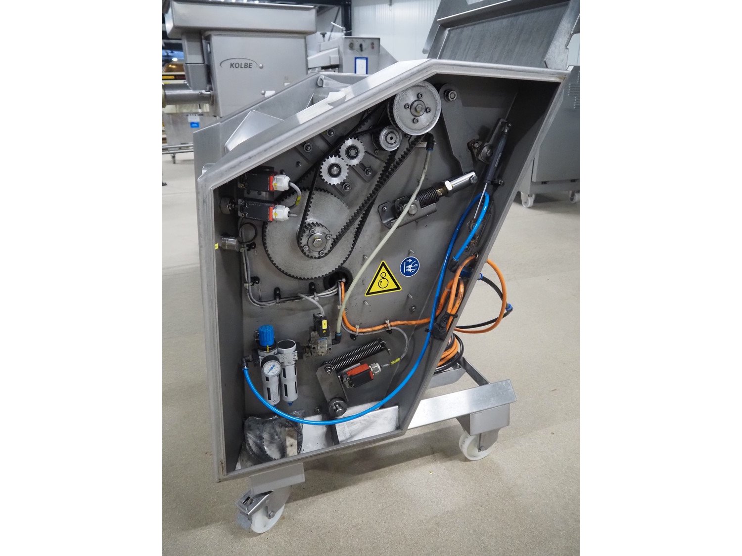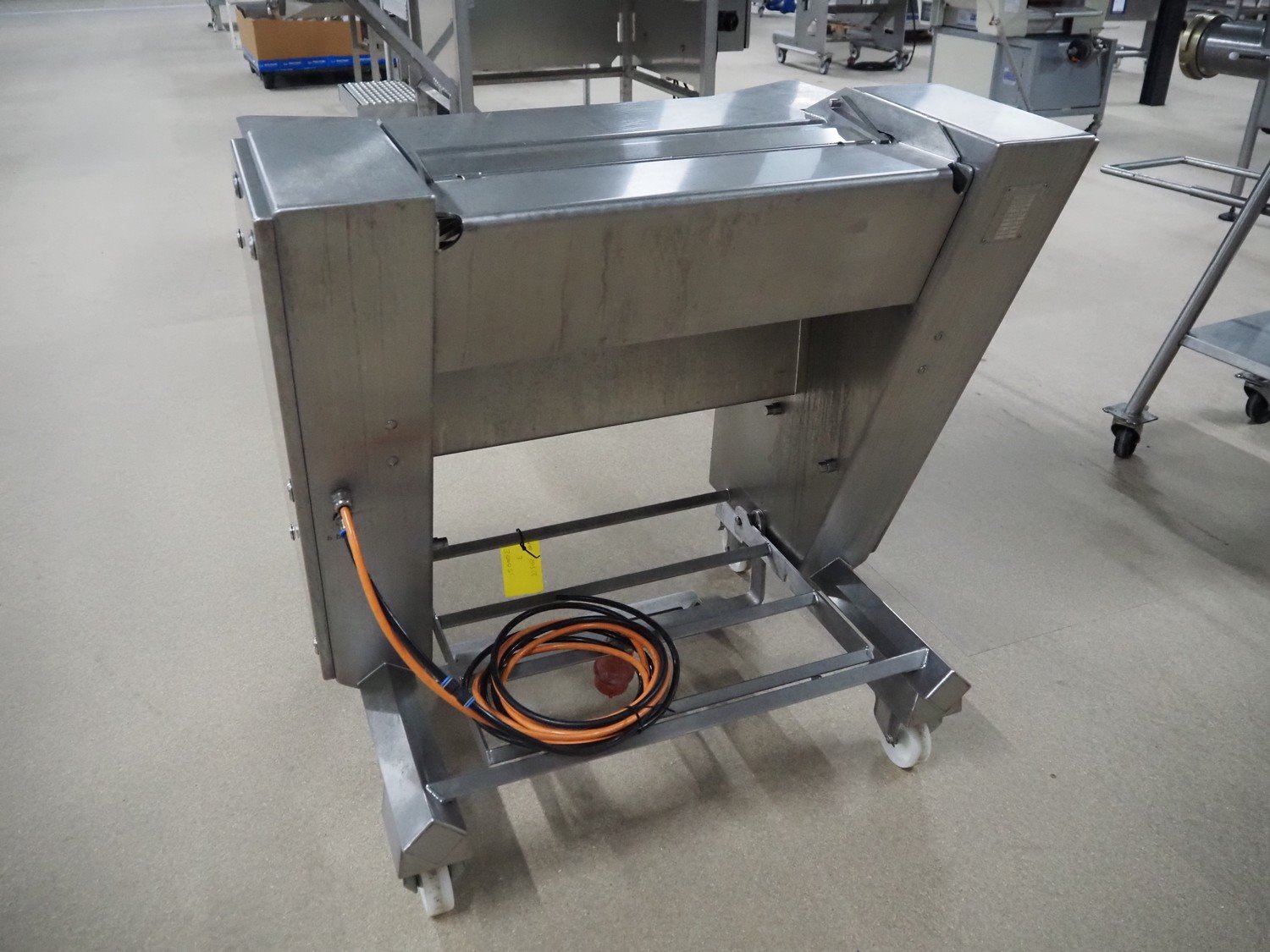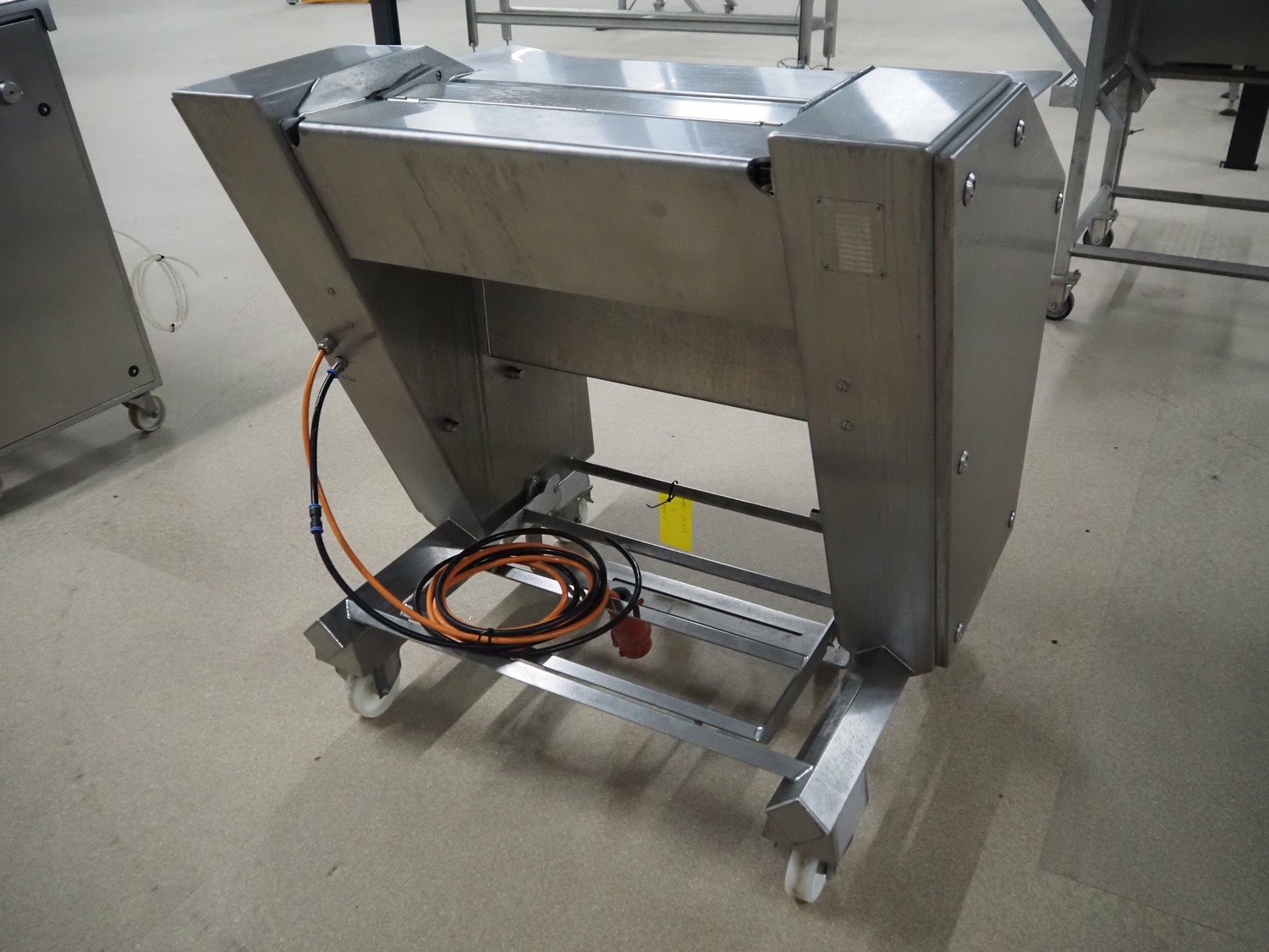 Maja-Maschinenfabrik mobile skinning machine, type: EVM 5006, number: M-54115, year of construction: 2018, 400 V, 3 Ph, 50 Hz, 1.84 A, 0.55 kW, 6 bar, working width: 550 mm, total dimensions: 960 mm x 800 mm x 1000 mm.