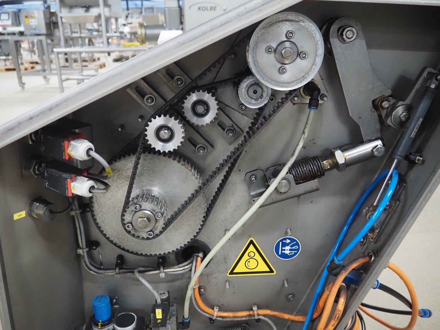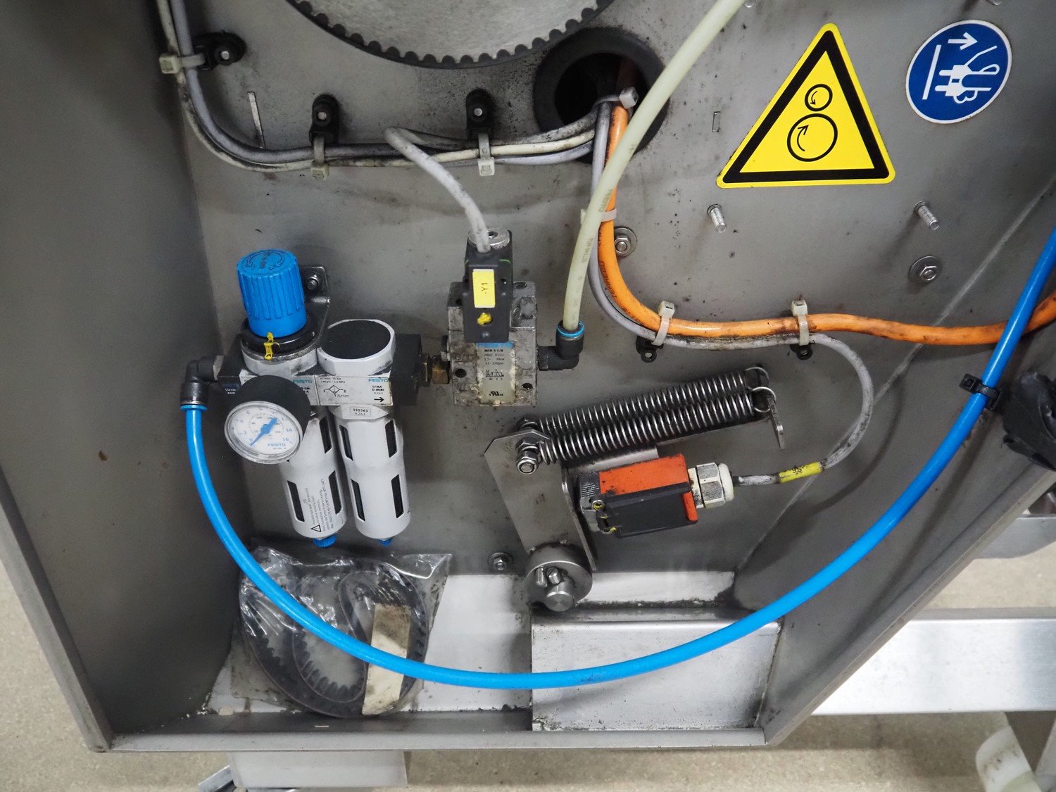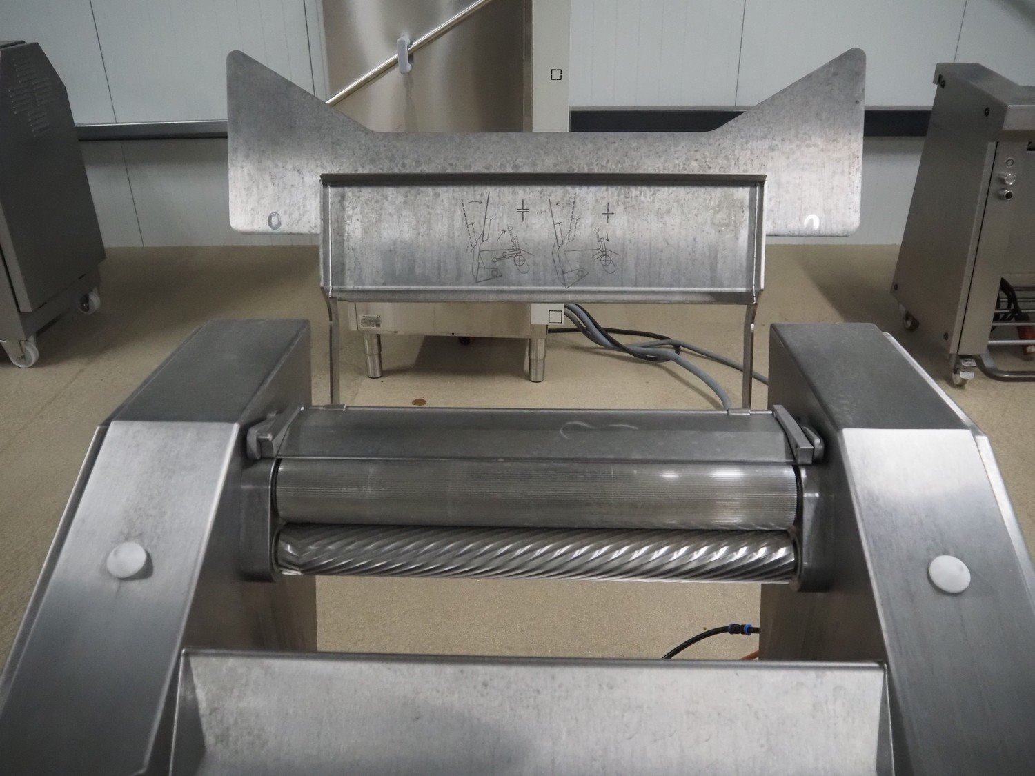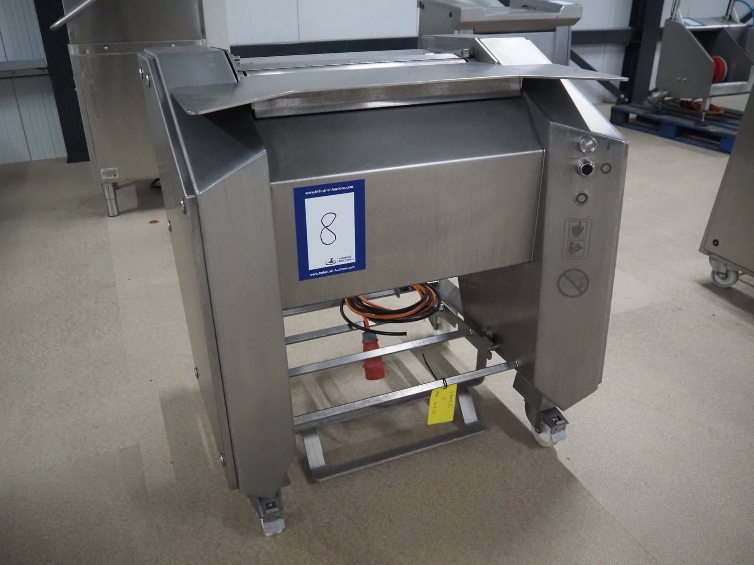 Maja-Maschinenfabrik mobile skinning machine, type: EVM 5006, number: M-54115, year of construction: 2018, 400 V, 3 Ph, 50 Hz, 1.84 A, 0.55 kW, 6 bar, working width: 550 mm, total dimensions: 960 mm x 800 mm x 1000 mm.