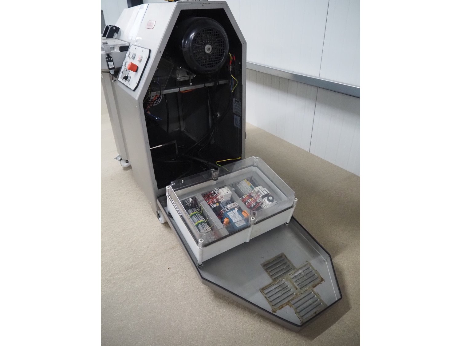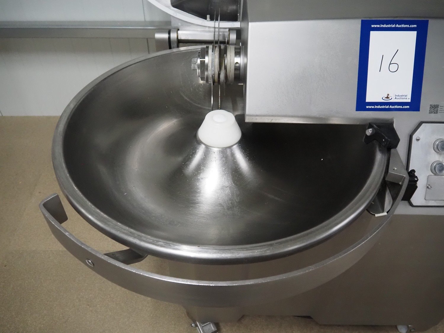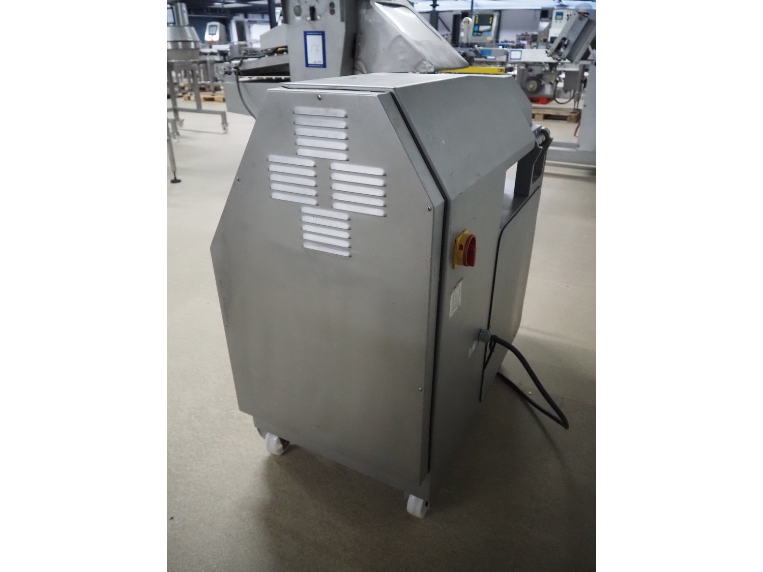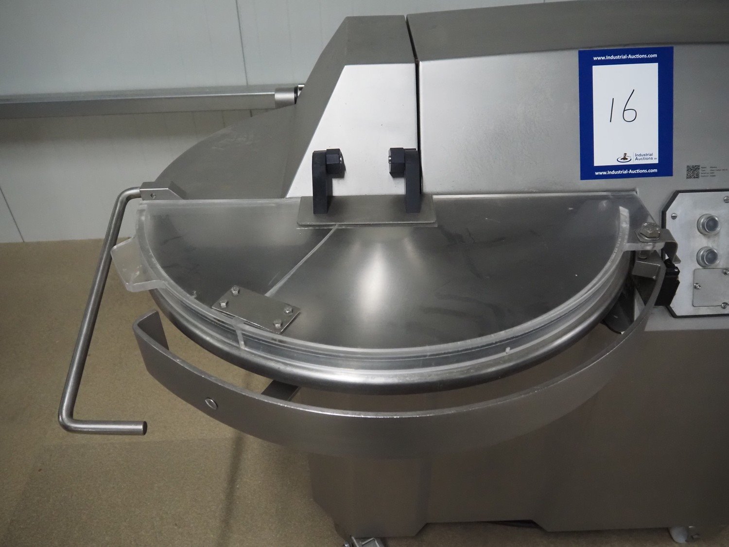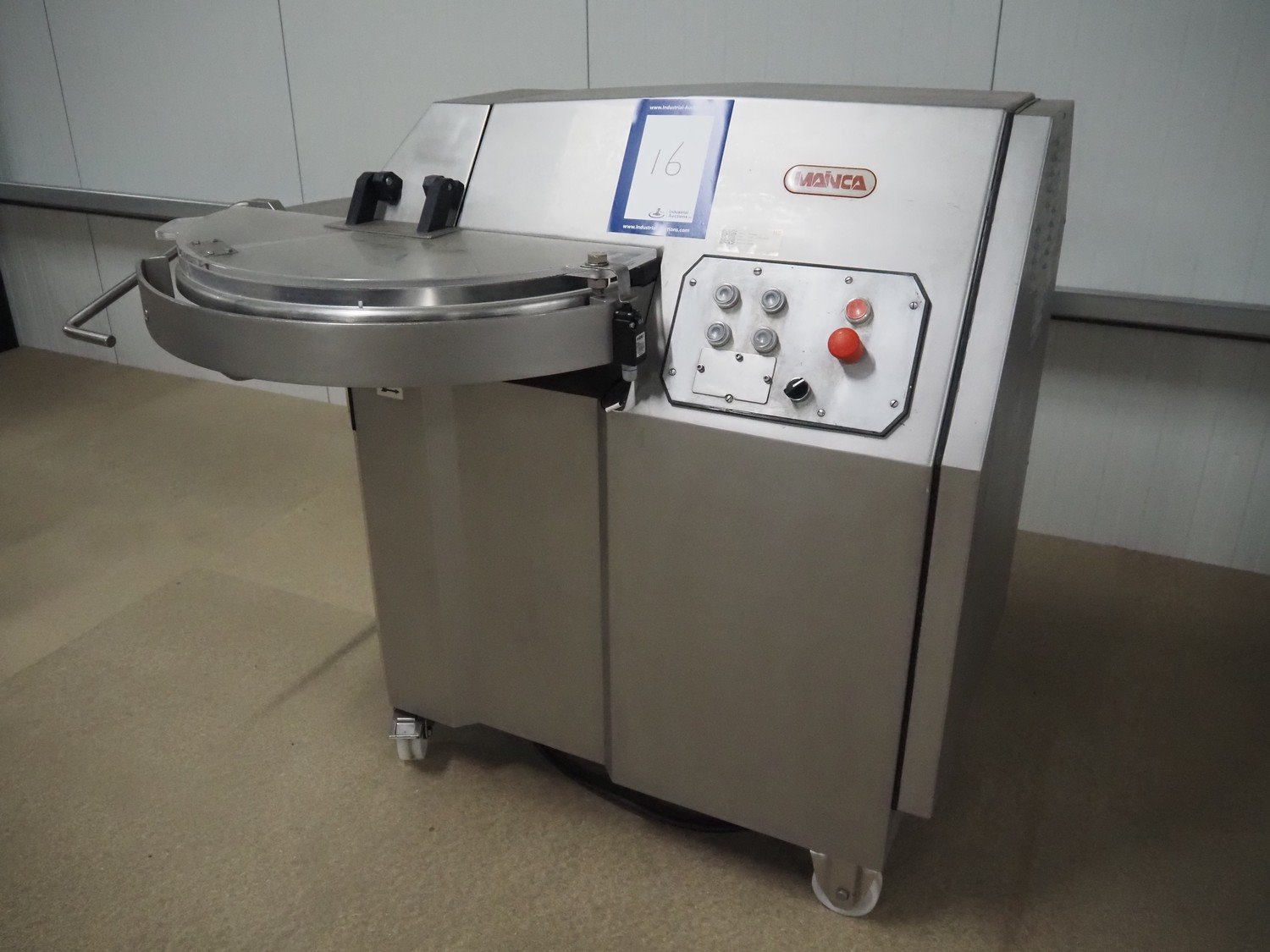 Mainca mobile cutter, model: CM-41, number: 3285, year of construction: 2010, 400 V, 3 Ph, 50 Hz, 19 A, 8.6 kW, s/s bowl, volume bowl: 40 liter, s/s knives, 2 speeds, dimensions: 1300 mm x 900 mm x 1100 mm. Including extra knife set.