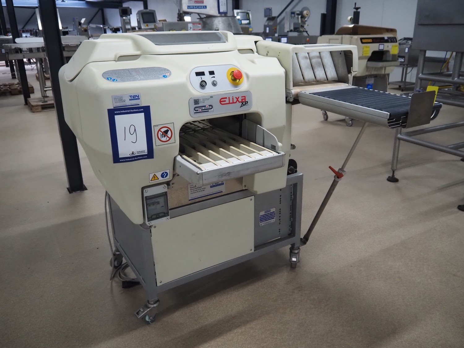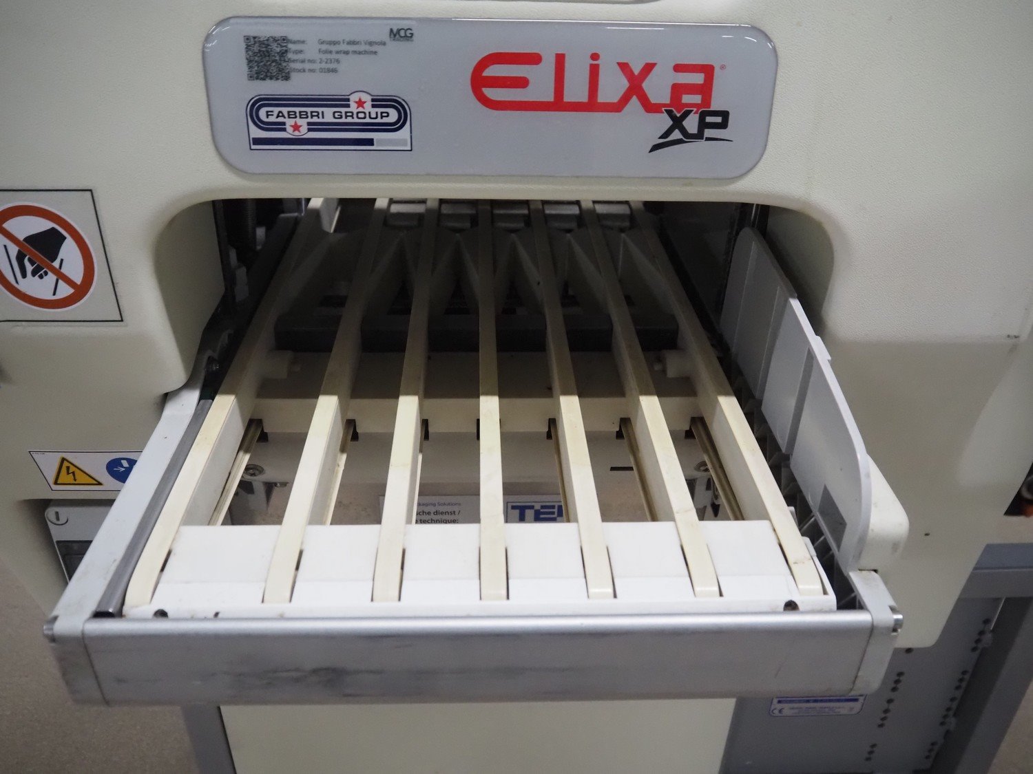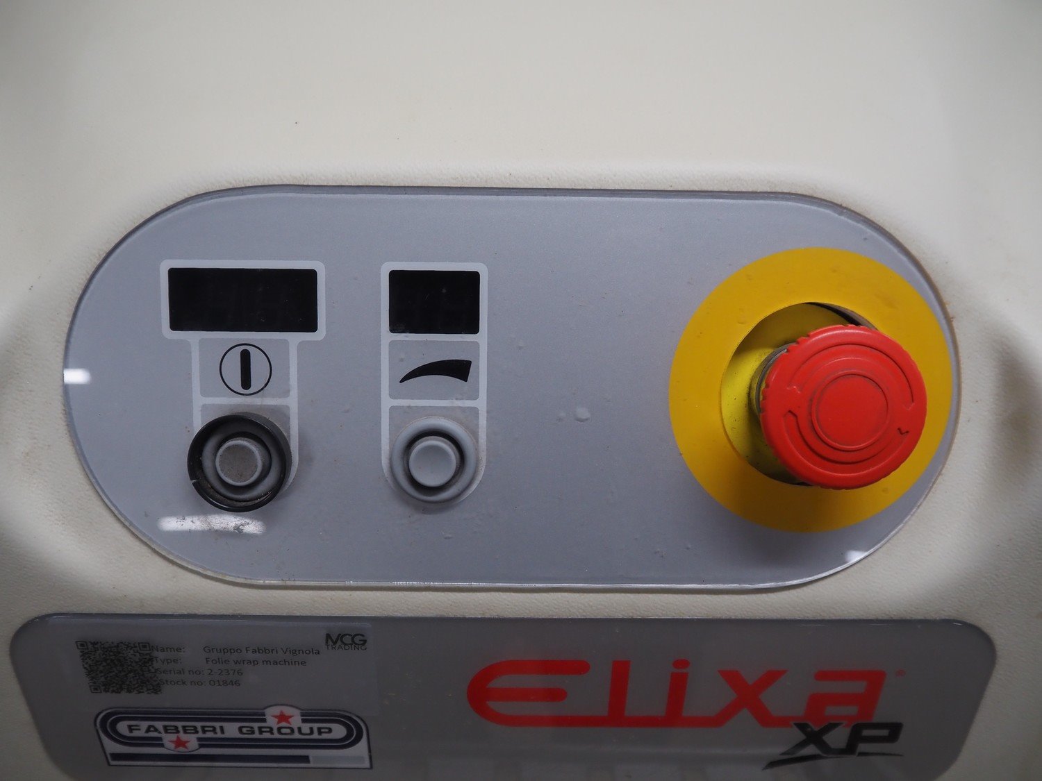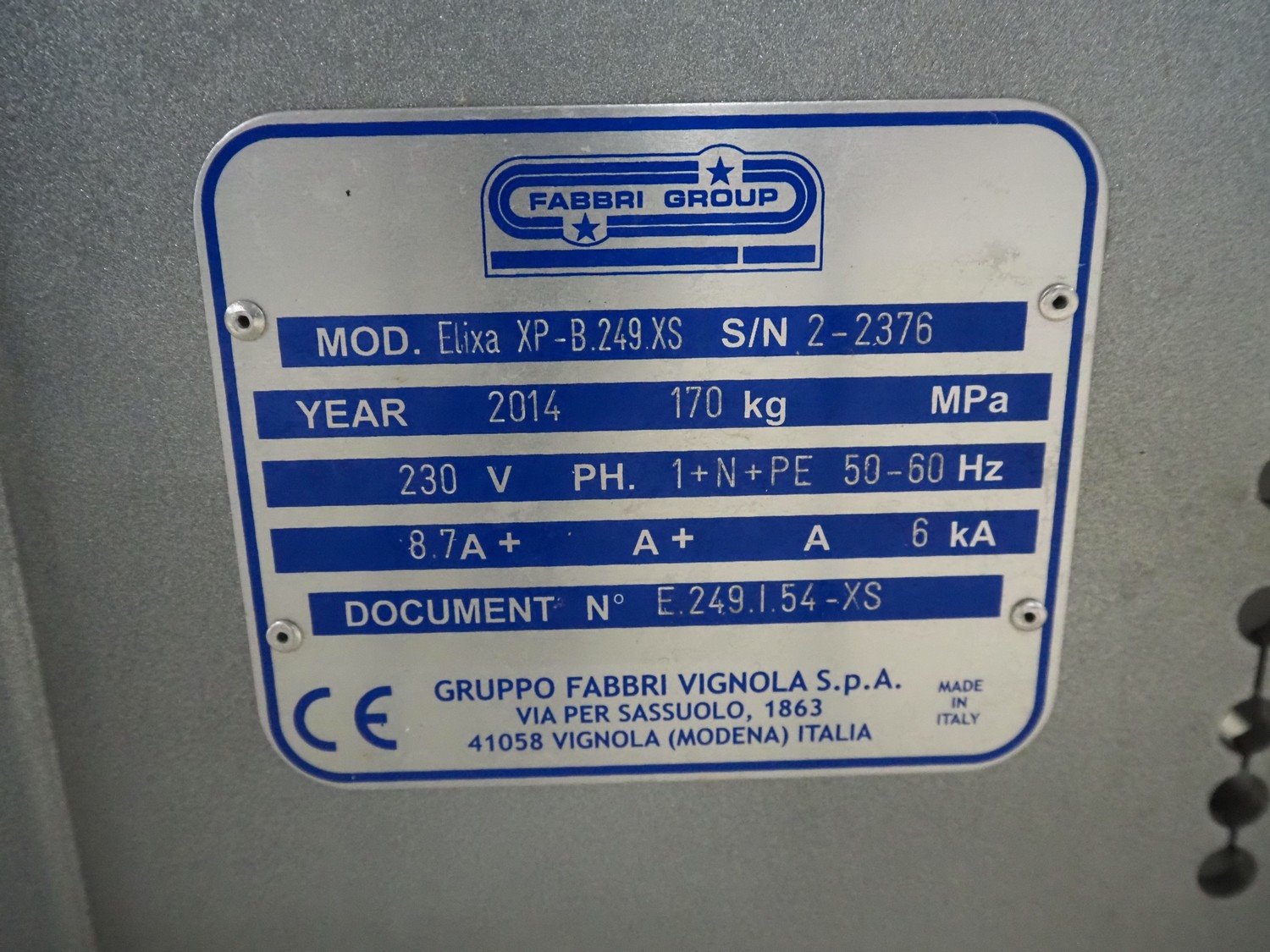 Fabbri Group mobile packaging machine, model: Elixa XP-B.249.XS, serial number: 2-2376, year of construction: 2014, 230 V, 1 Ph, 50-60 Hz, 8.7 A, plastic string infeed belt, belt width: 330 mm, plastic outfeed belt, belt width: 340 mm, plastic outfeed rollers, roller width: 300 mm, total dimensions: 1350 mm x 1250 mm x 1300 mm.