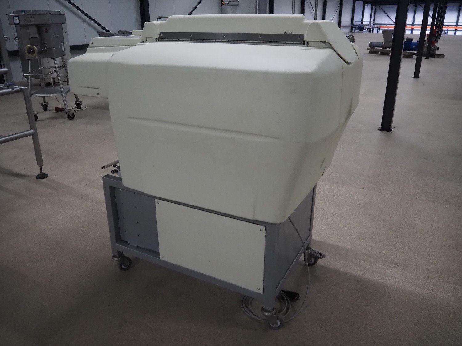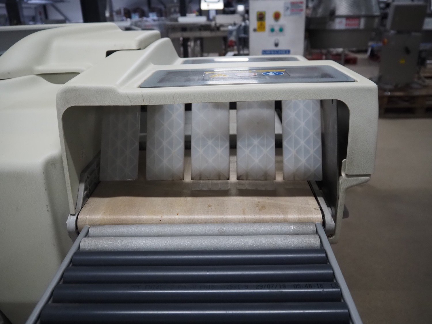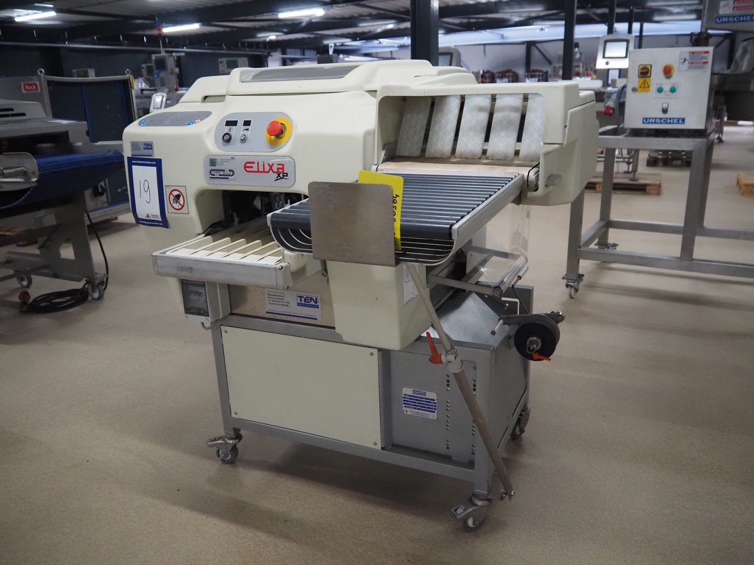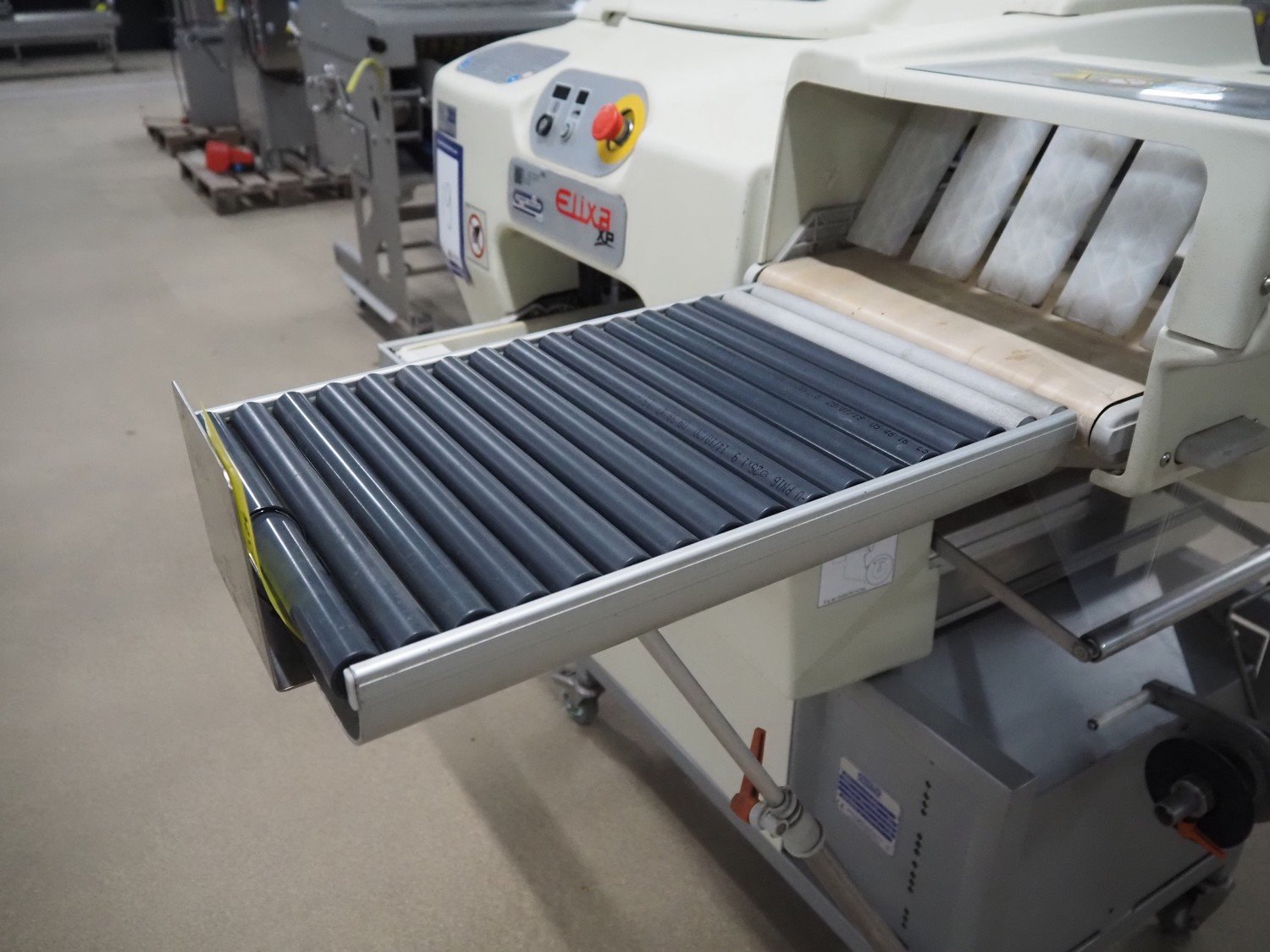 Fabbri Group mobile packaging machine, model: Elixa XP-B.249.XS, serial number: 2-2376, year of construction: 2014, 230 V, 1 Ph, 50-60 Hz, 8.7 A, plastic string infeed belt, belt width: 330 mm, plastic outfeed belt, belt width: 340 mm, plastic outfeed rollers, roller width: 300 mm, total dimensions: 1350 mm x 1250 mm x 1300 mm.