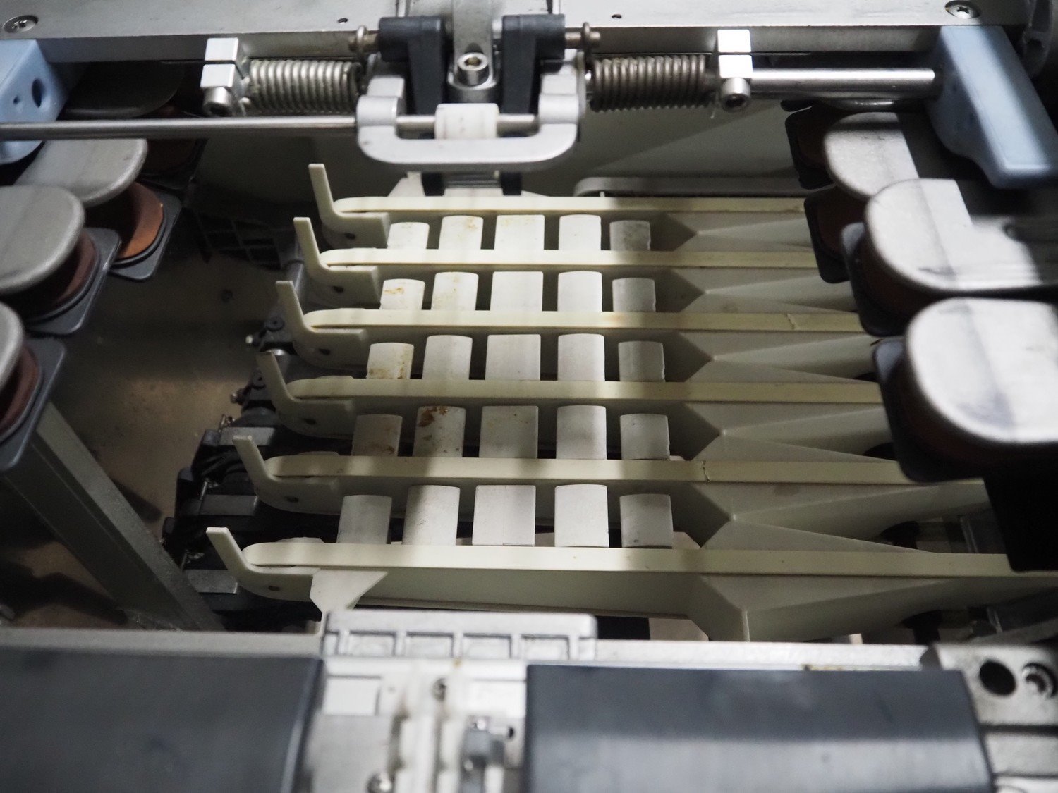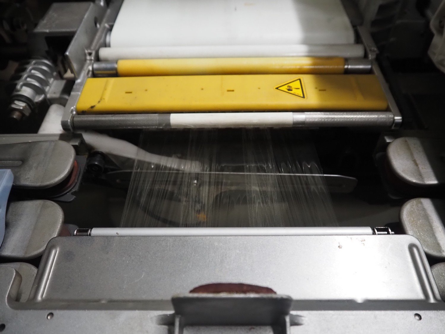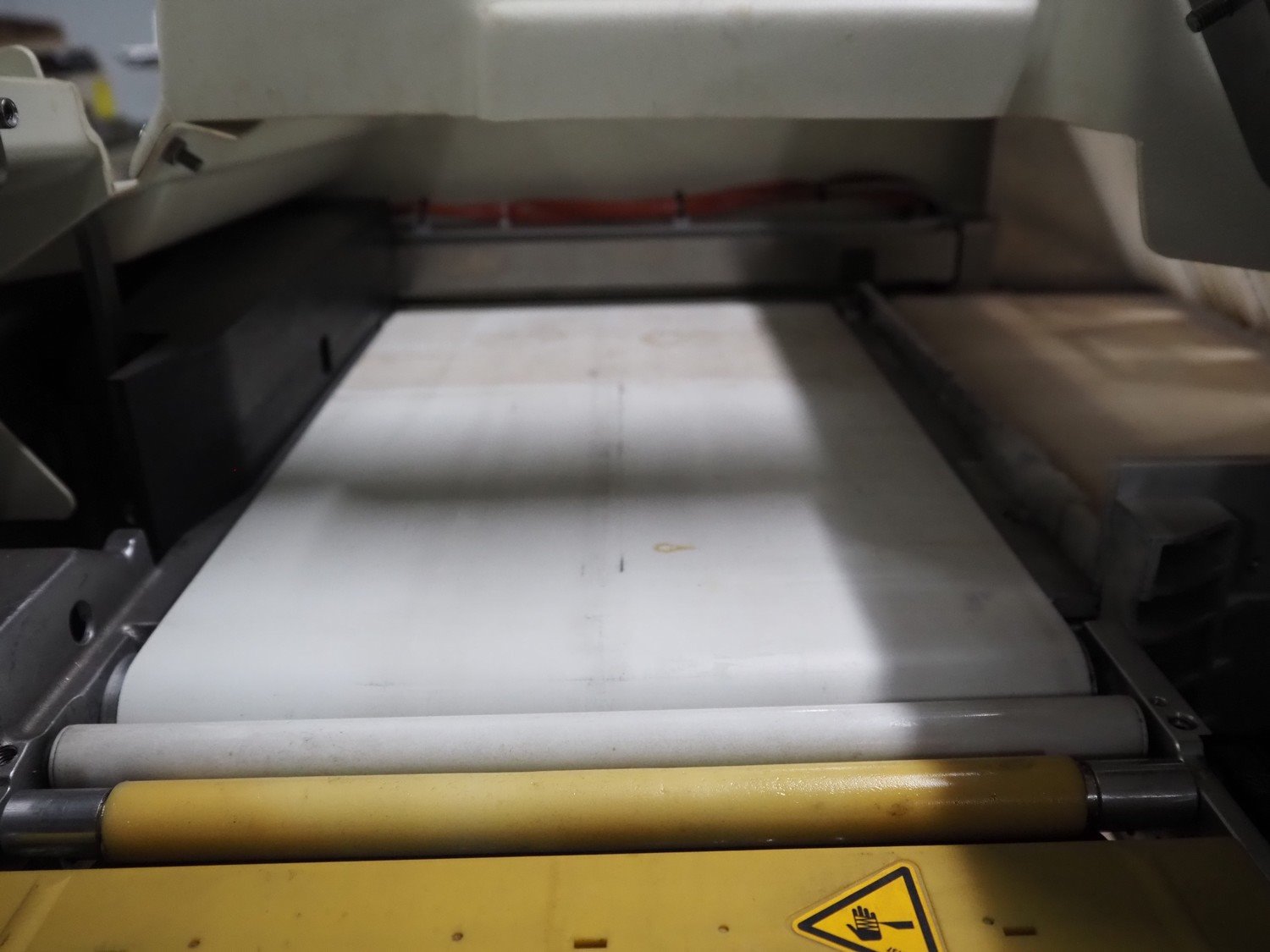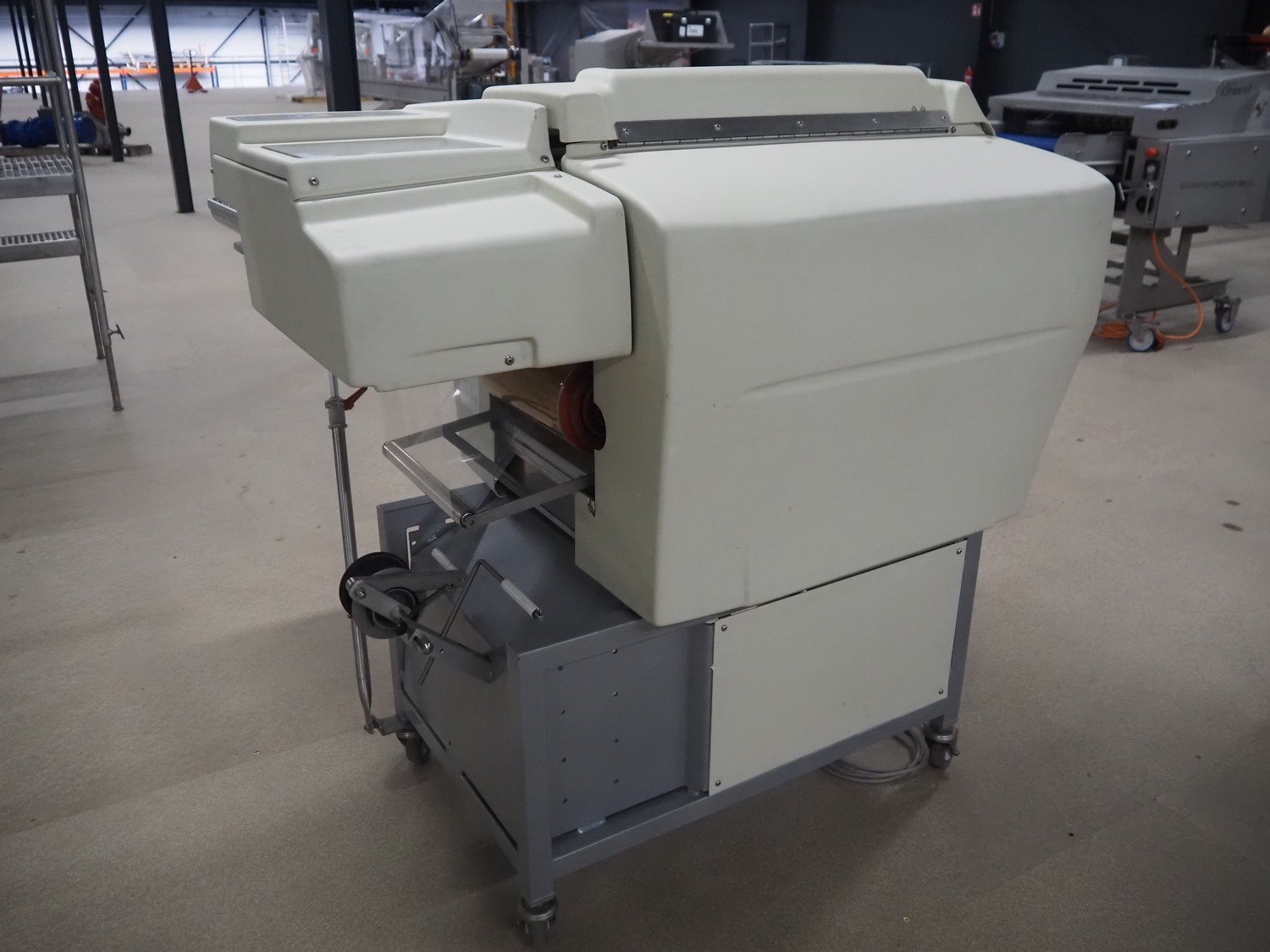 Fabbri Group mobile packaging machine, model: Elixa XP-B.249.XS, serial number: 2-2376, year of construction: 2014, 230 V, 1 Ph, 50-60 Hz, 8.7 A, plastic string infeed belt, belt width: 330 mm, plastic outfeed belt, belt width: 340 mm, plastic outfeed rollers, roller width: 300 mm, total dimensions: 1350 mm x 1250 mm x 1300 mm.