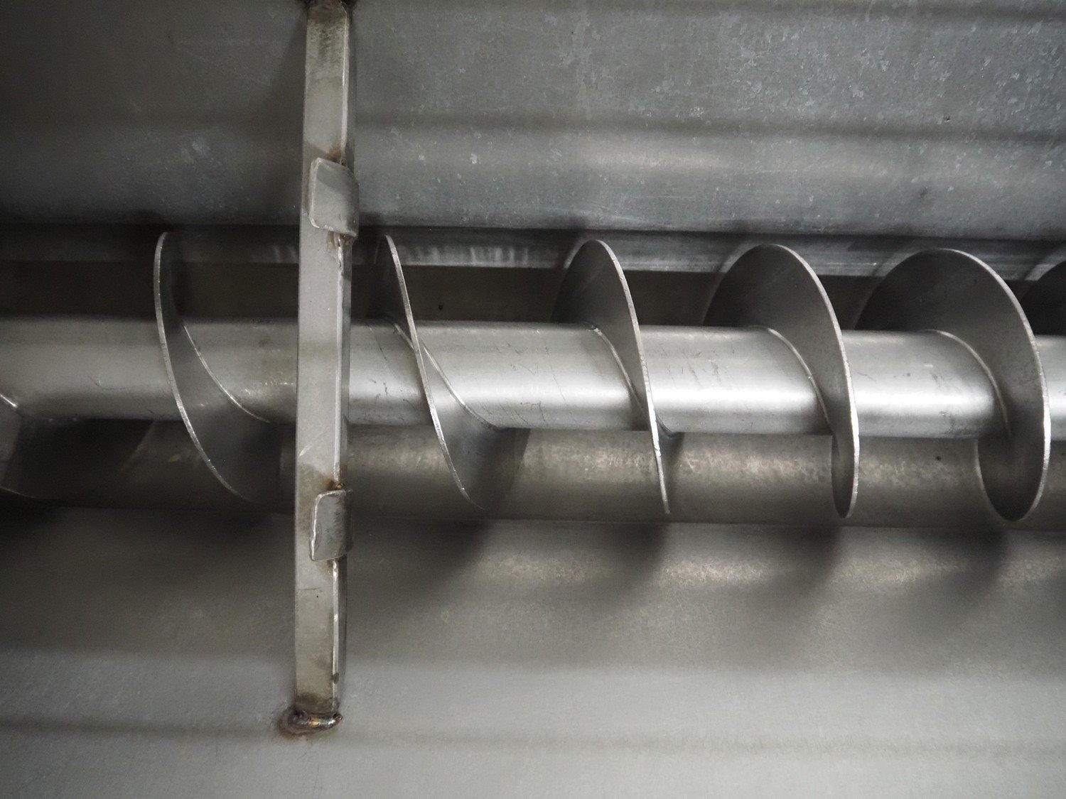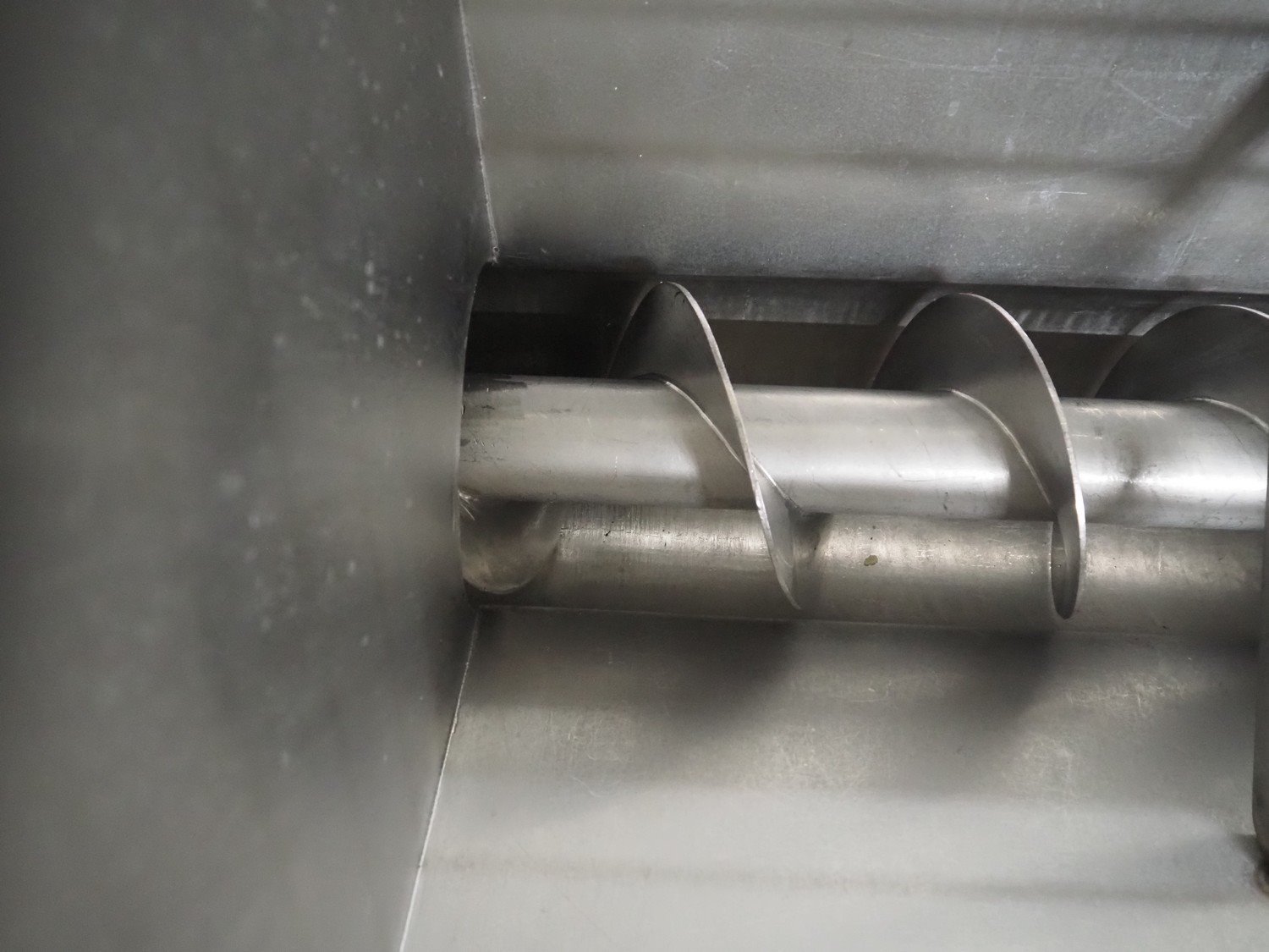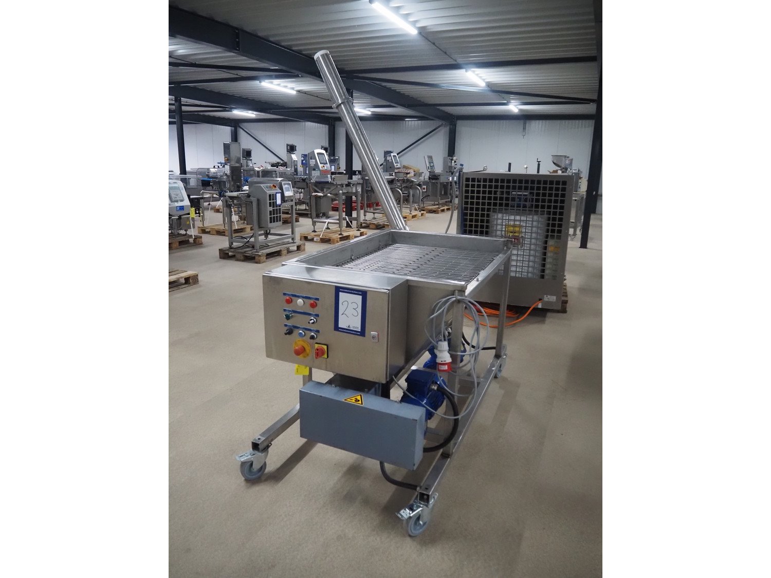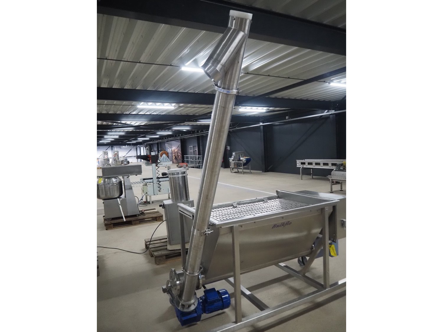 Guttridge mobile infeed bunker with outfeed screw, number: 322445, year of construction: 08/07, clearance: 1200 mm x 800 mm x 800 mm, elevating height: 1900 mm, total dimensions: 1800 mm x 1600 mm x 2300 mm.