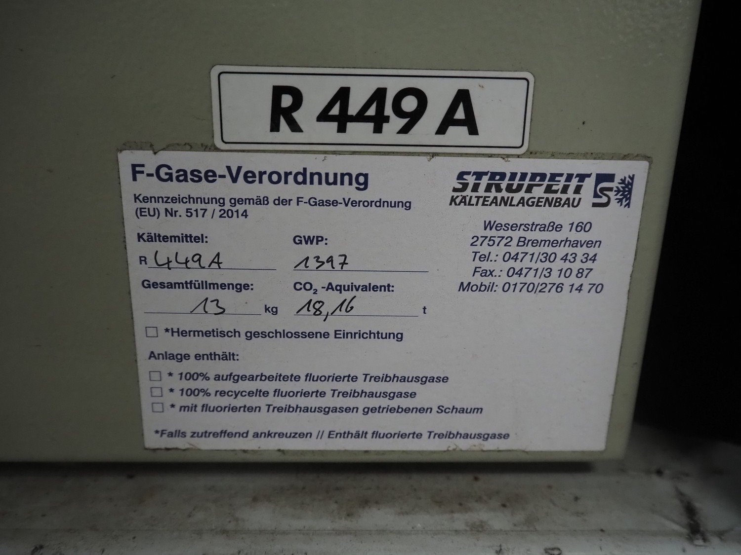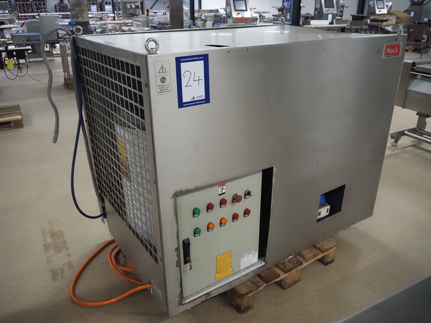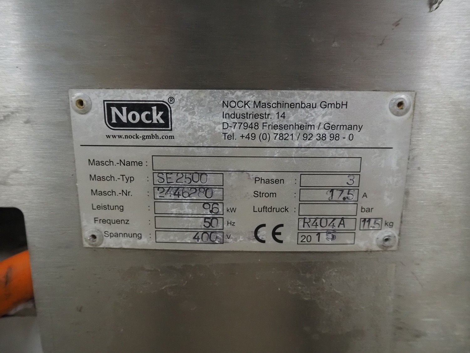 Nock Maschinenbau GmbH ice machine, SE2500, machine number: 2446280, year of construction: 2015, 400 V, 3 Ph, 50 Hz, 17.5 A, 9.6 kW, refrigerant: R404A, 11.5 kg, dimensions: 1680 mm x 1050 mm x 1330 mm.