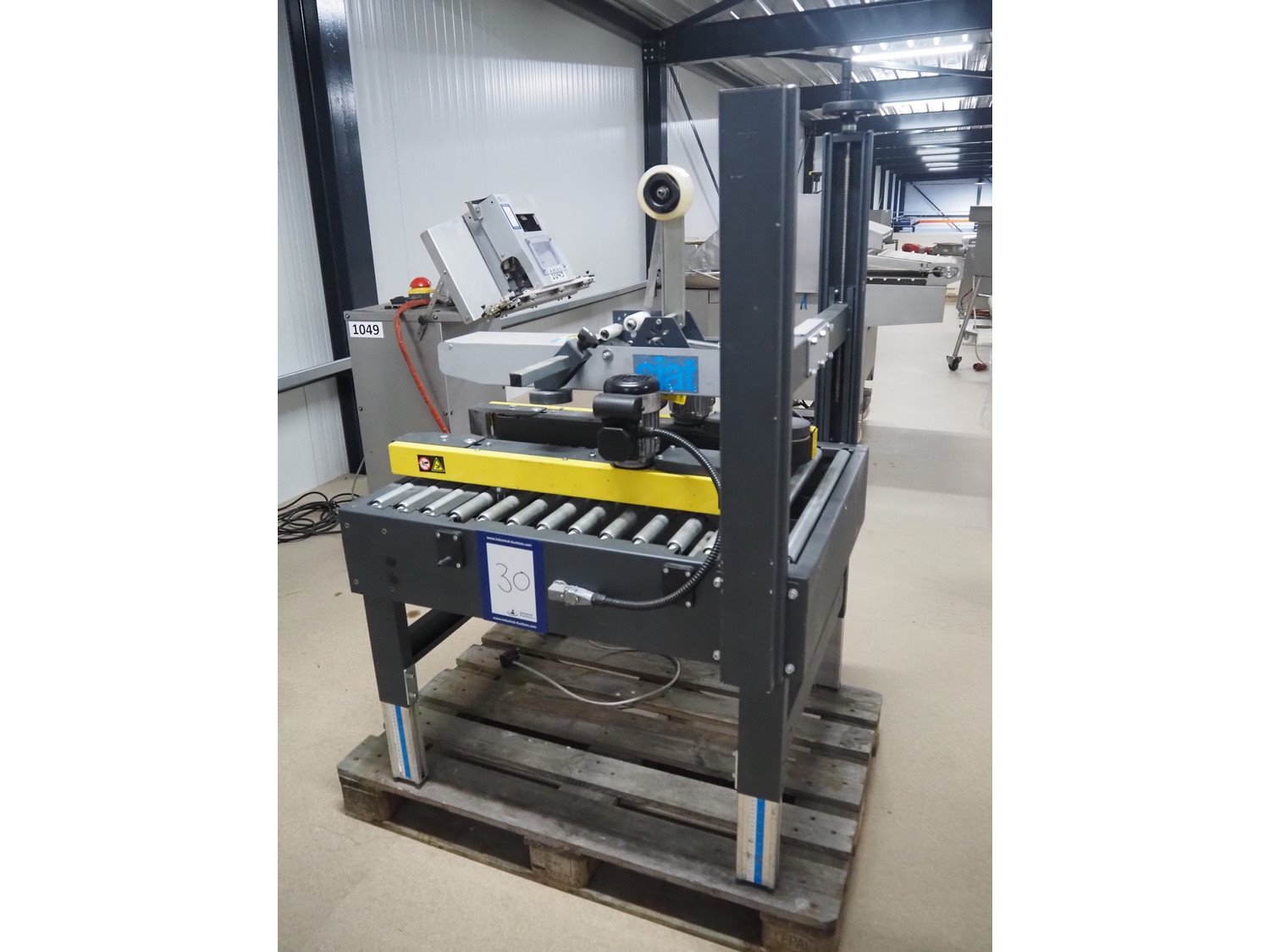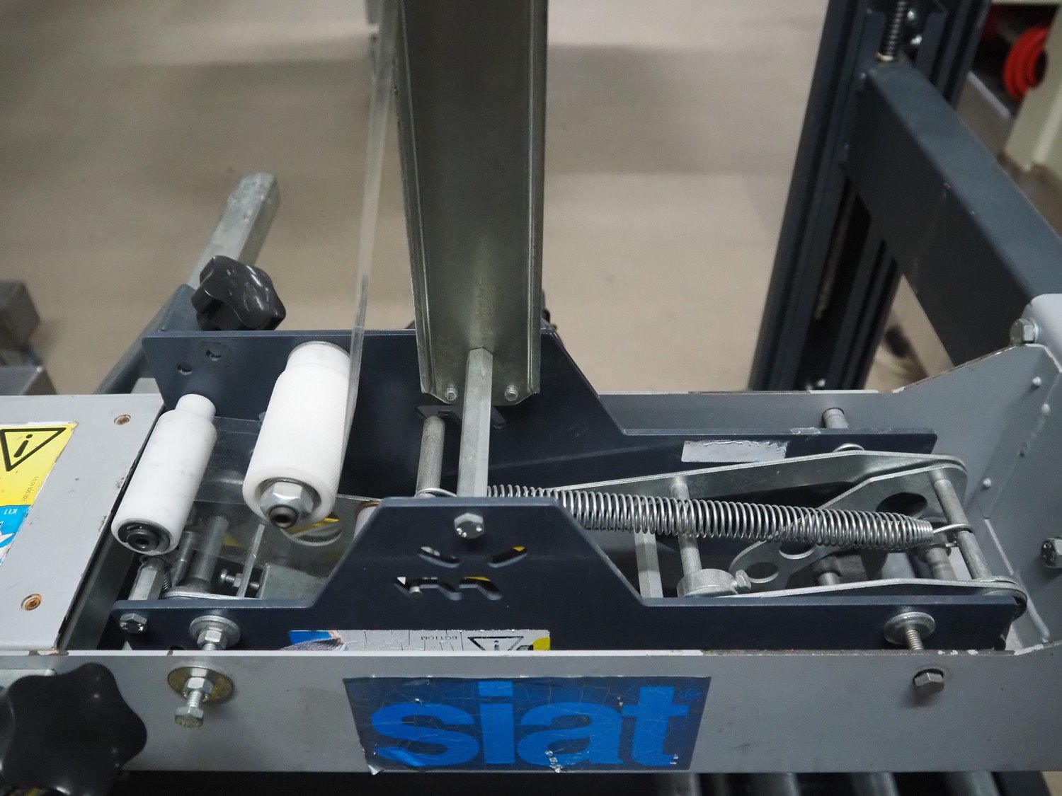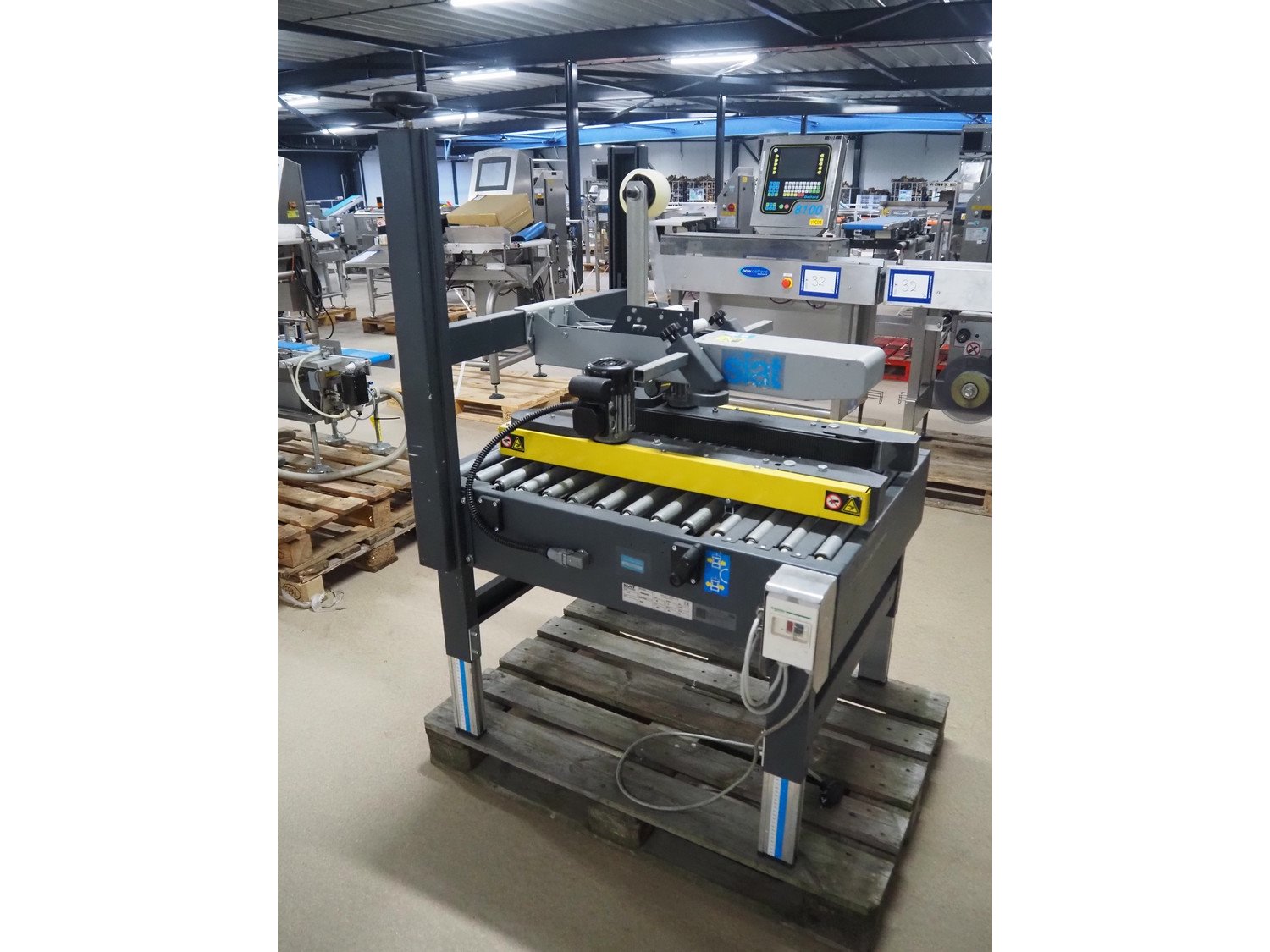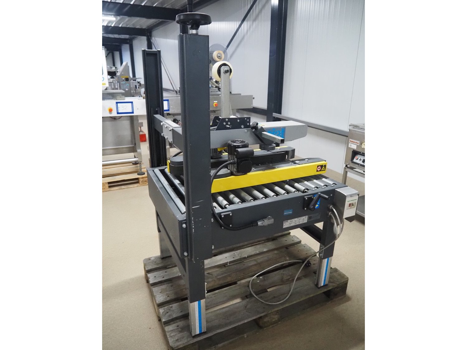 Siat box closing machine, model: S8-S, serial number: 50266, year of construction: 2004, 220/240 V, 1 Ph, 50 Hz, 2 A, 0.18 kW, dimensions: 1000 mm x 900 mm x 1430 mm.
