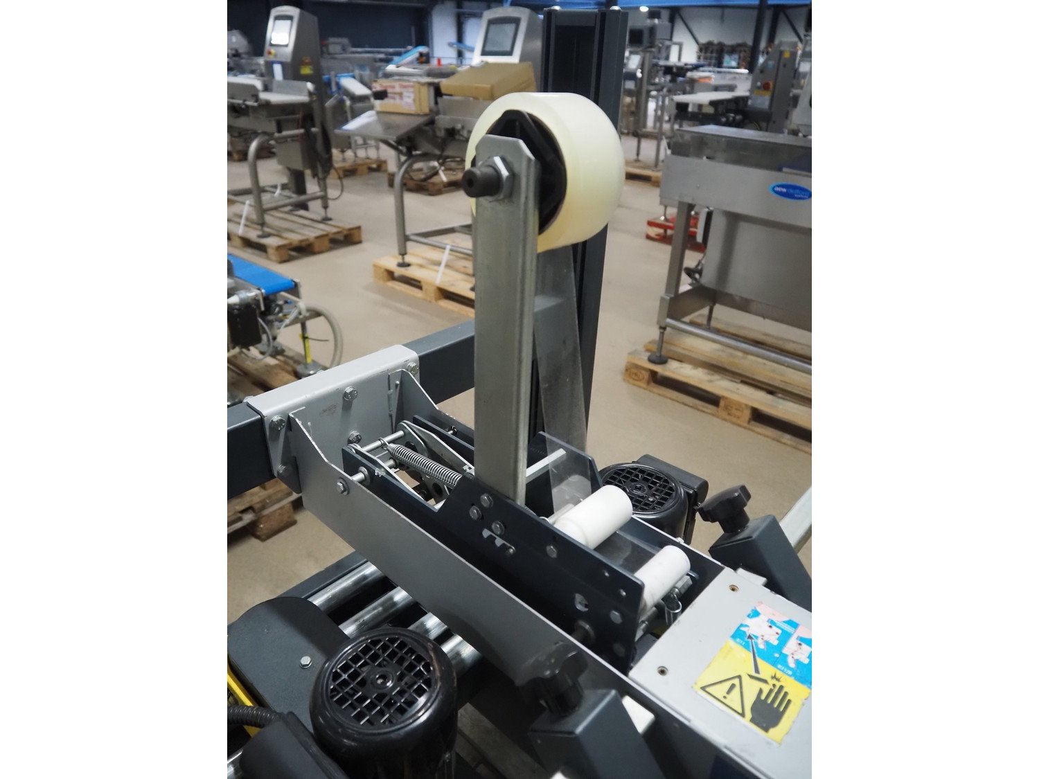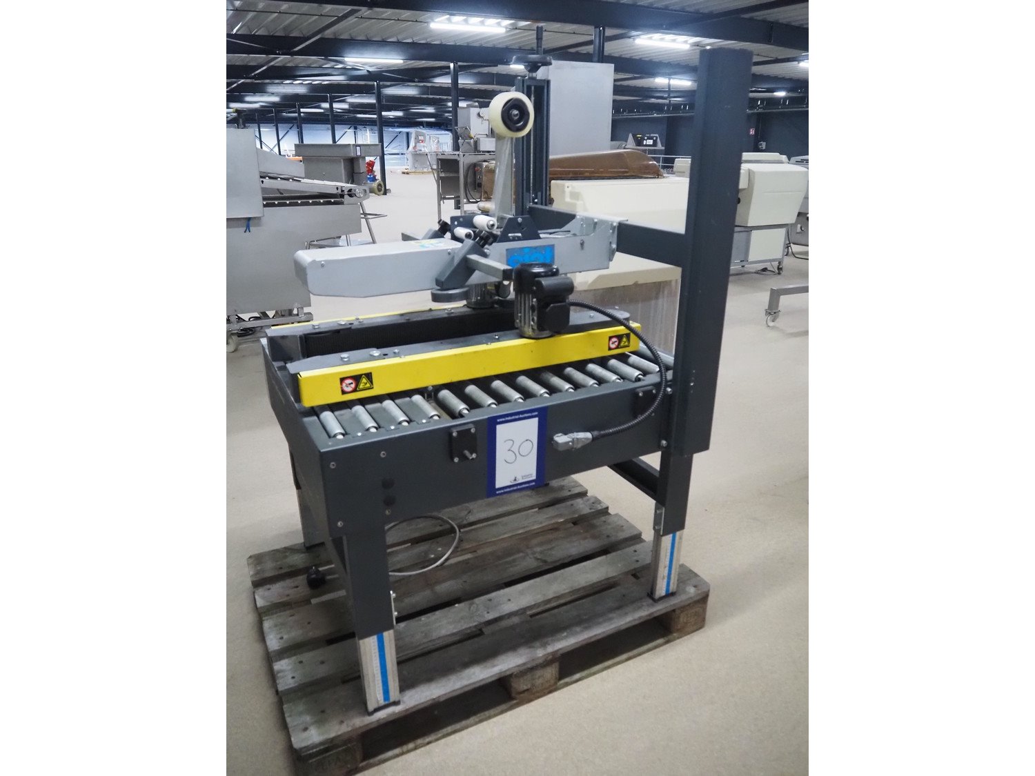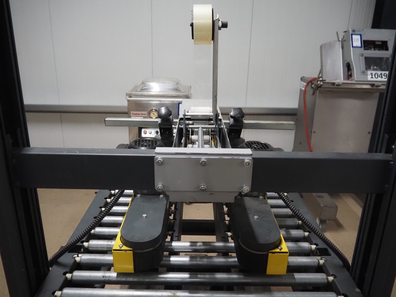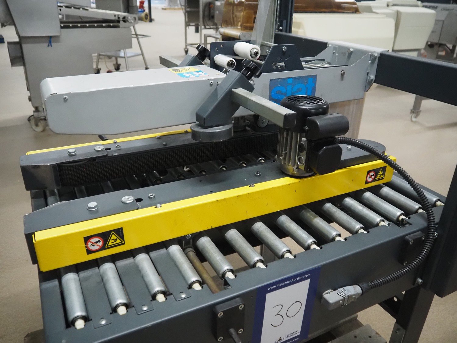 Siat box closing machine, model: S8-S, serial number: 50266, year of construction: 2004, 220/240 V, 1 Ph, 50 Hz, 2 A, 0.18 kW, dimensions: 1000 mm x 900 mm x 1430 mm.