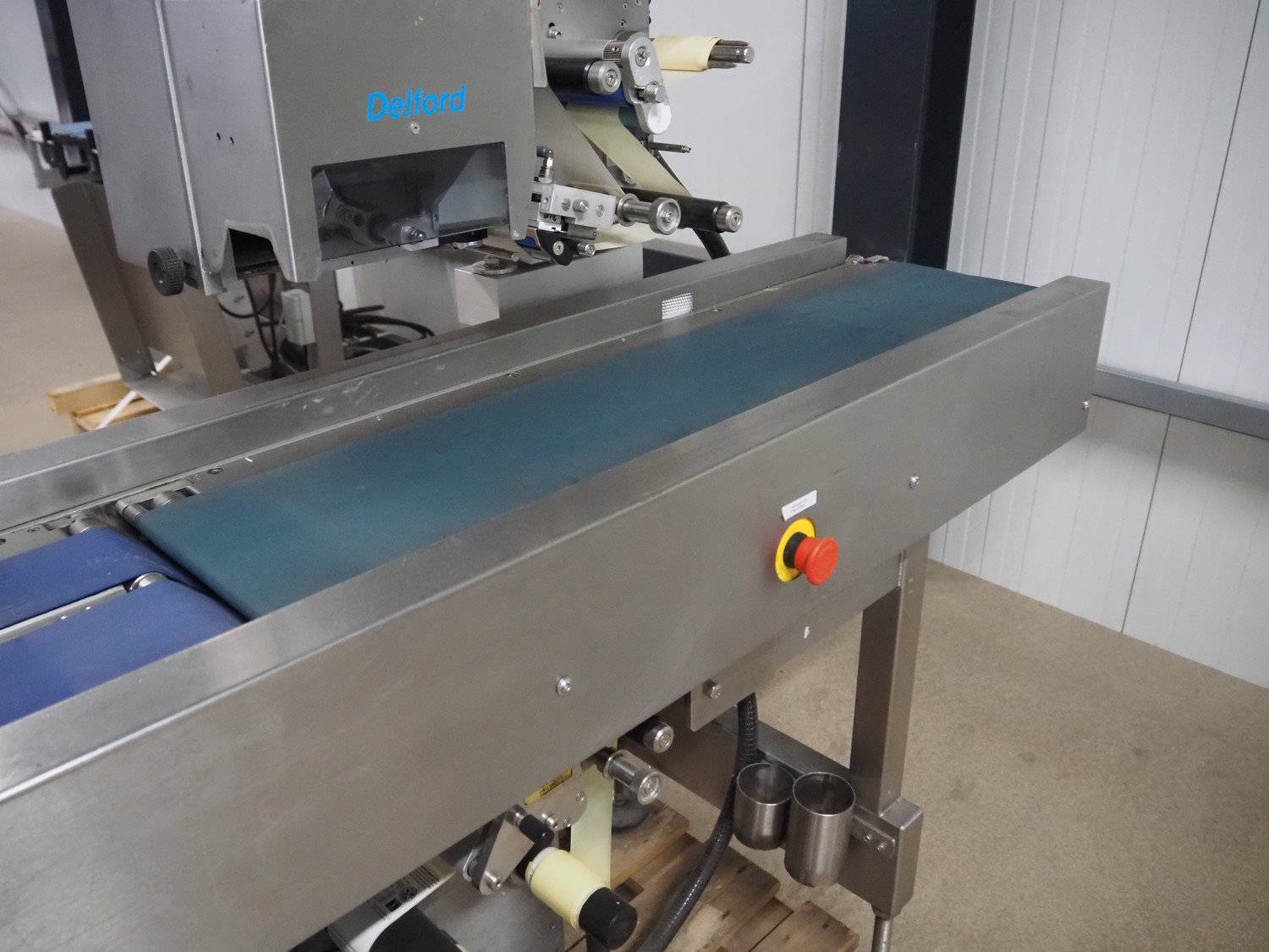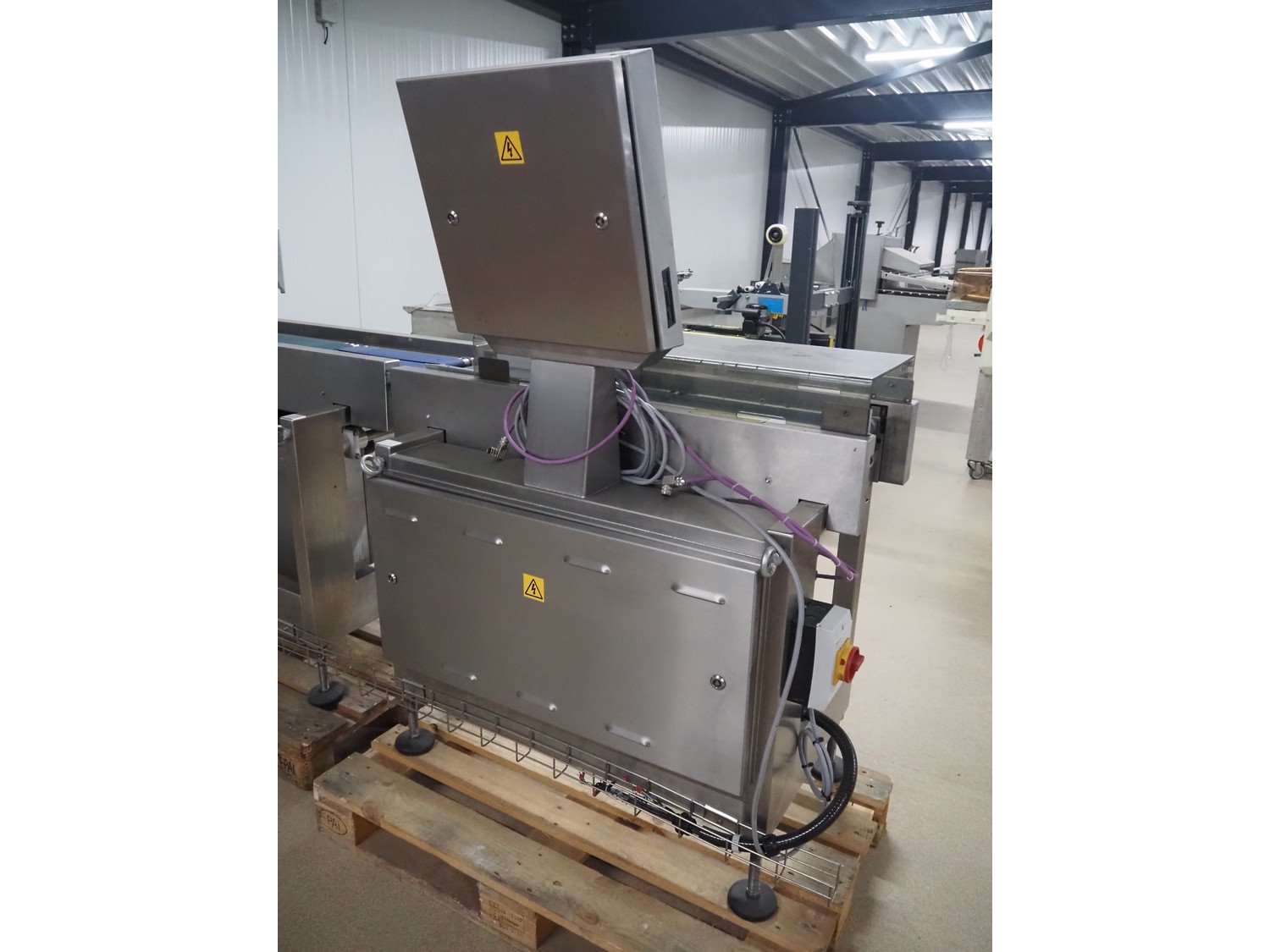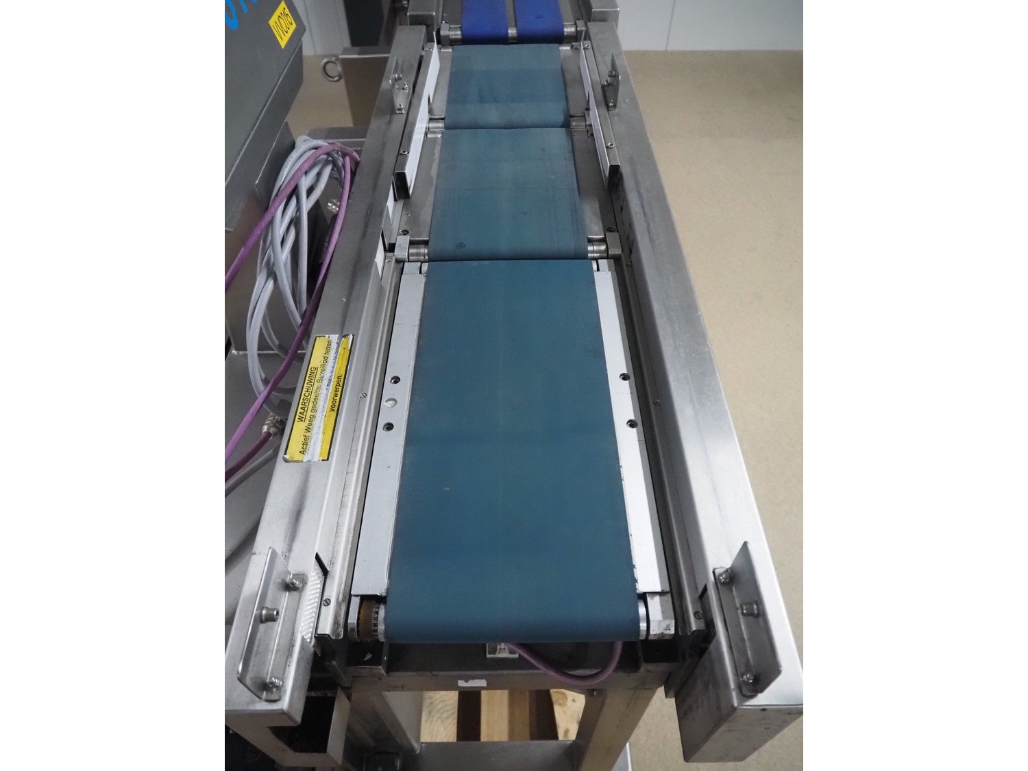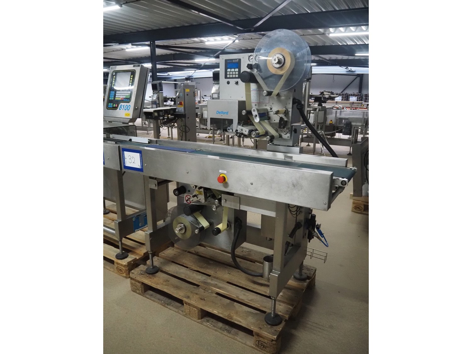 AEW Delford checkweigher with labelling machine, type checkweigher: 8060, fabrication number: 81133, year of construction: 2005, 230 V, 50 Hz, maximum weight: 1500-4000 gram, minimum weight: 20-40 gram, e =1-2 gram, T = -1000 gram, type labeller: 8000, plastic belt, belt width: (2x) 90 mm and 195 mm, dimensions checkweigher: 1500 mm x 700 mm x 1630 mm and dimensions labelling machine: 1200 mm x 700 mm x 1530 mm.