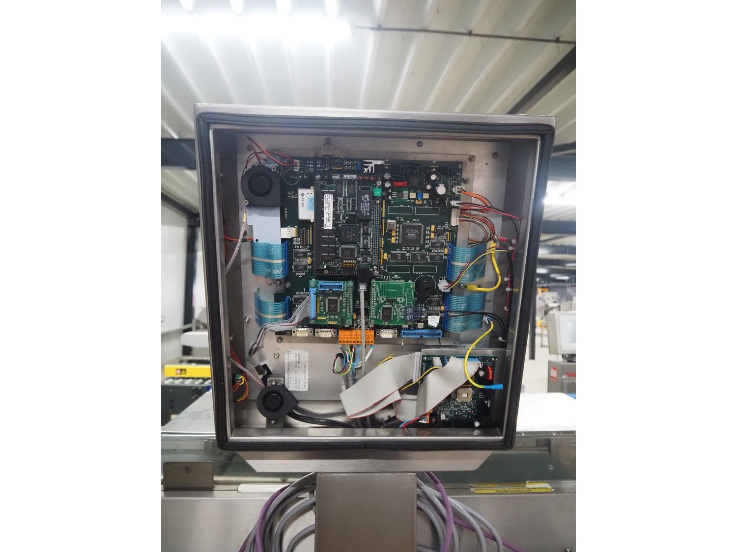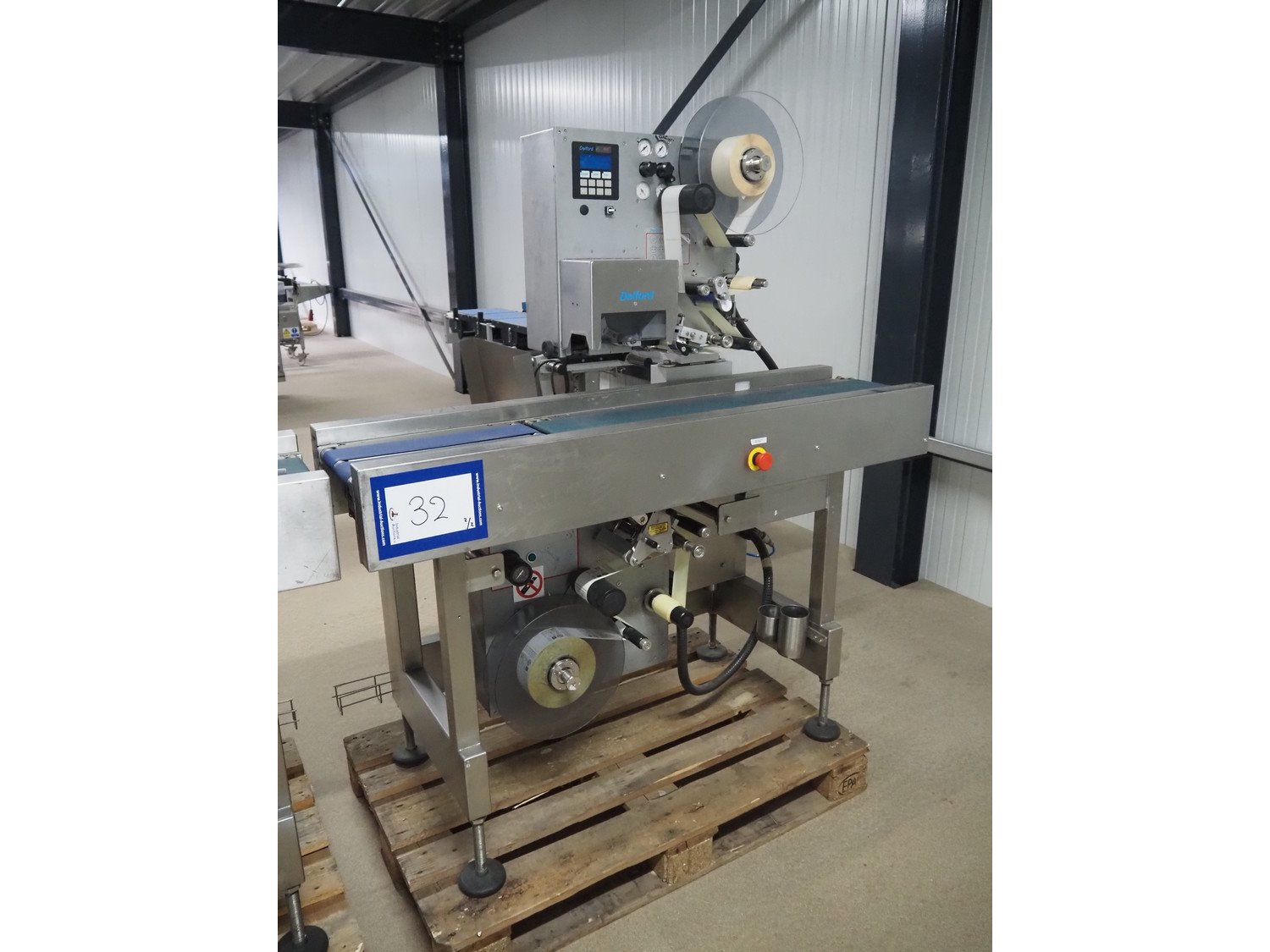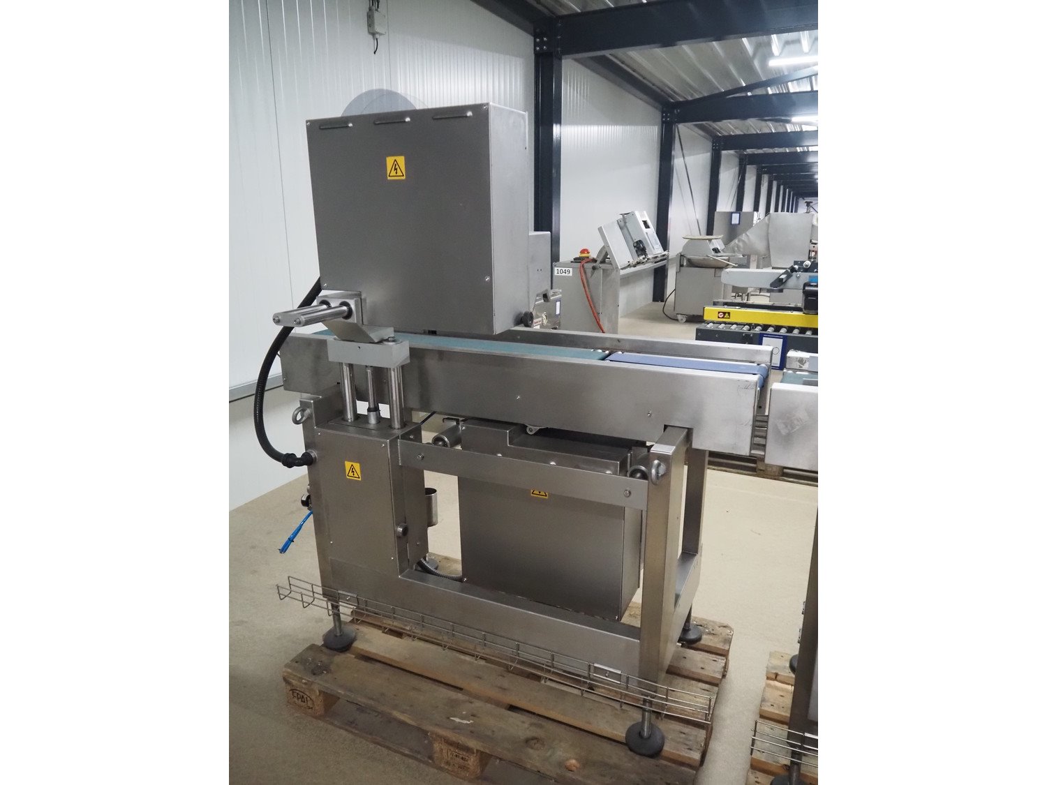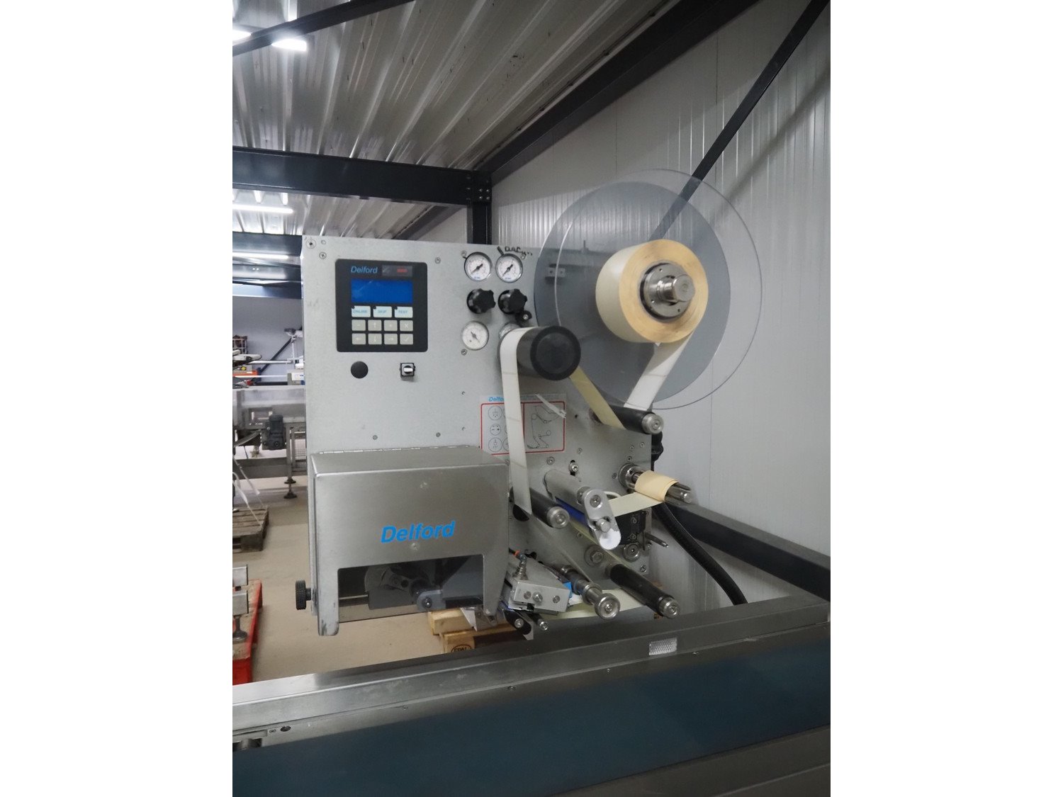 AEW Delford checkweigher with labelling machine, type checkweigher: 8060, fabrication number: 81133, year of construction: 2005, 230 V, 50 Hz, maximum weight: 1500-4000 gram, minimum weight: 20-40 gram, e =1-2 gram, T = -1000 gram, type labeller: 8000, plastic belt, belt width: (2x) 90 mm and 195 mm, dimensions checkweigher: 1500 mm x 700 mm x 1630 mm and dimensions labelling machine: 1200 mm x 700 mm x 1530 mm.