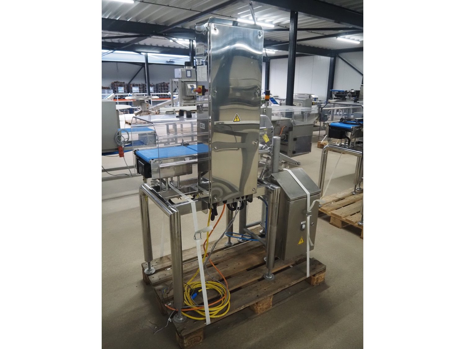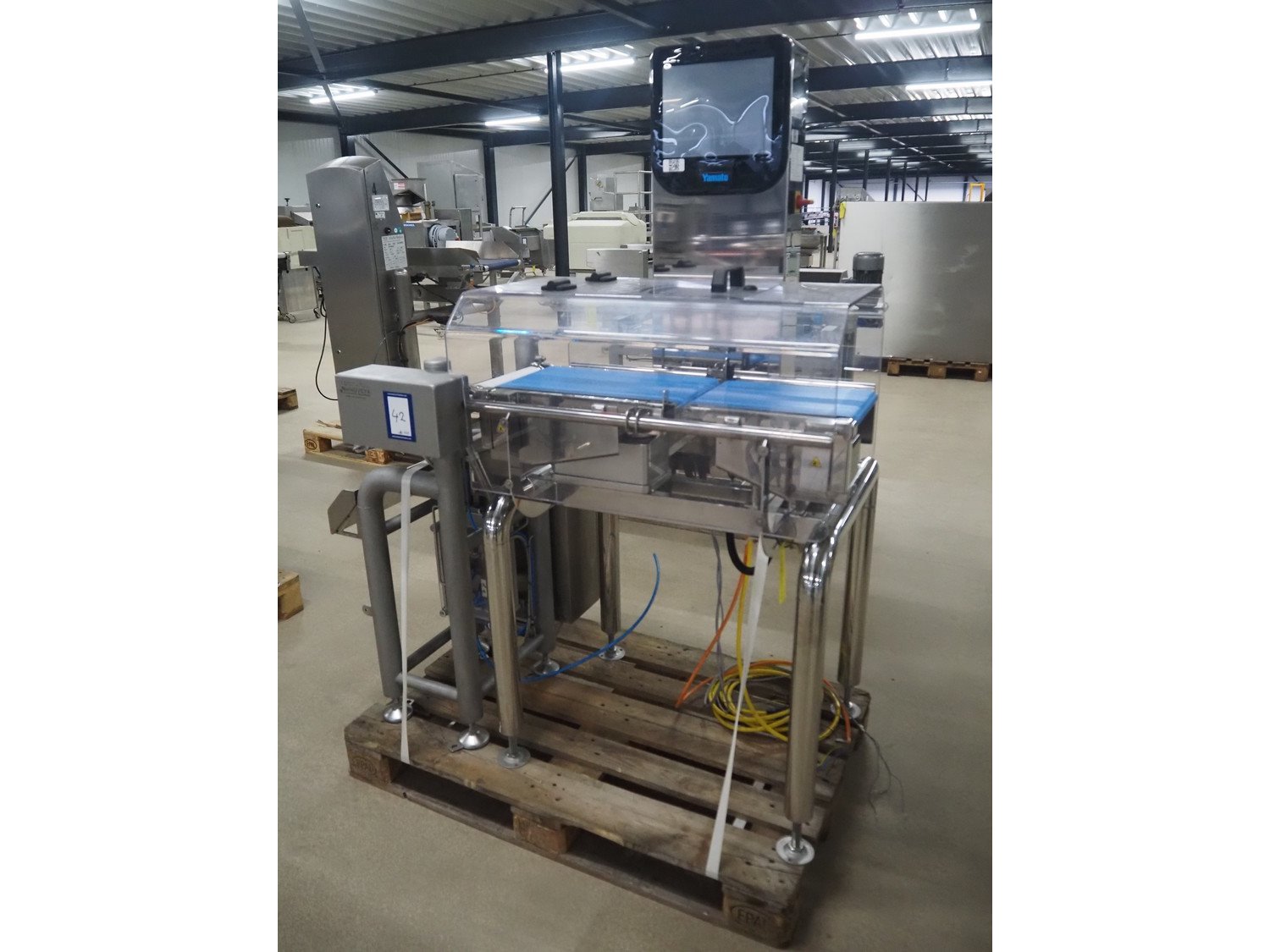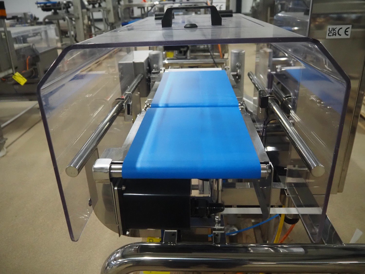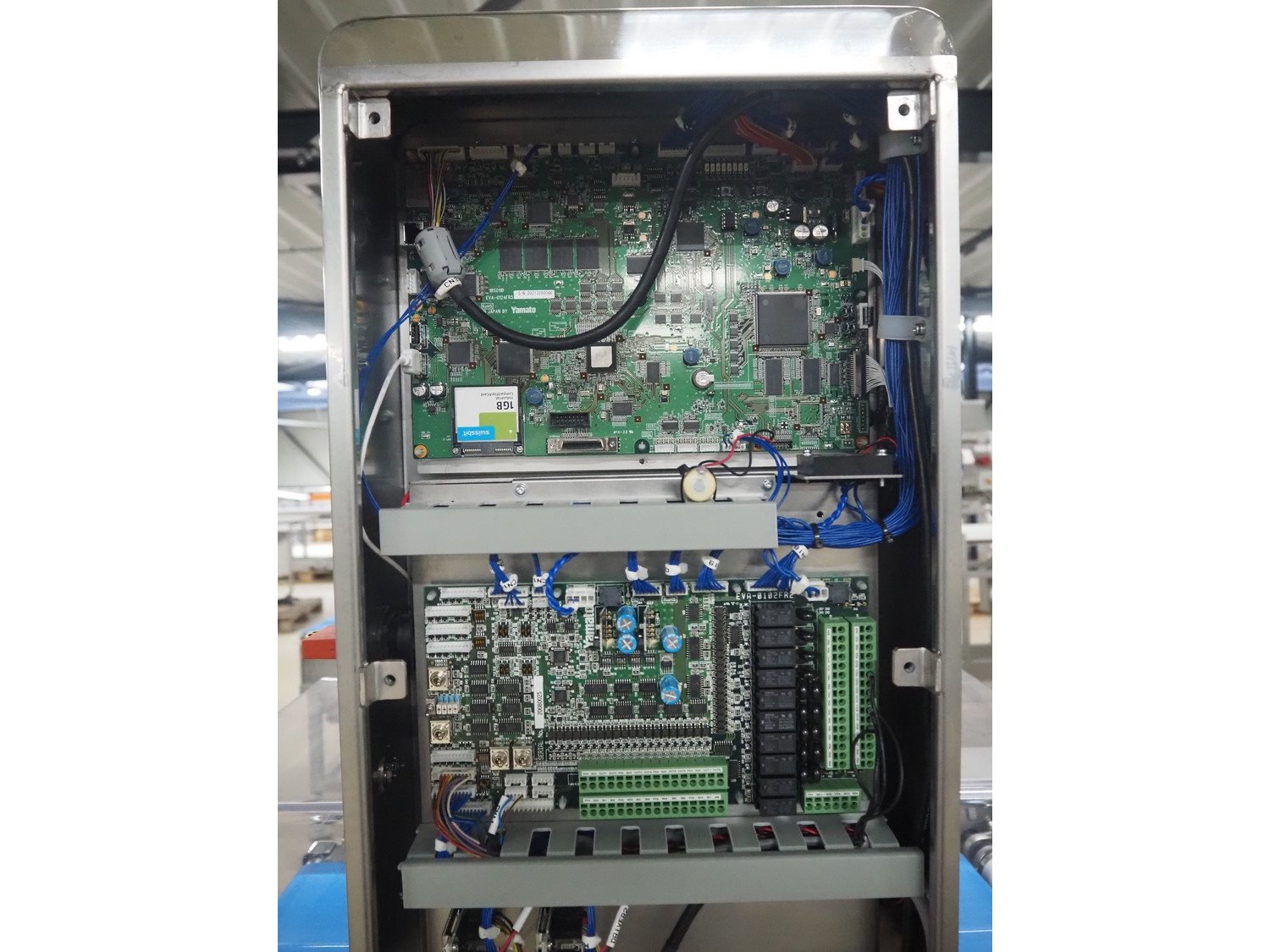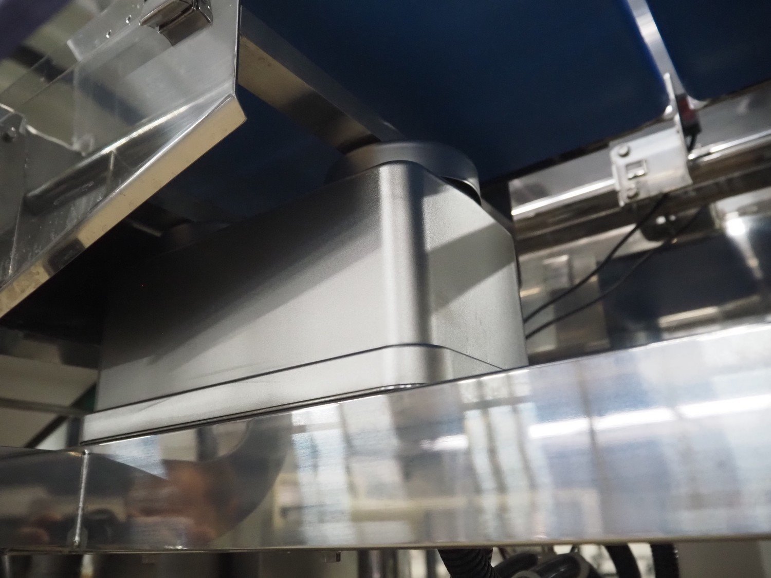 Yamato checkweigher with rejecting belt, model: CSI06244ICV33, serial number: TA210376, year of construction: 03/2022, 100/240 V, 1 Ph, 50/60 Hz, maximum weight: 600 g, minimum weight: 6 g, plastic belts, belt width: 240 mm, total dimensions: 1250 mm x 750 mm x 1630 mm.