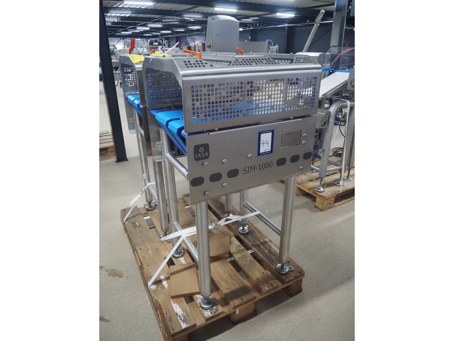 Jasa Packaging Solutions in/outfeed module, model: SIM-1000 DRAAI UNIT, machine number: 14422, year of construction: 2019, 400 V, 3 Ph, 16 A, 0.47 kW, 6 bar, plastic belts, belt width: (1x) 100 mm, (1x) 150 mm, total dimensions: 600 mm x 550 mm x 1550 mm.