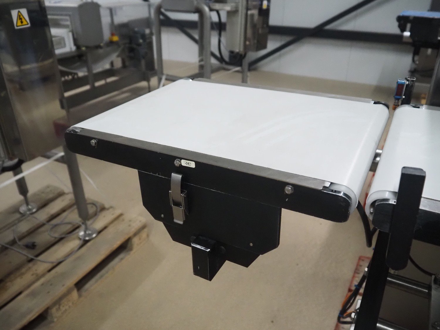 Mettler Toledo Garvens GmbH checkweigher, type: XE 3 DMS, number: 35005496, year of construction: 2014, 100-240 V, 50/60 Hz, weighing range: 20-3000 gram, e=d= 2 gram, t= - 2700 gram, plastic belt, belt width: 300 mm, total dimensions: 1330 mm x 710 mm x 1430 mm.