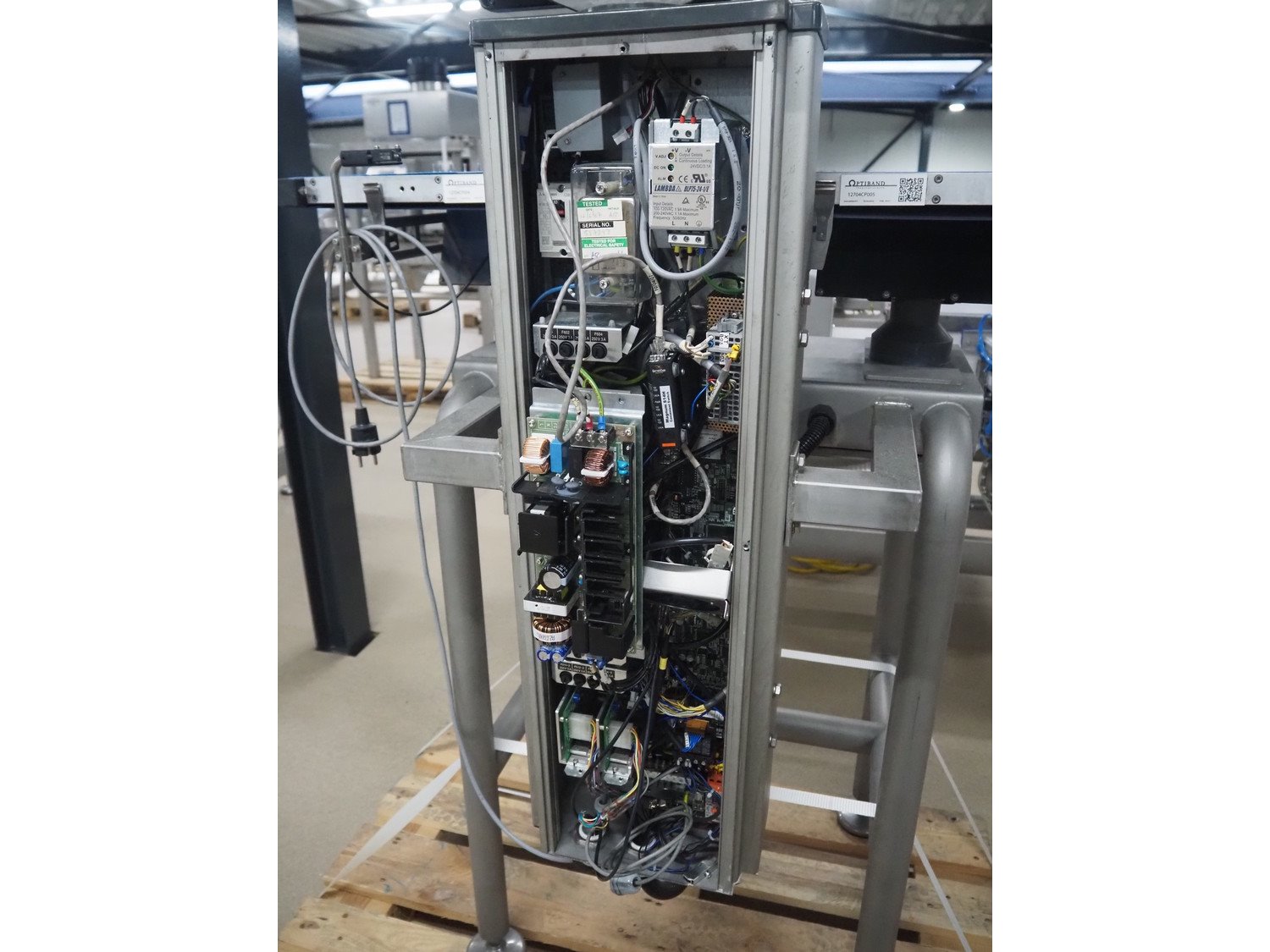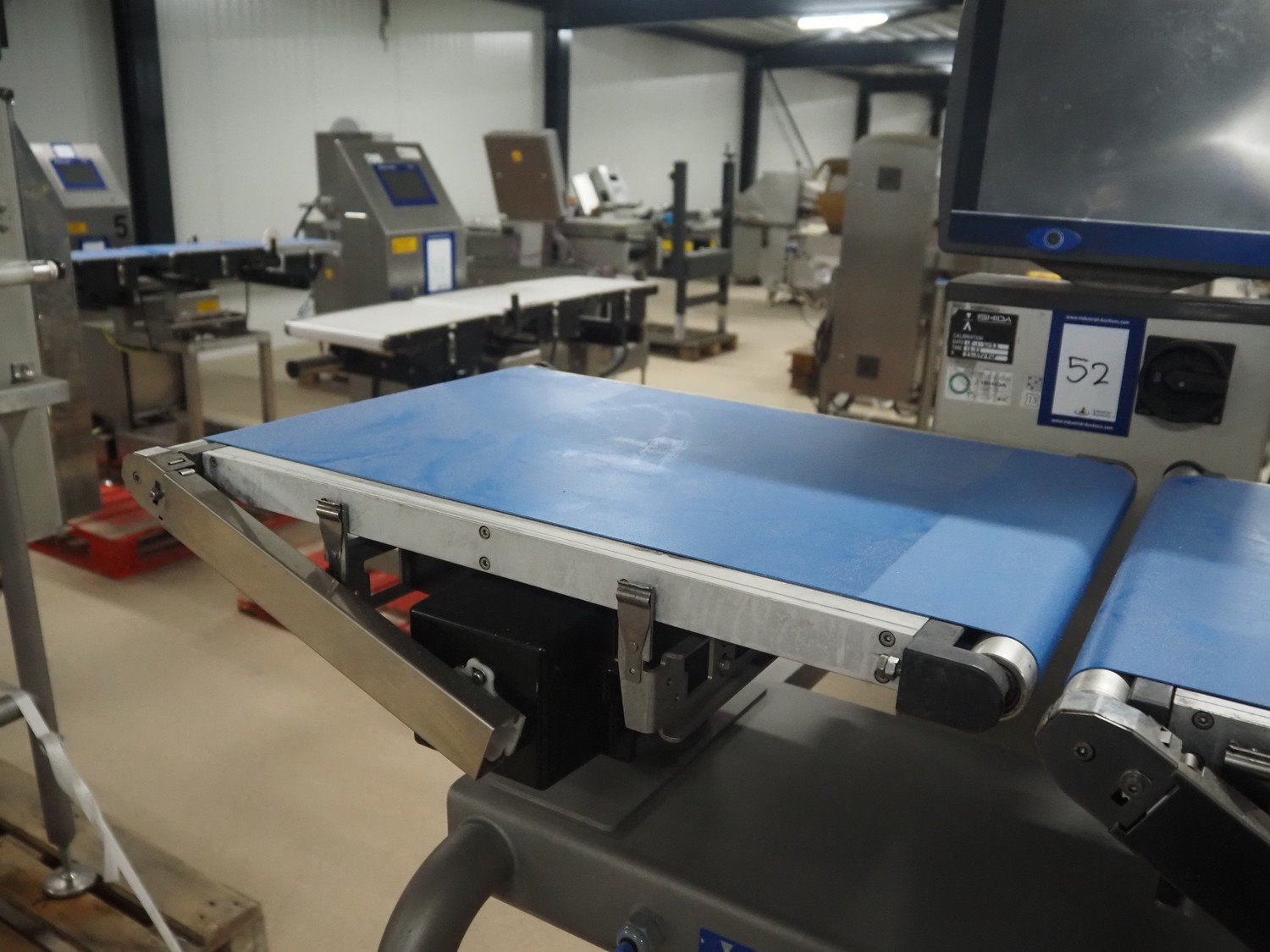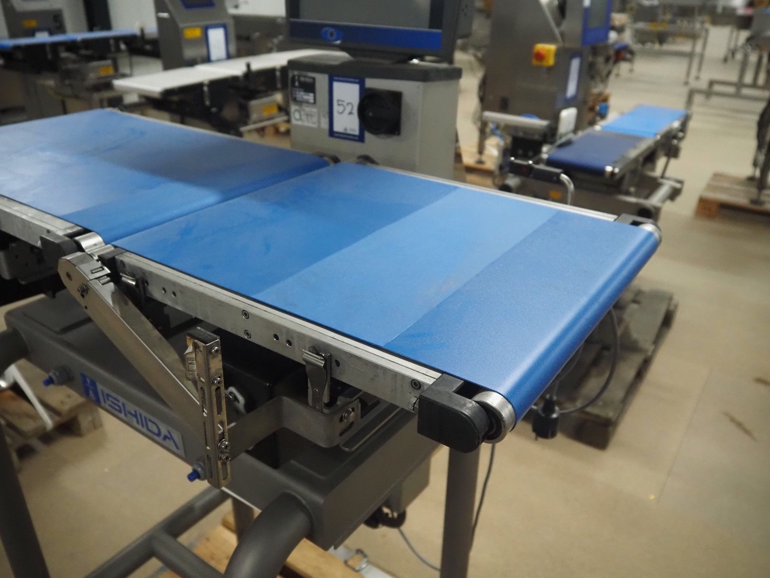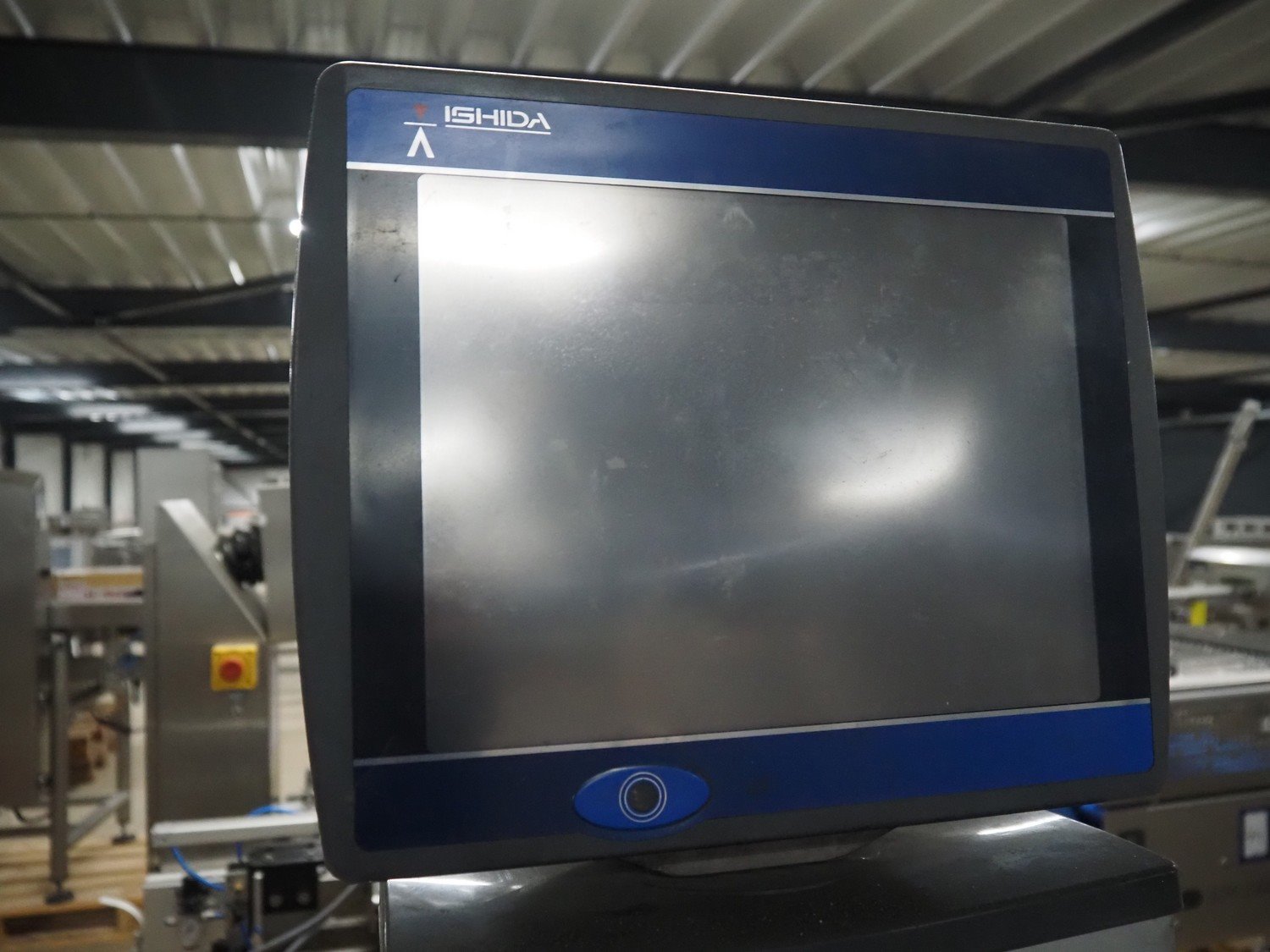 Ishida checkweigher, model: DACS-W-050-SB/SS-I-N(CTS), serial number: 557293, year of construction: 06/2007, 220 V, 1 Ph, 50 Hz, 3 A, plastic belt, belt width: 370 mm, total dimensions: 1070 mm x 850 mm x 1600 mm.