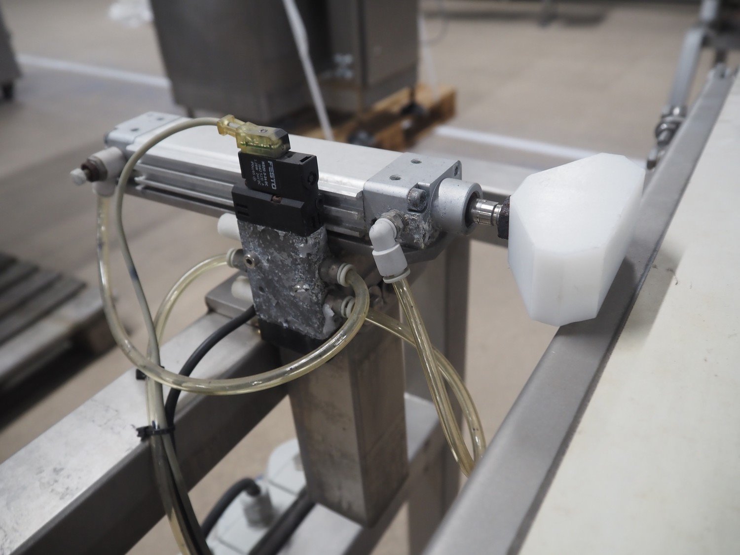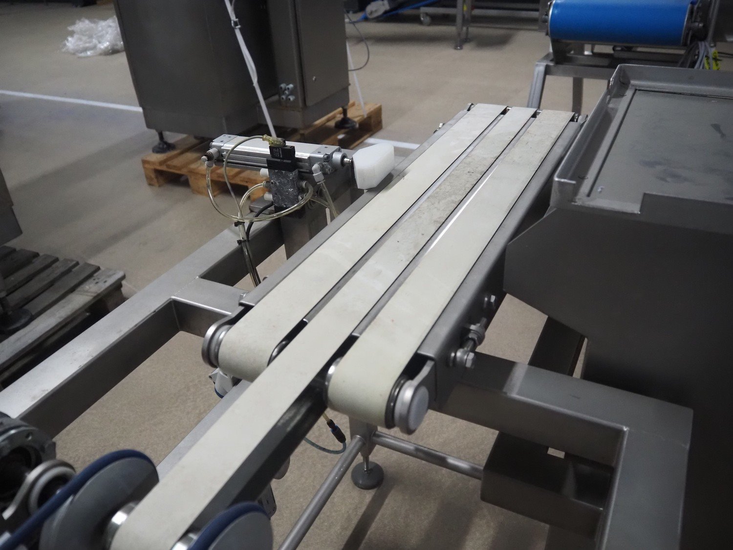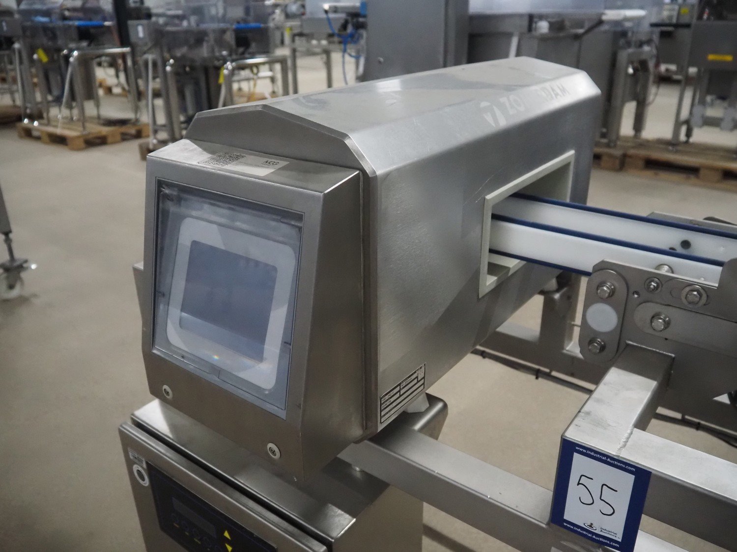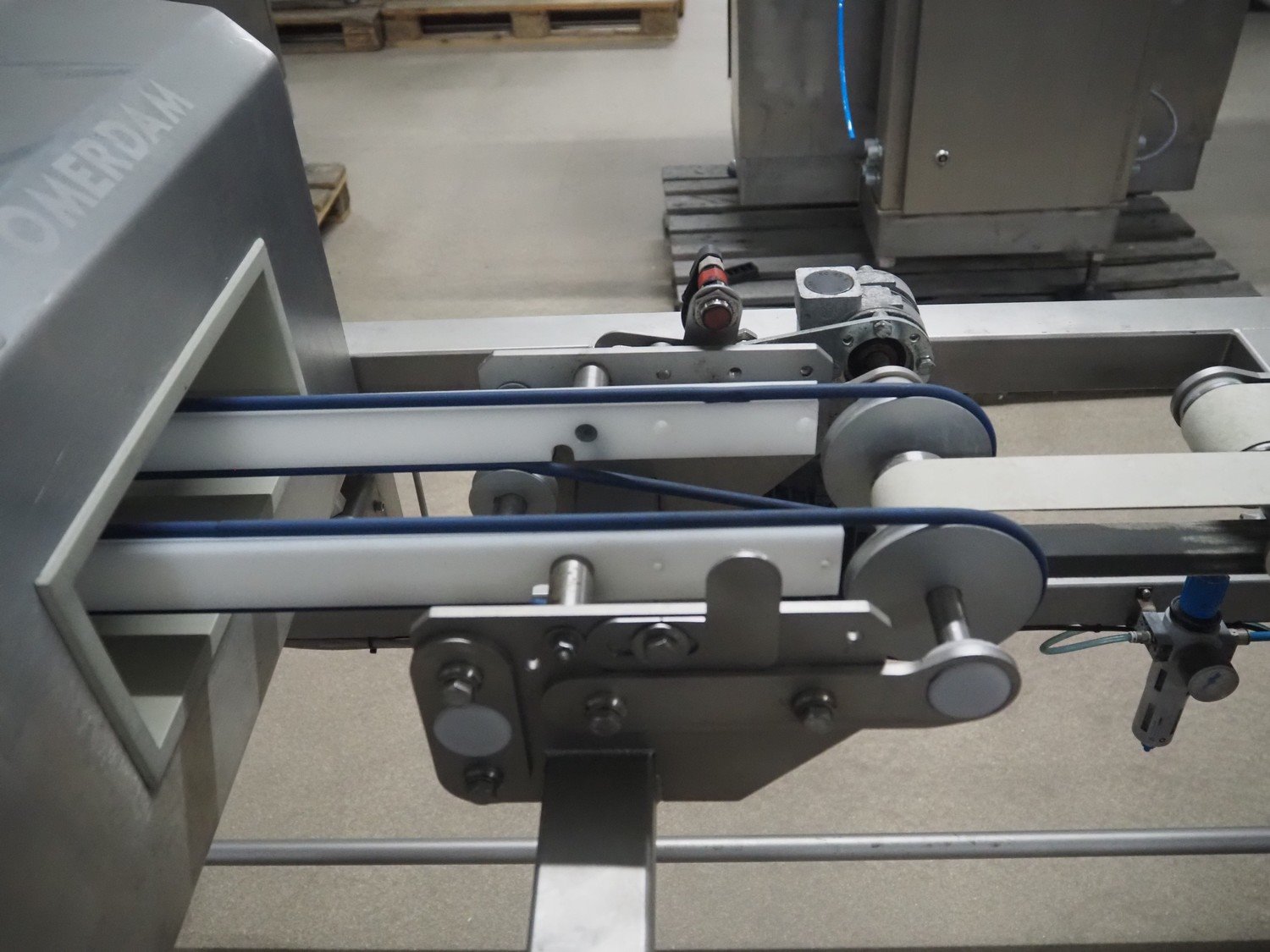 Zomerdam metal detector with rejector, type: MN 5.1 CI 250/100, serial number: 910816-CI, year of construction: 2009, 100/240 V, 50/60 Hz, 50/300 mA, string belt and plastic belt, belt width: 265 mm, clearance: 500 mm x 107 mm, total dimensions: 850 mm x 1850 mm x 1100 mm.